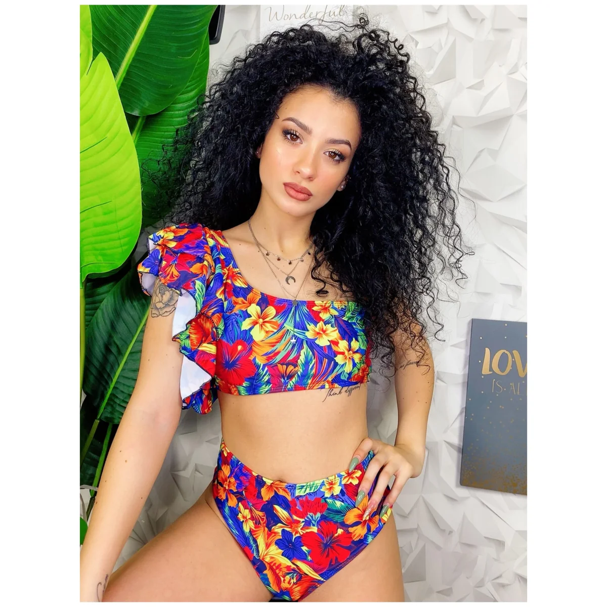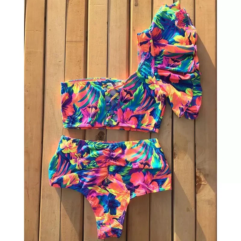 Bikini monospalla con rouge vita alta floreale. Alta qualità vestibilità regolare, l’estate Formentera 2020 dove non passerai inosservata.