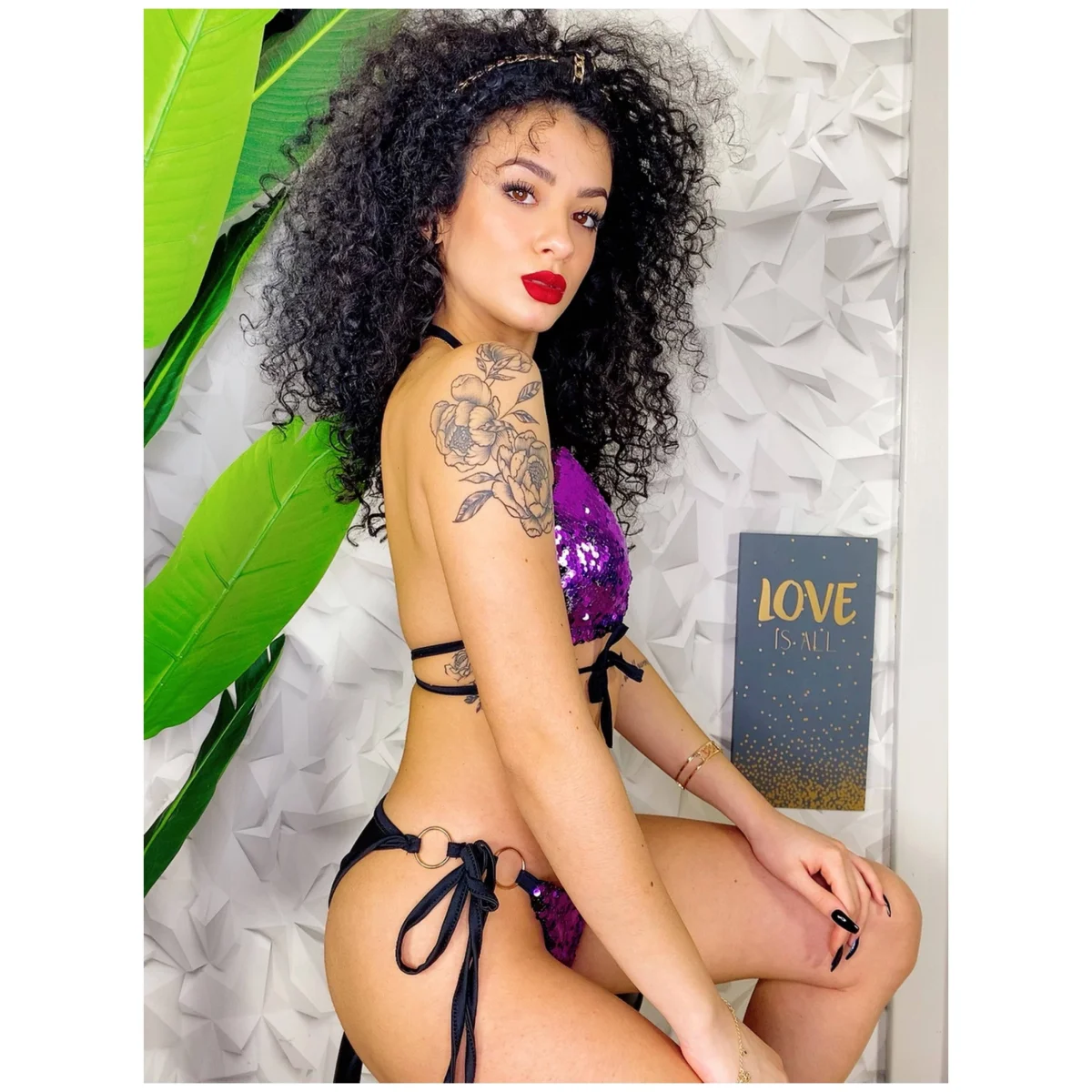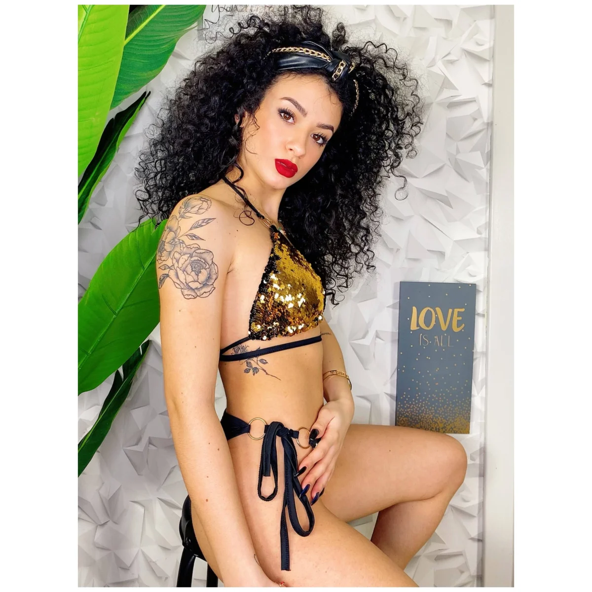 Bikini due pezzi sgambato, la sua bellezza sta nelle paillettes e nei lacci al seno che sono regolabili e sui fianchi