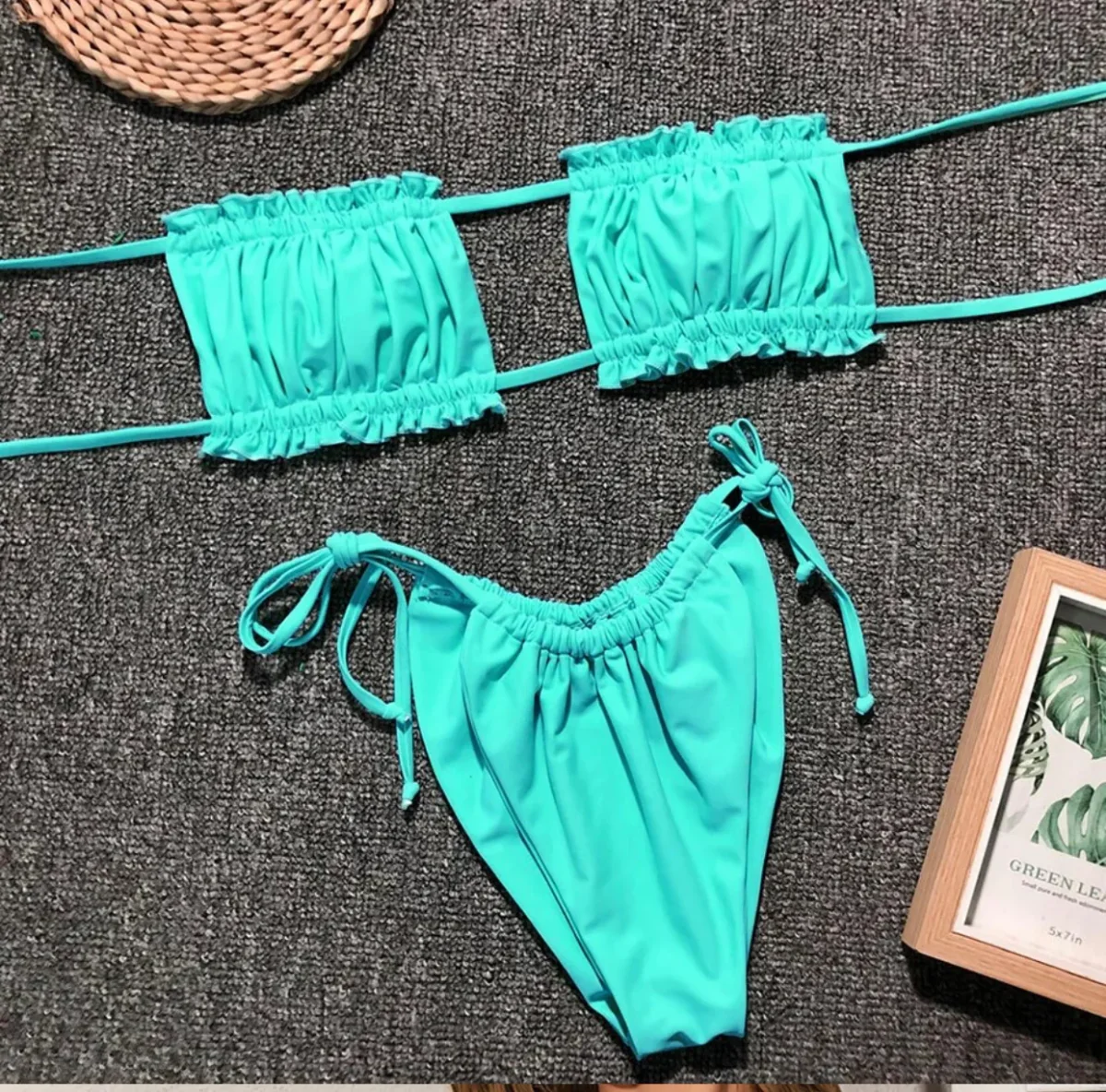 Bikini verdeacqua con coppe Che si possono regolare a vostro piacimento estraibili e mutanda a brasiliana.