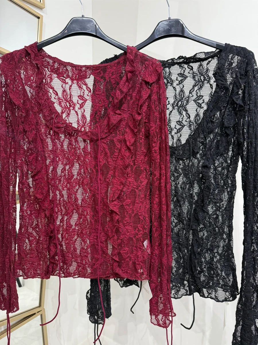 Questa blusa in pizzo è caratterizzato da un elegante scollo e lacci sulla manica. Realizzato con un tessuto di alta qualità, offre il massimo comfort e un look raffinato. Perfetto per chi ama unire praticità e stile.