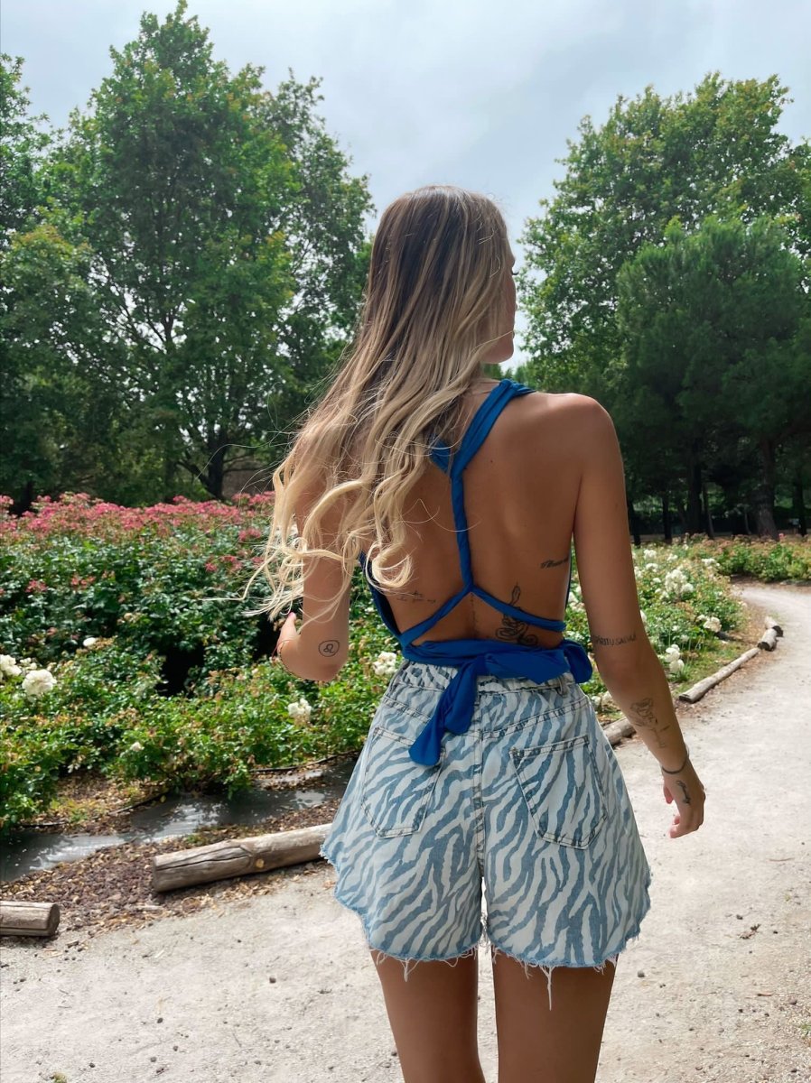 Body o costume elasticizzato con incroci tessuto elasticizzato, senza coppe.