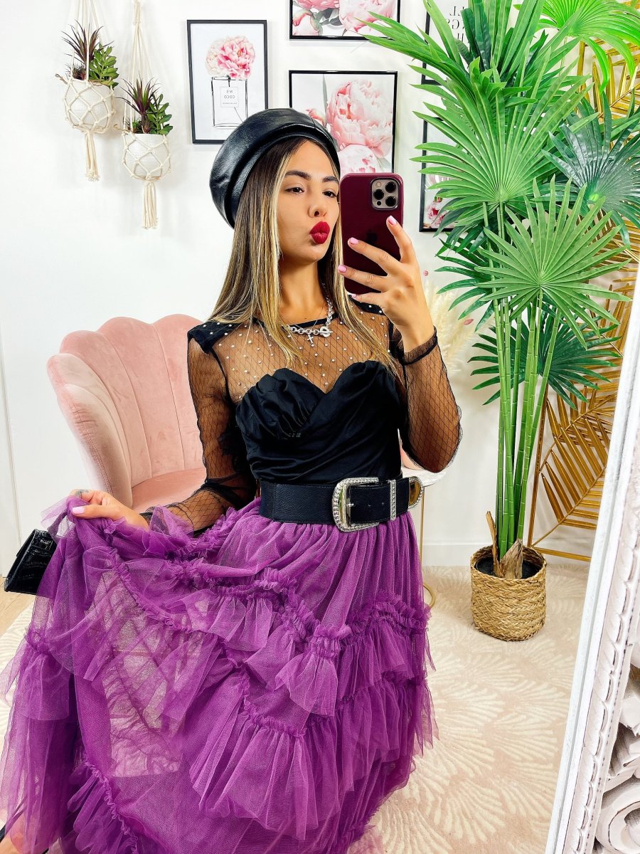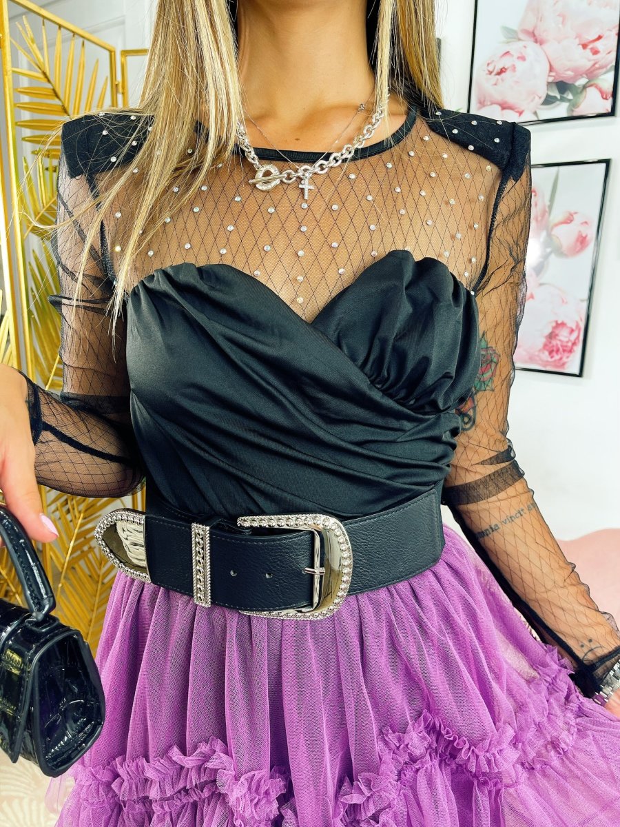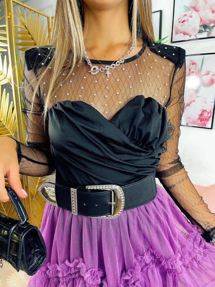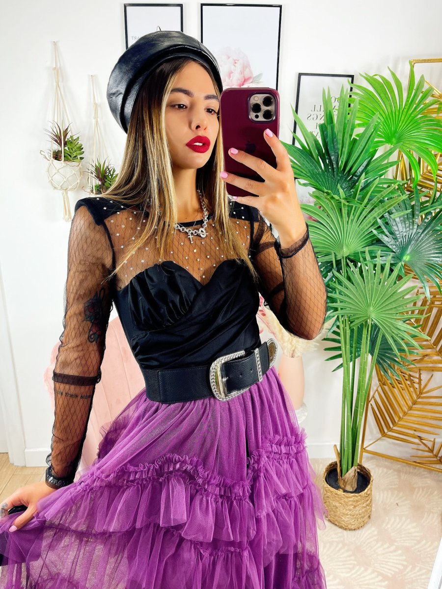 Body con retina e brillantini molto delicato in tessuto elasticizzato senza coppe.