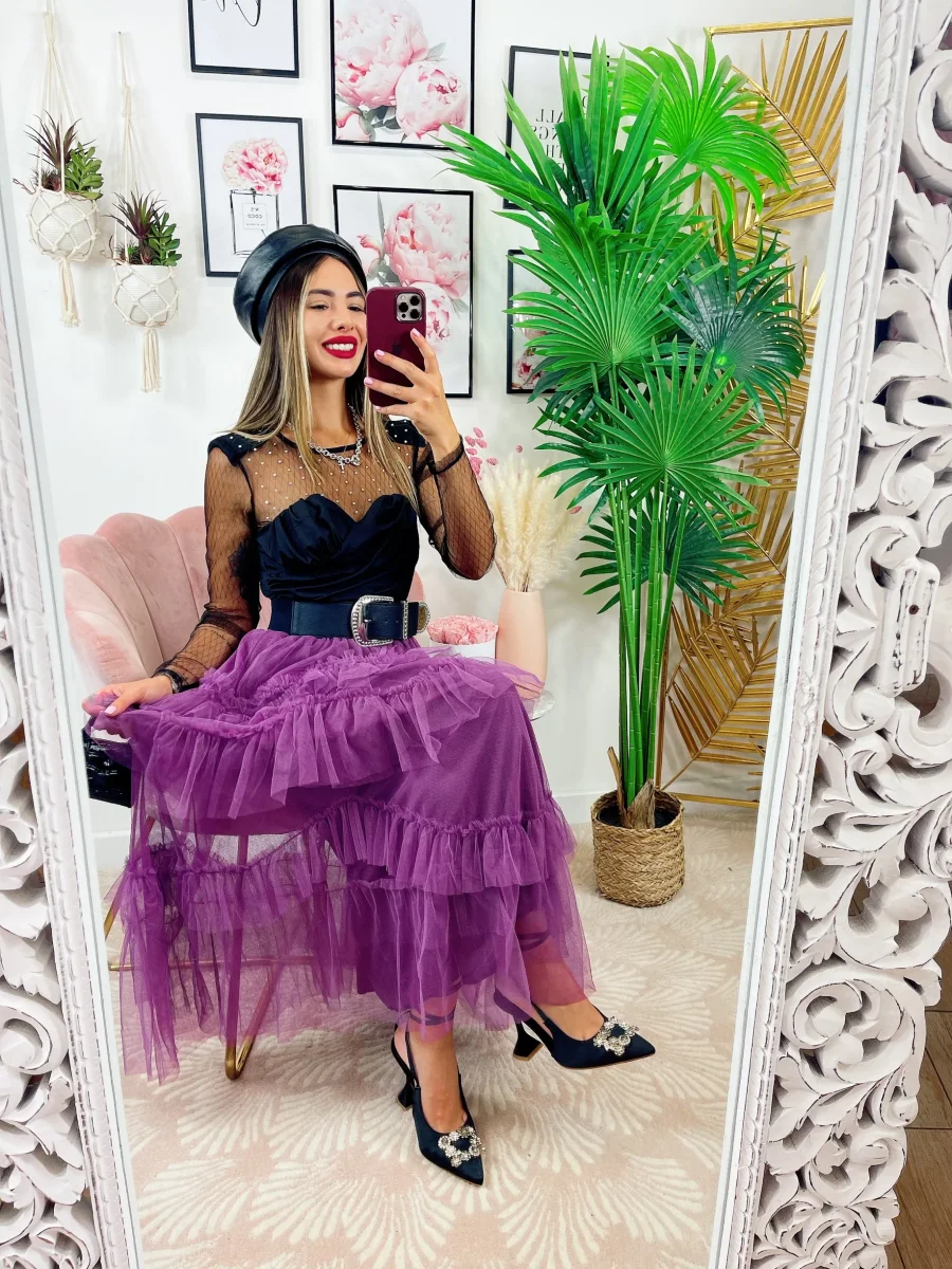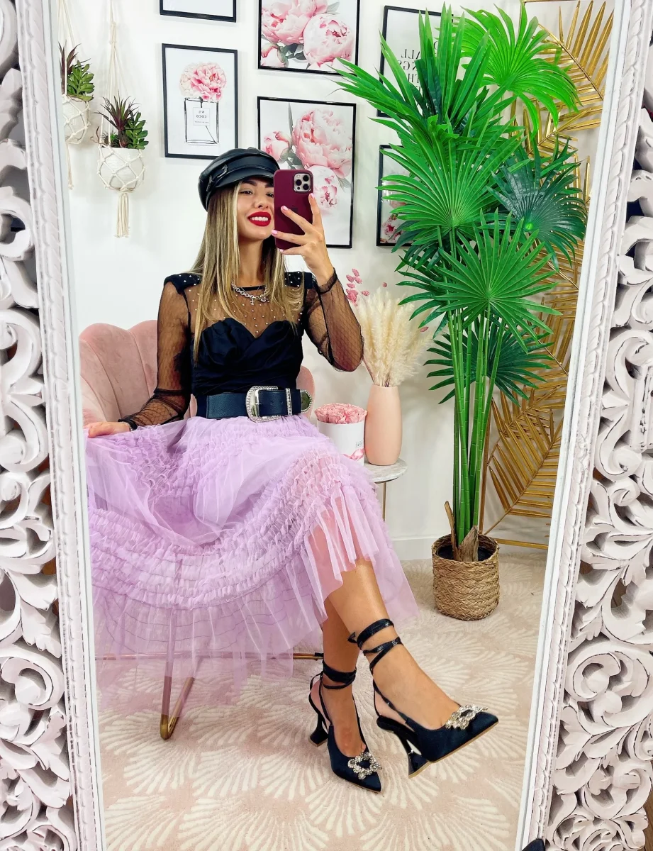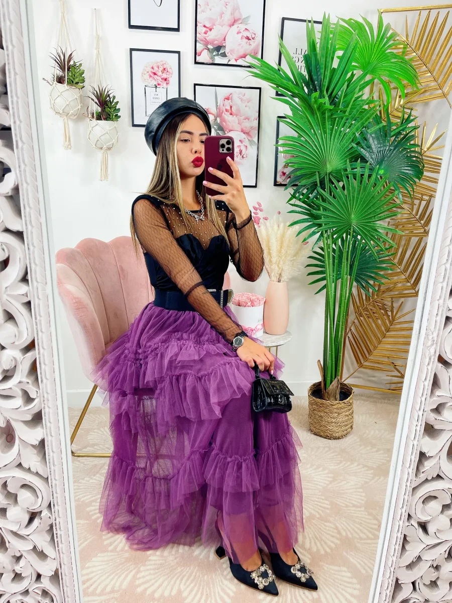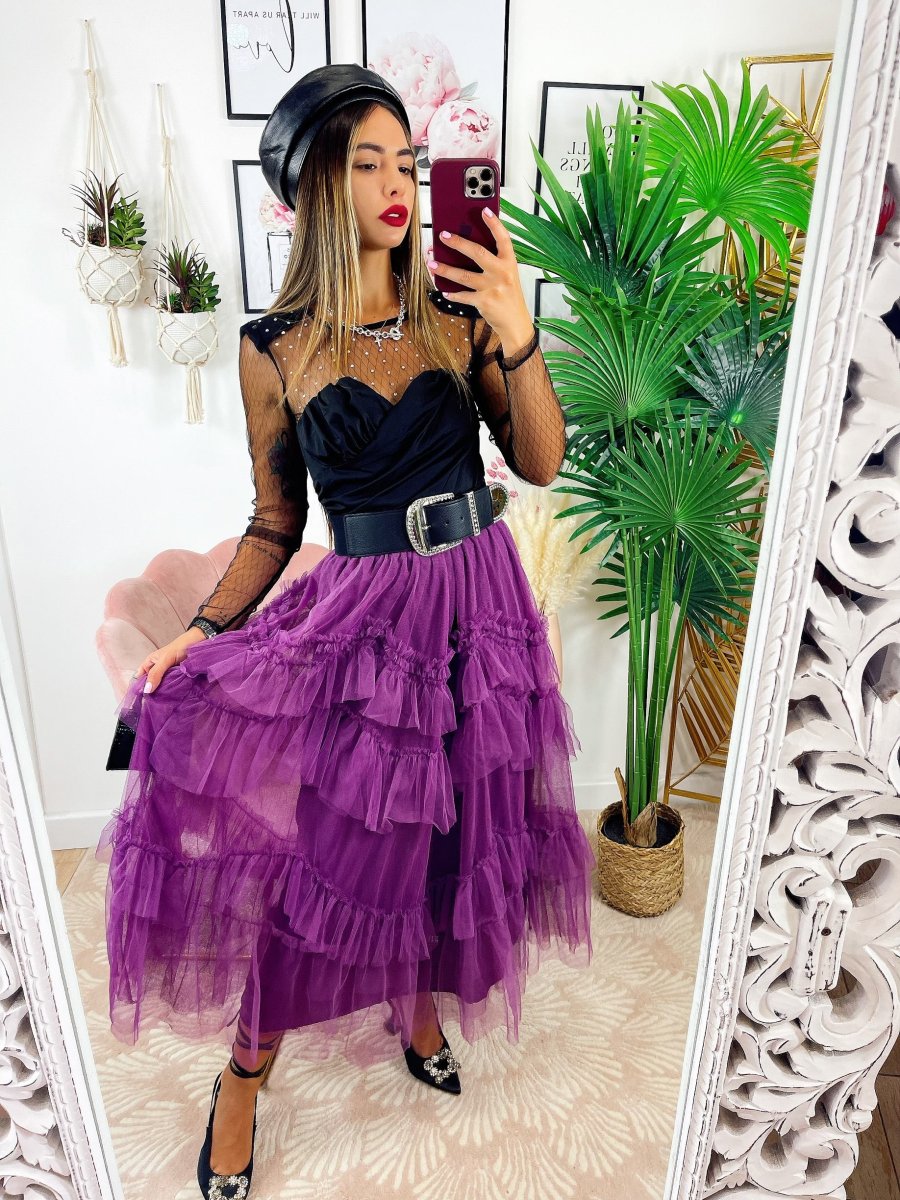Body con retina e brillantini molto delicato in tessuto elasticizzato senza coppe.