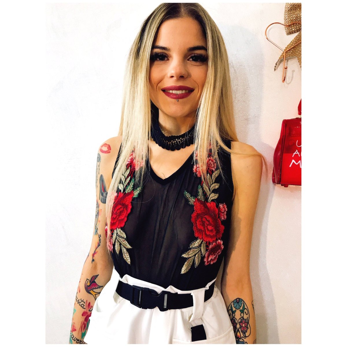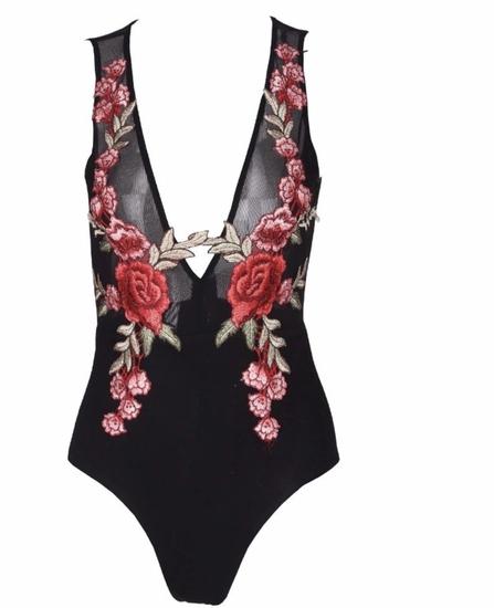 Body con rose ricamante color rosso, elasticizzato e di certo non passerei inosservata. La sua fantasia risalta all’occhio come le trasparenze fuori dal ricamo.