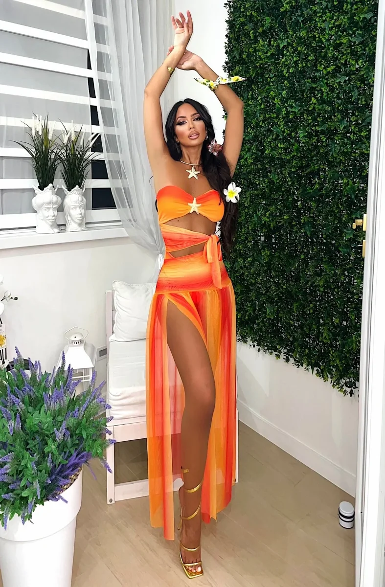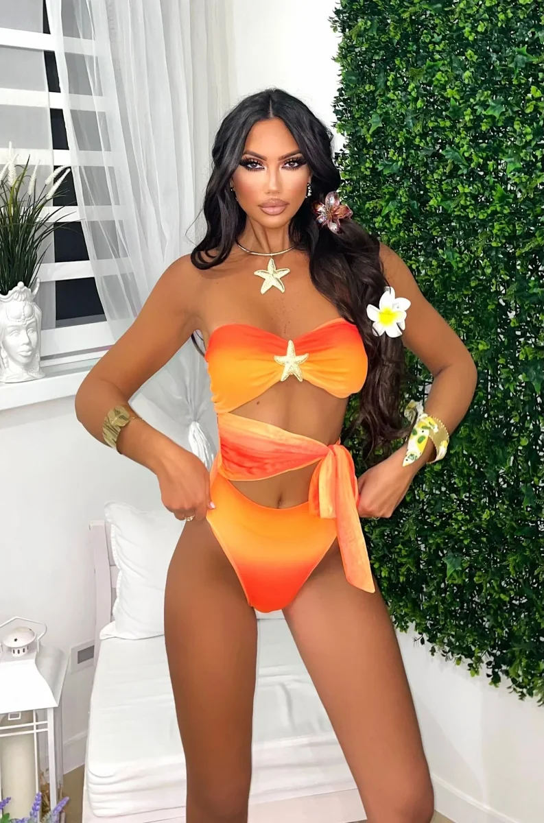 Body due pezzi con pareo e mutanda leggermente sgambata.