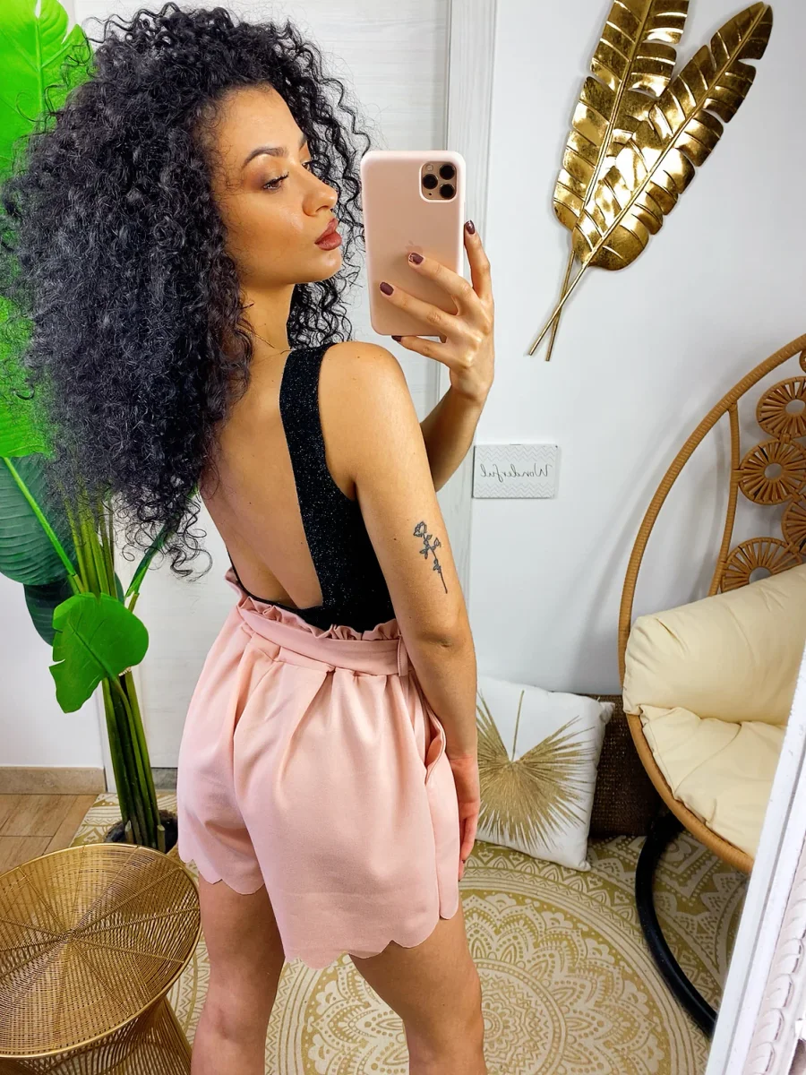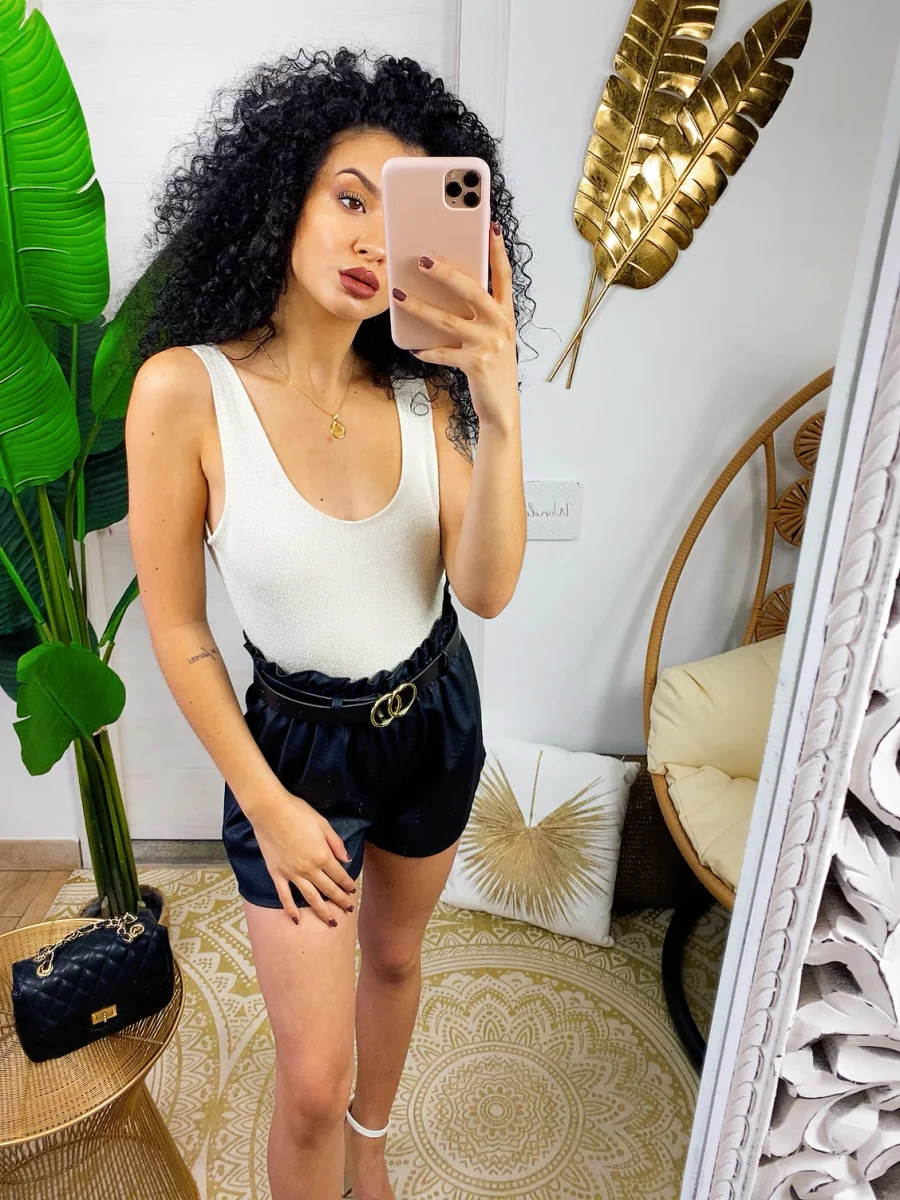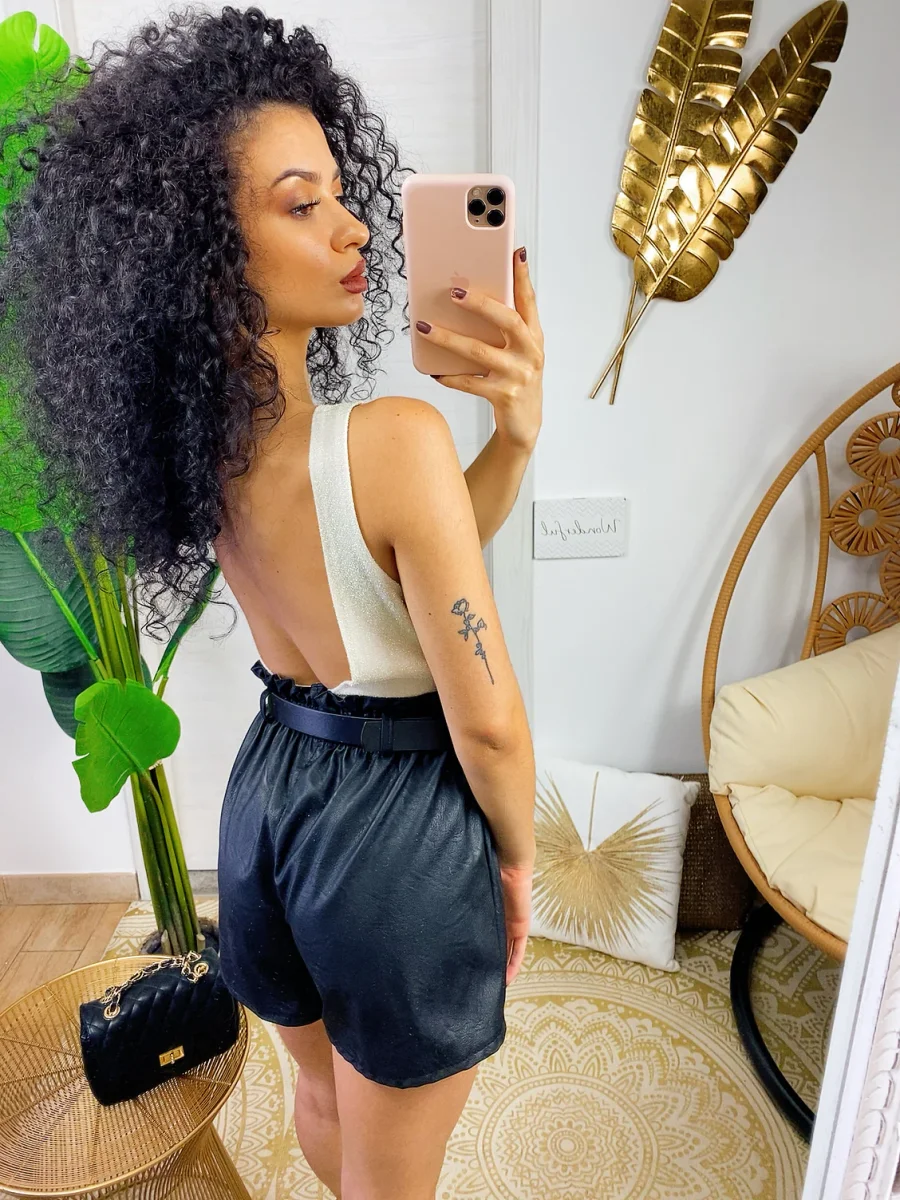 Body glitter con schiena aperta super sexy. Chiusura senza bottoncini.
