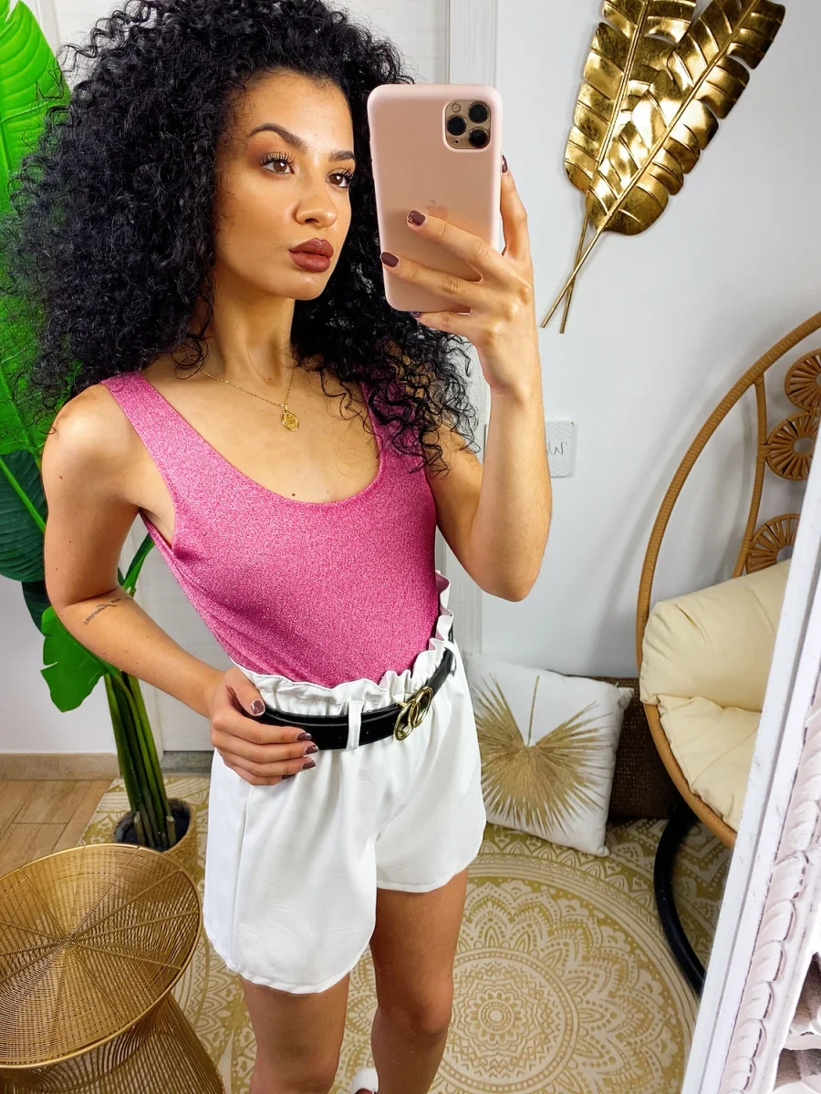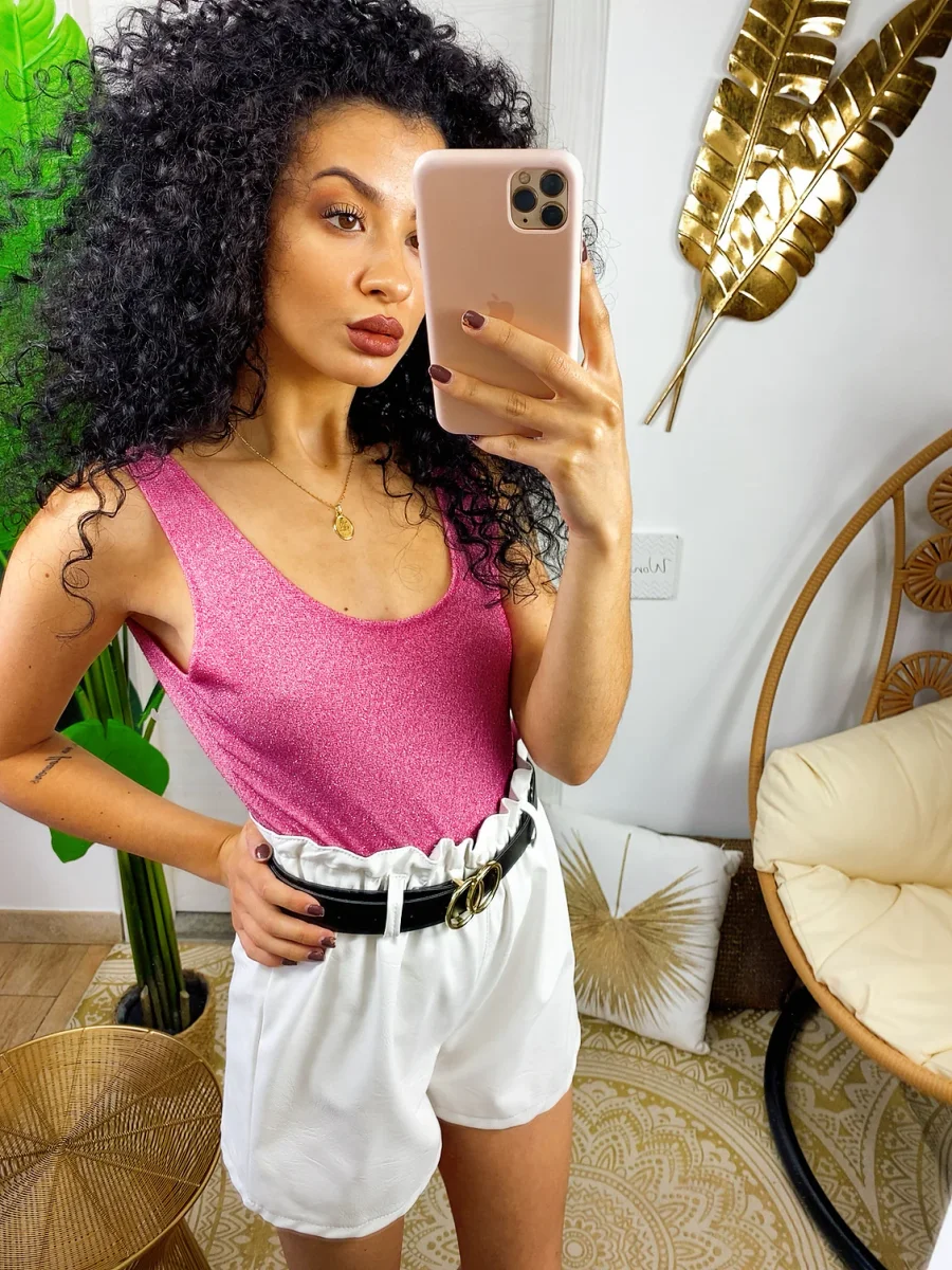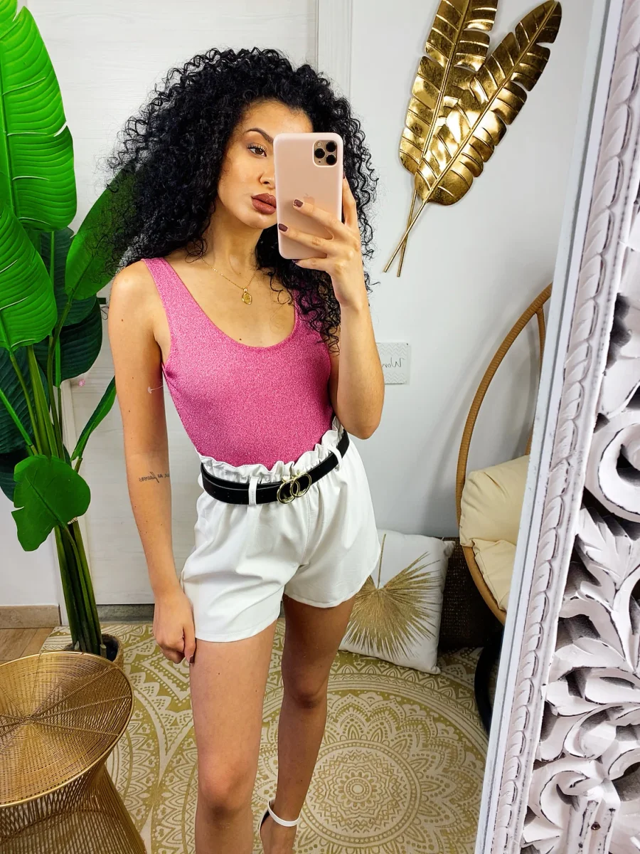 Body glitter con schiena aperta super sexy. Chiusura senza bottoncini.