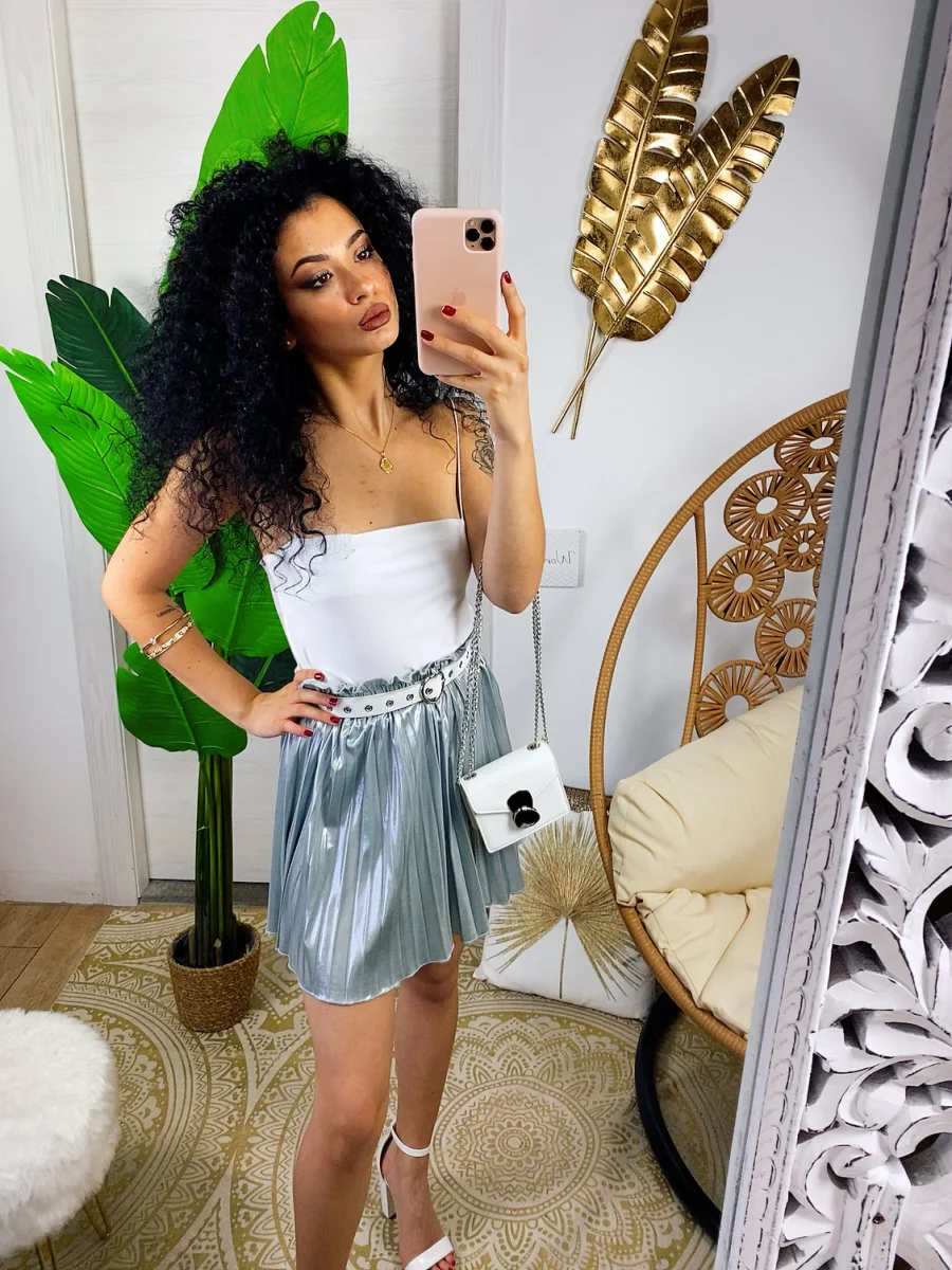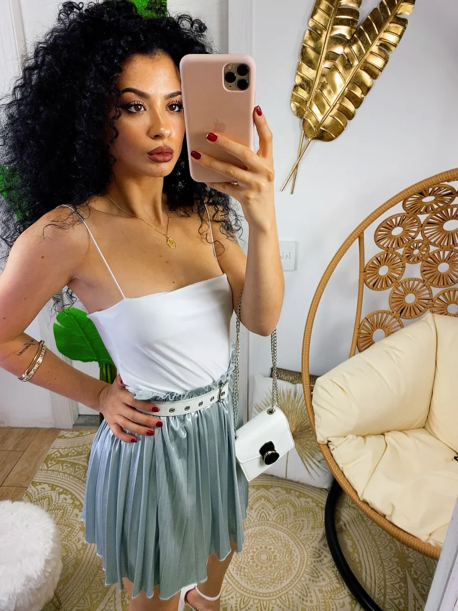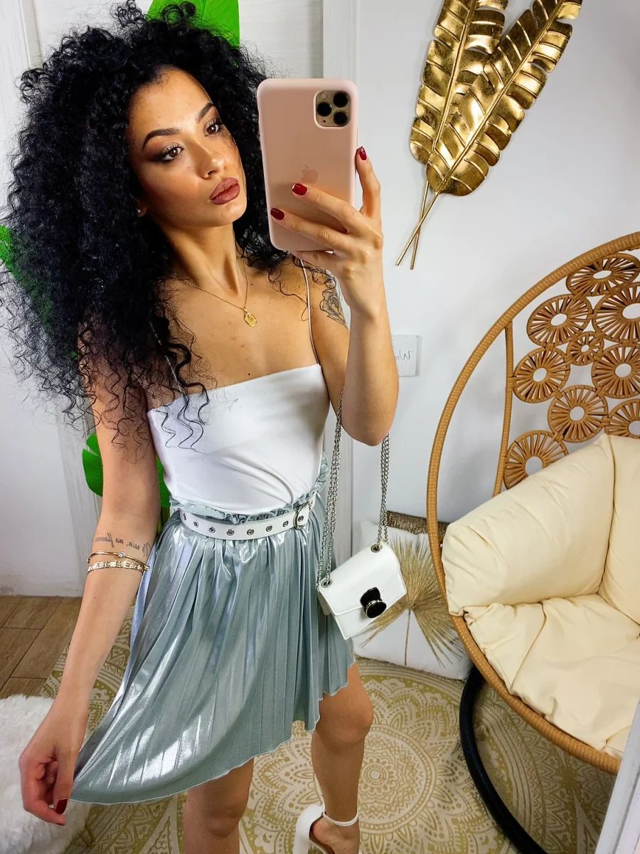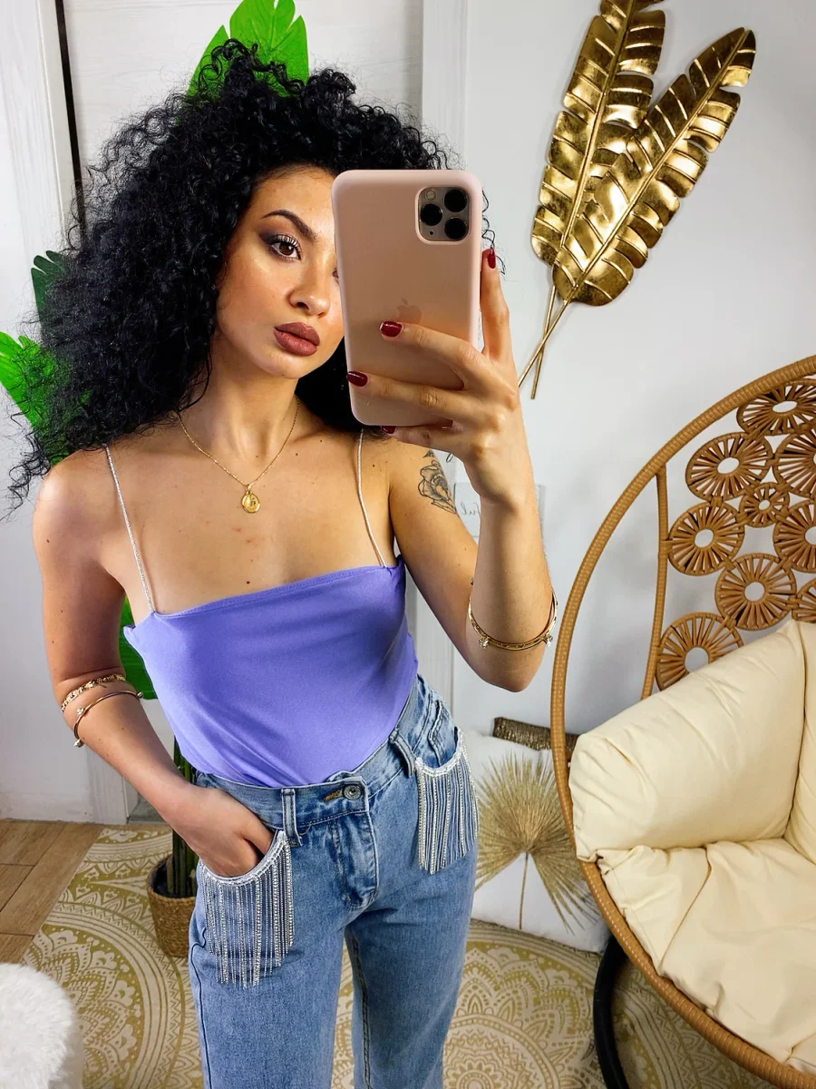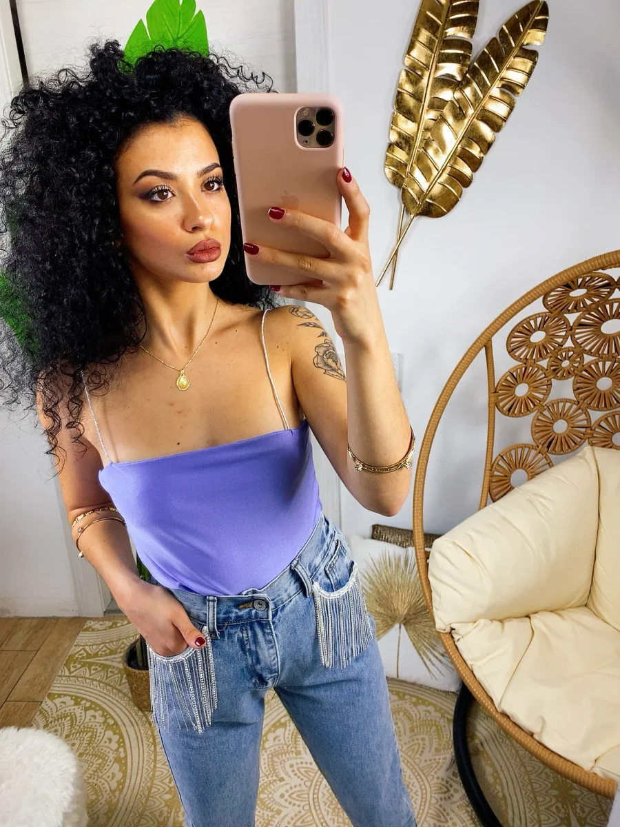 Body in raso trand del momento con bretelline sottili. Perfetto con un jeans o con una gonna