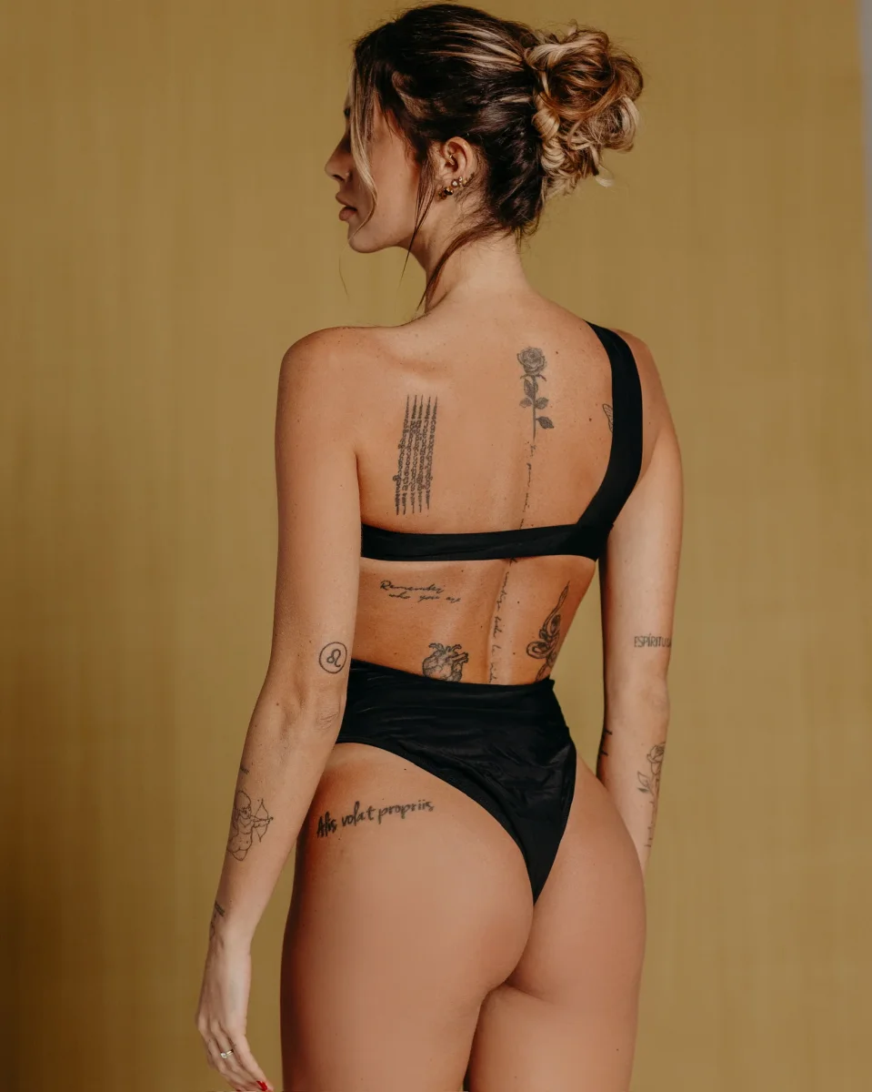 Body nero con coppe e dettagli chiusure argento. Slip vita alta