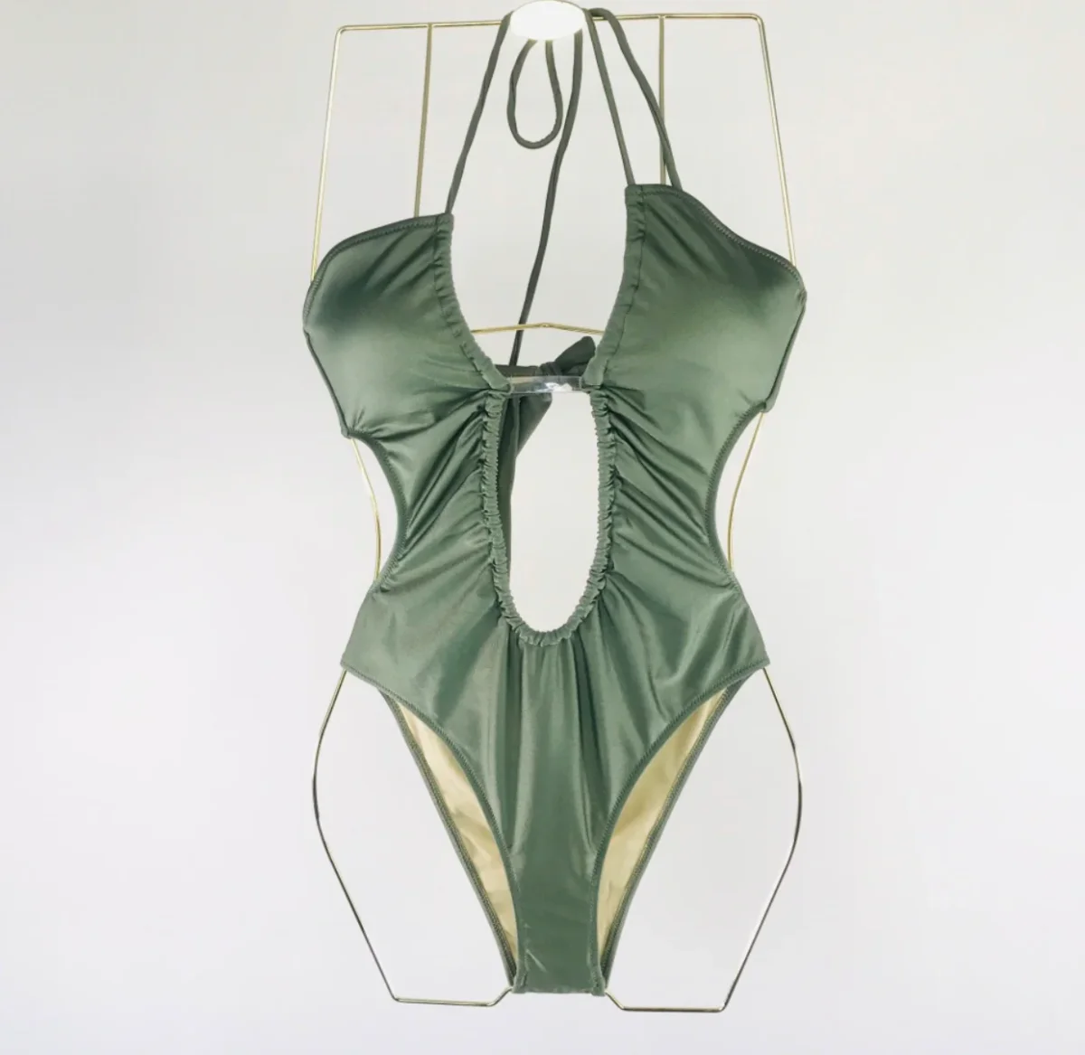 Body o costume da bagno vverde militare con particolare incrocio.