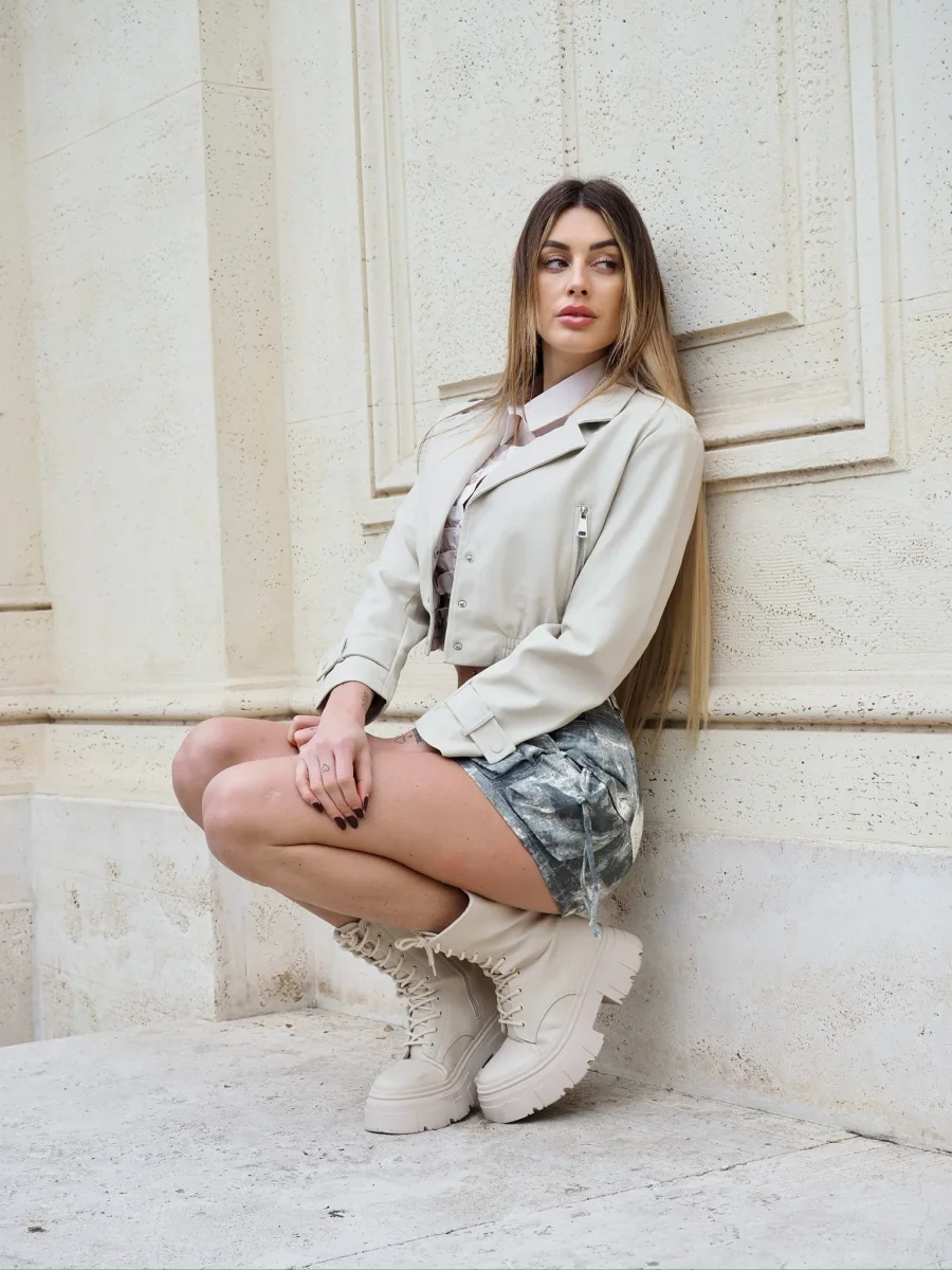 Bomberino crop con colletto e chiusura con zip, elastico sulla vita