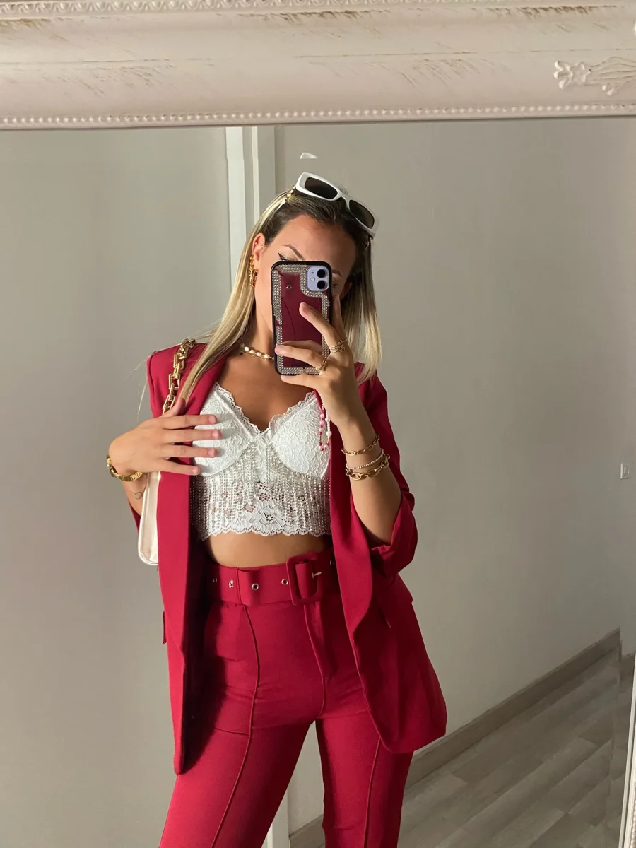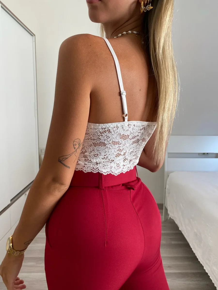 Bralette in pizzo con coppe rafforzare e ciondoli in strass