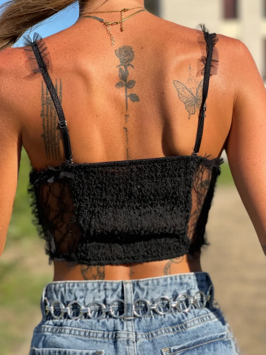 Bralette di altissima qualità con dettaglio in pizzo, coppe e bottoni gioiello
