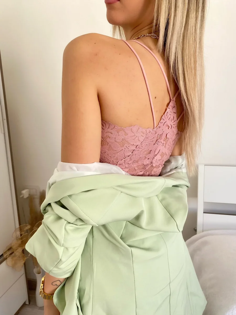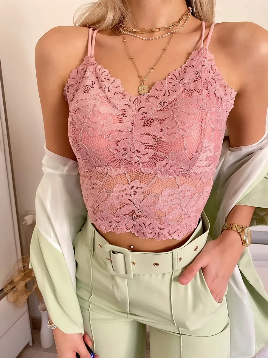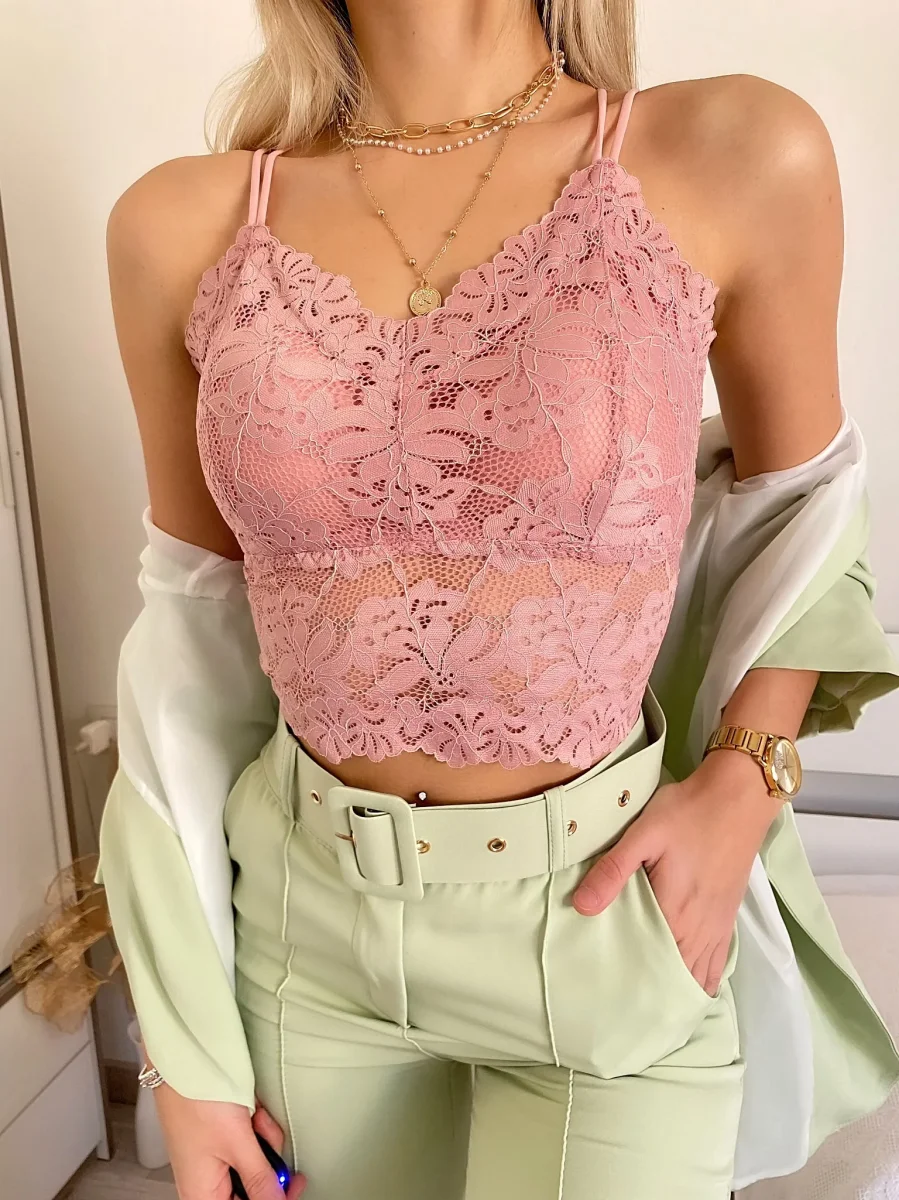 Bralette in pizzo con coppe e pizzo con schiena regolabile da lacci. Taglia unica