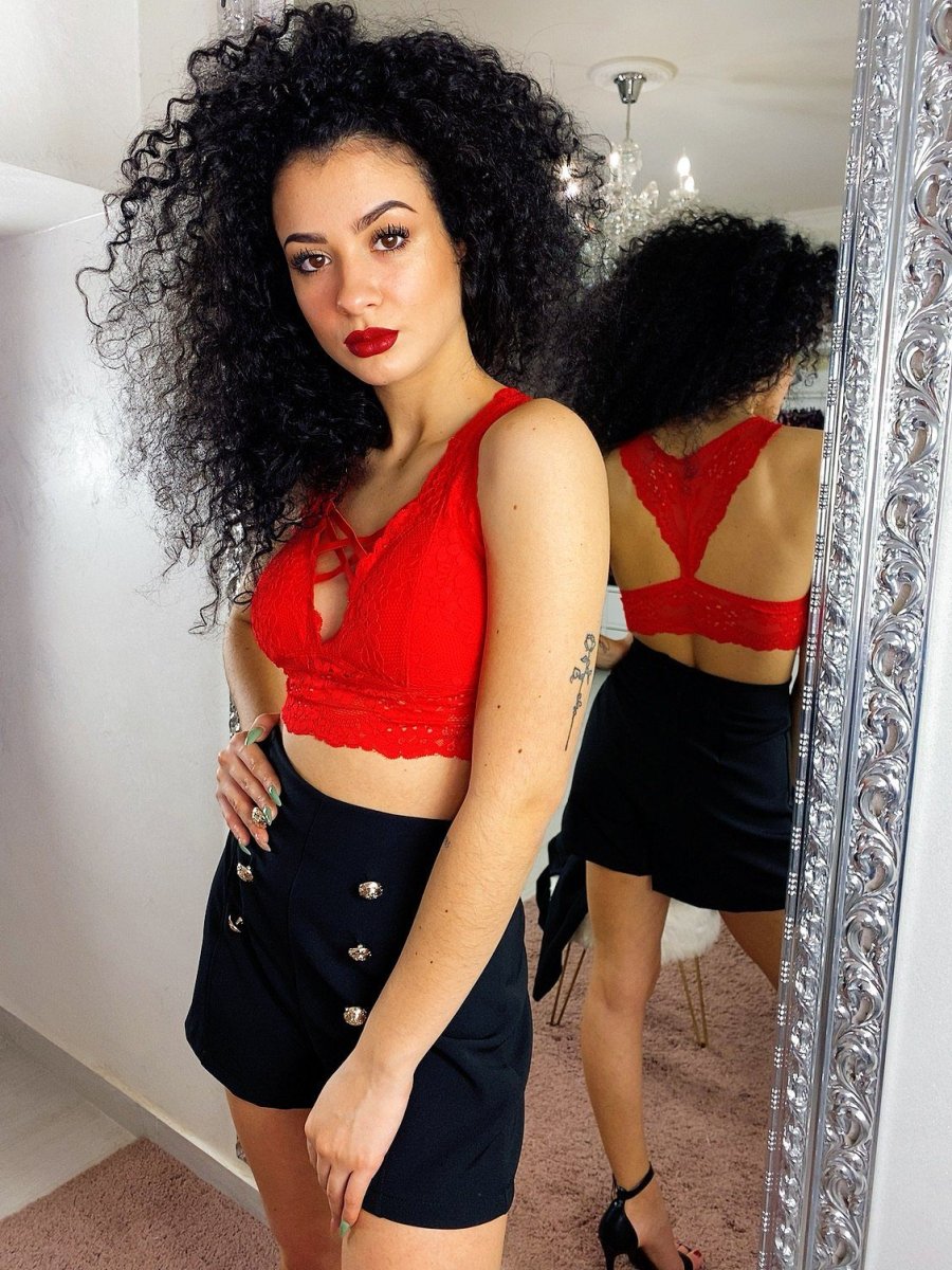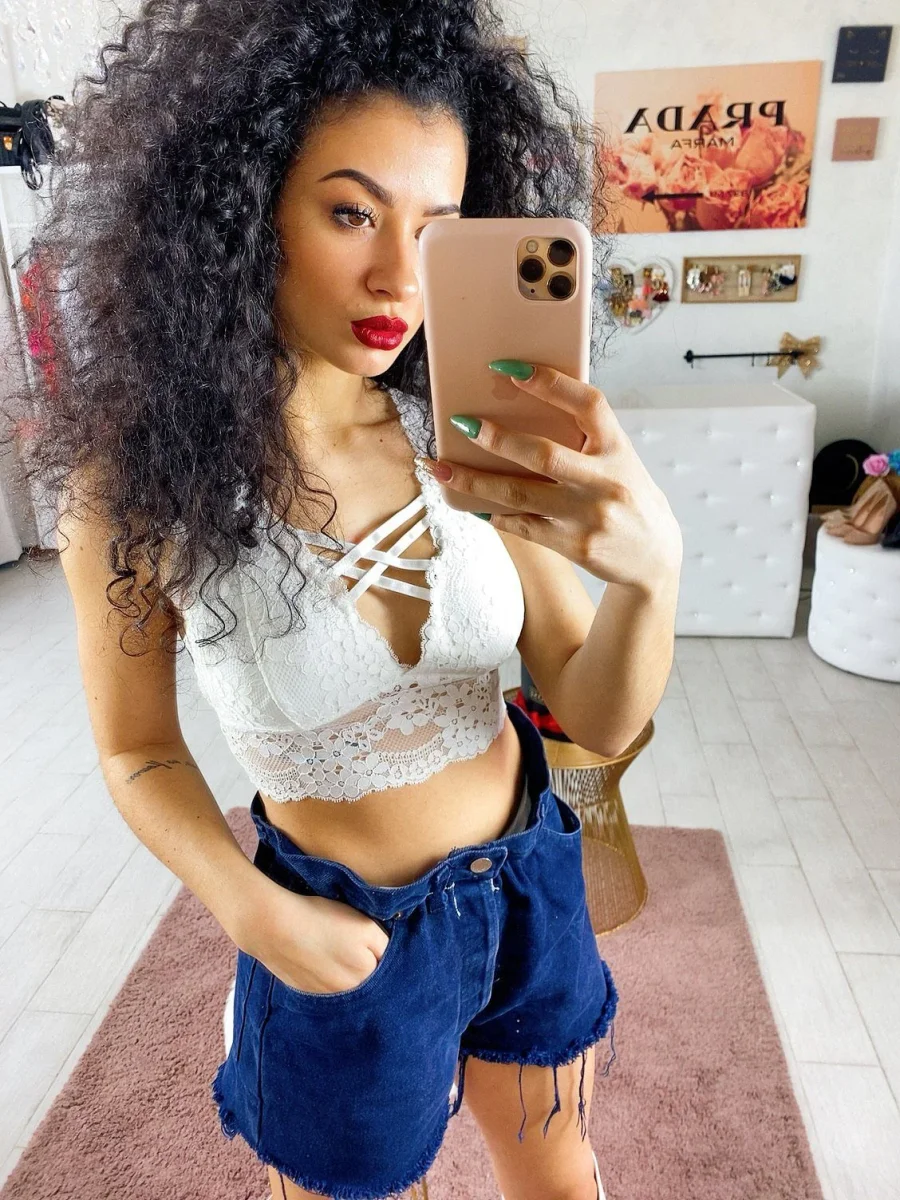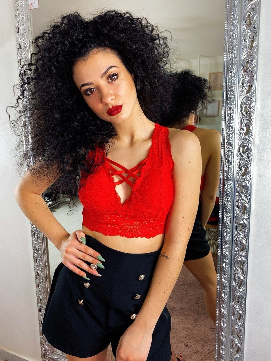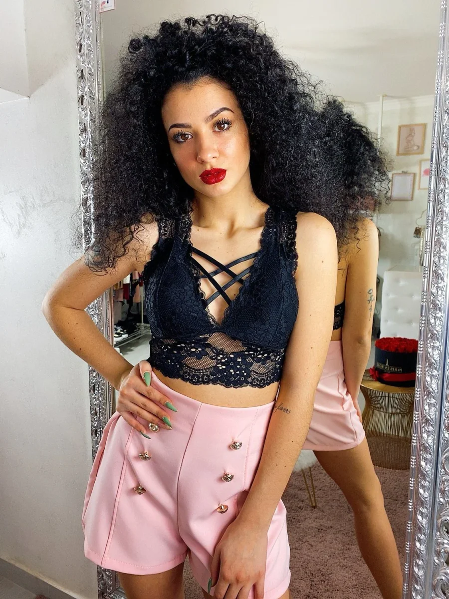 Bralette in pizzo con coppe, tessuto elasticizzato. Adatto a taglie piccole con piccolo seno.