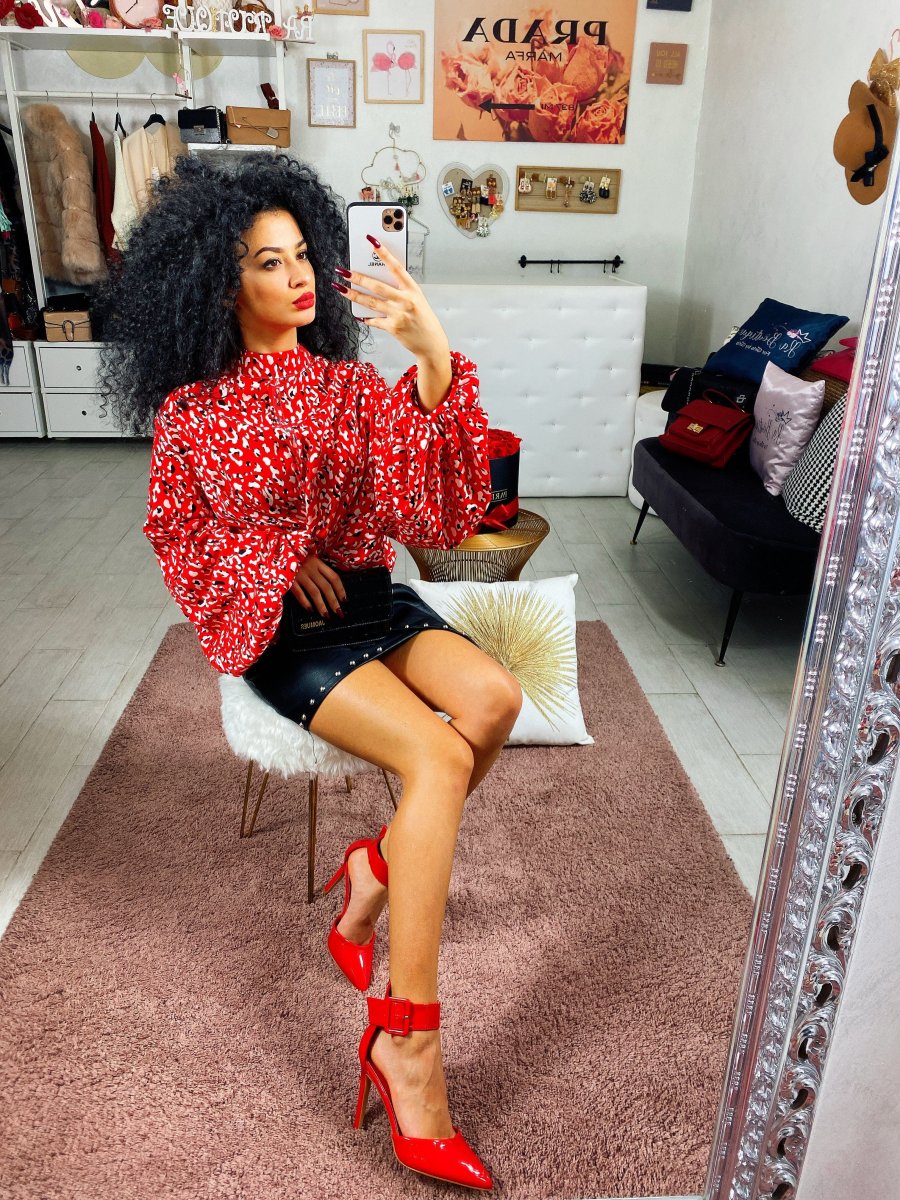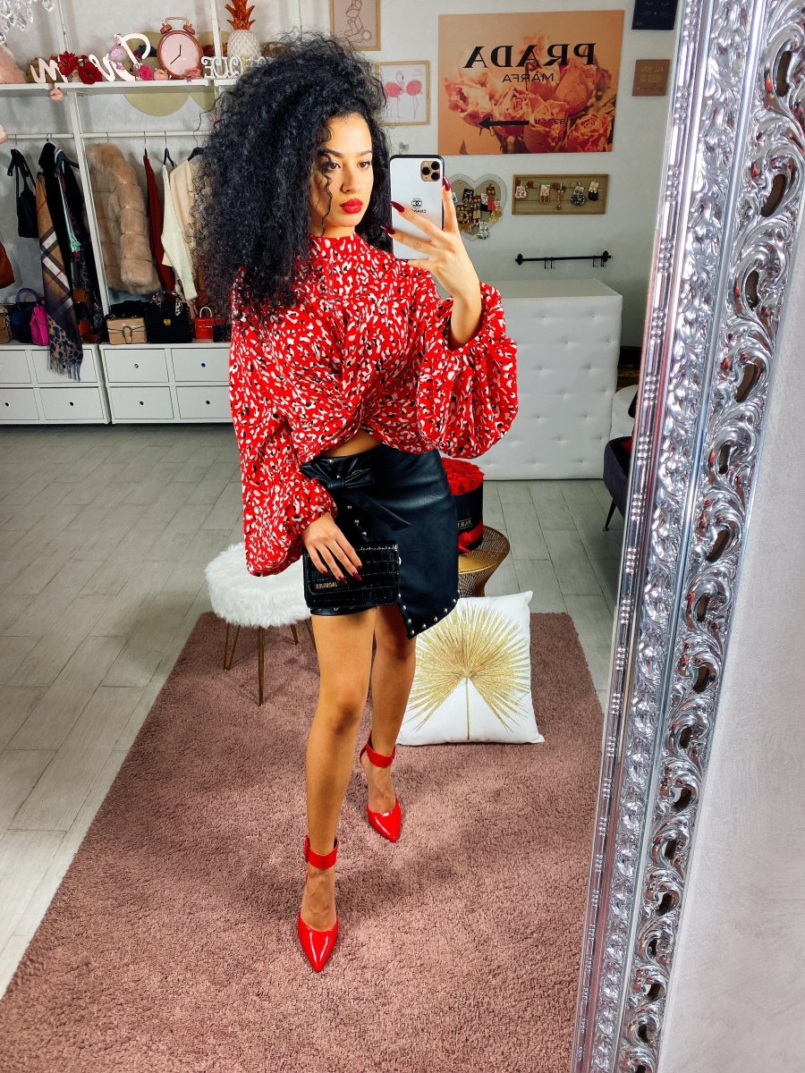Camicetta trama maculata con manica leggermente larga a girocollo color rosso . alta qualità