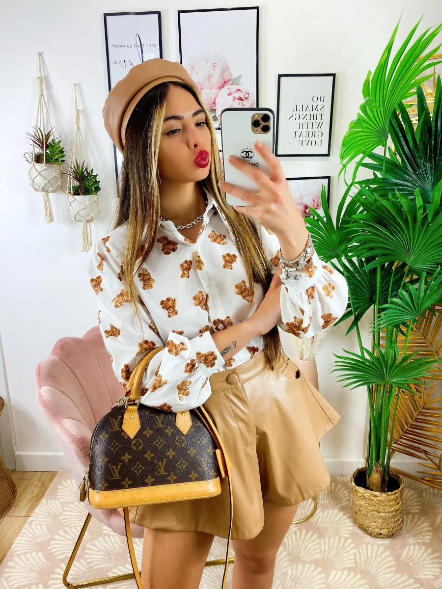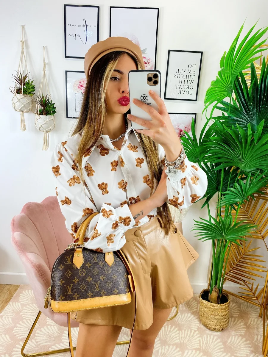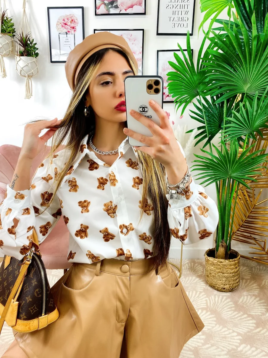 Camicetta con orsetti. Tono su tono, tessuto liscio comodo.