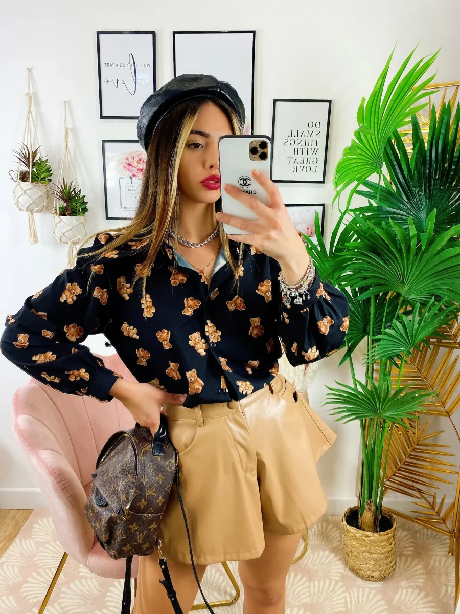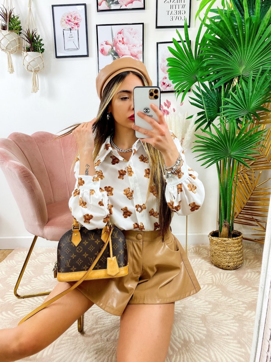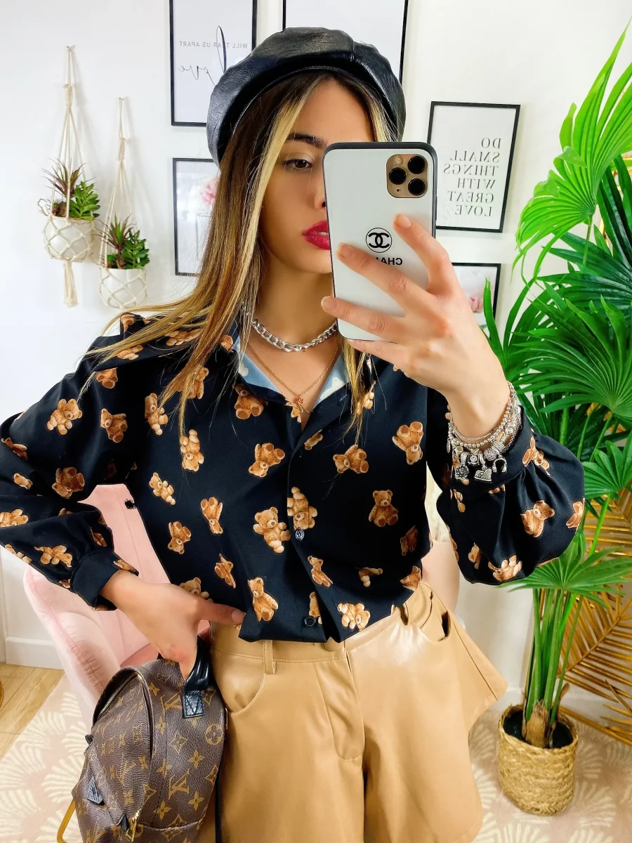 Camicetta con orsetti. Tono su tono, tessuto liscio comodo.