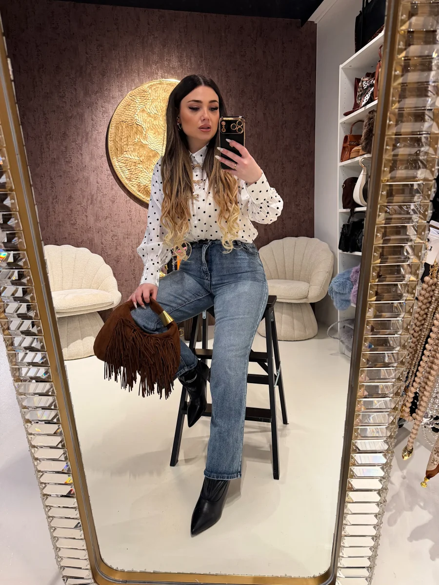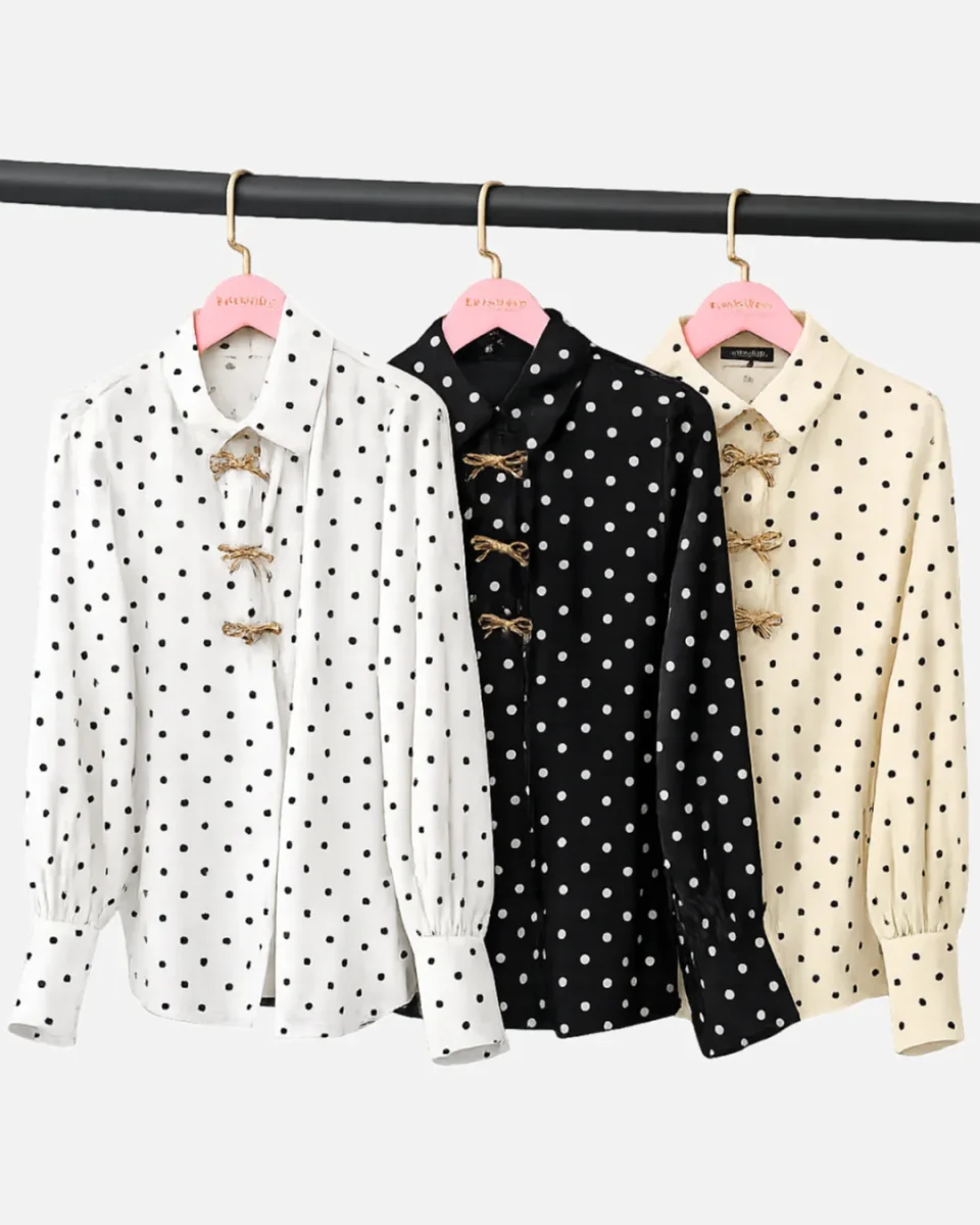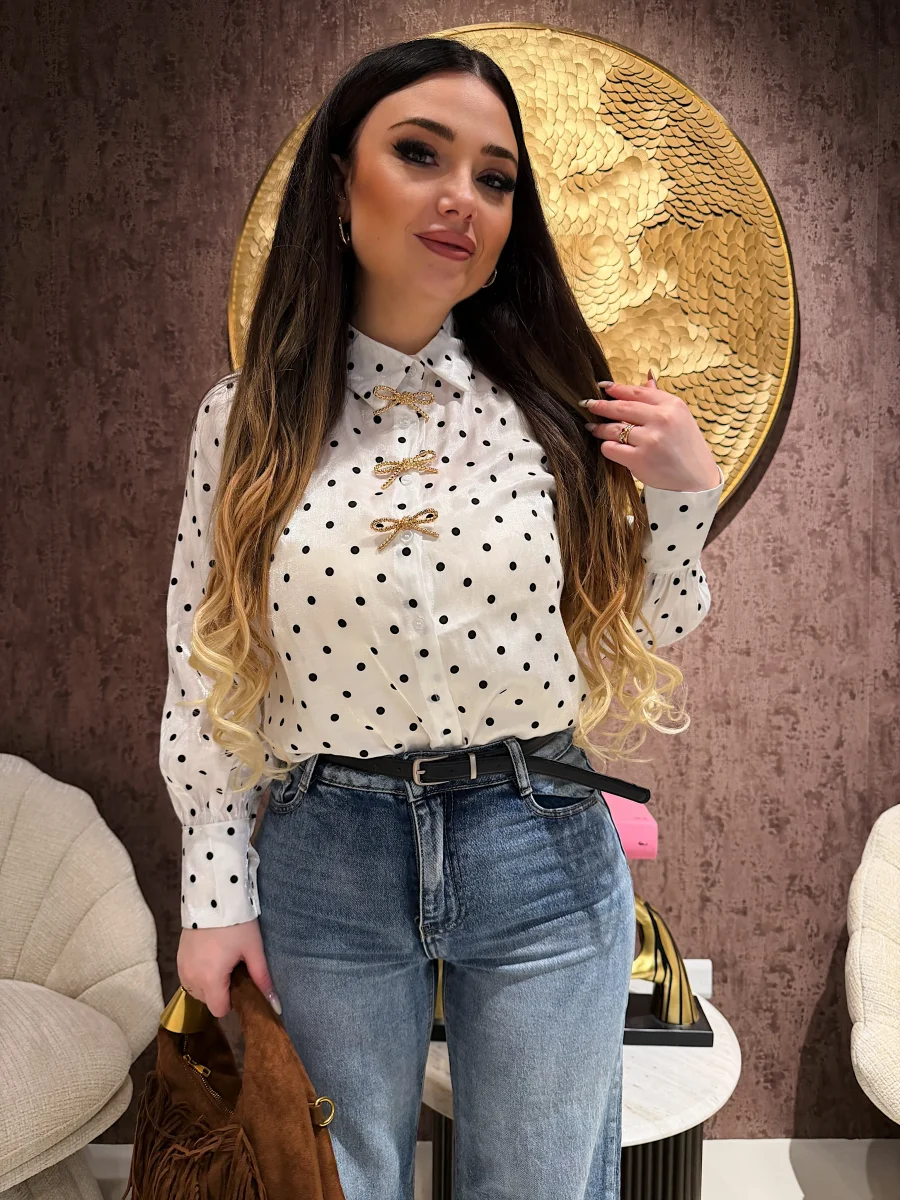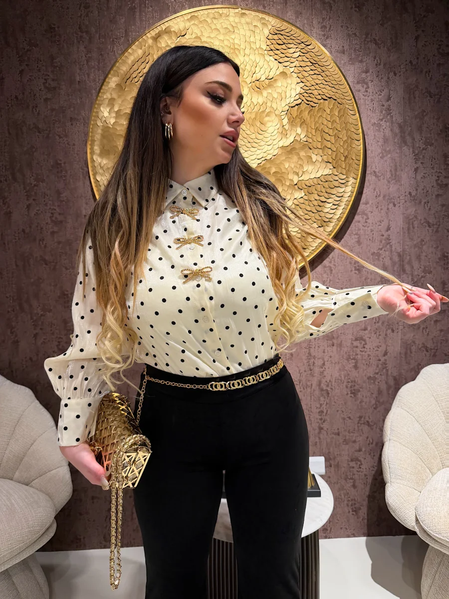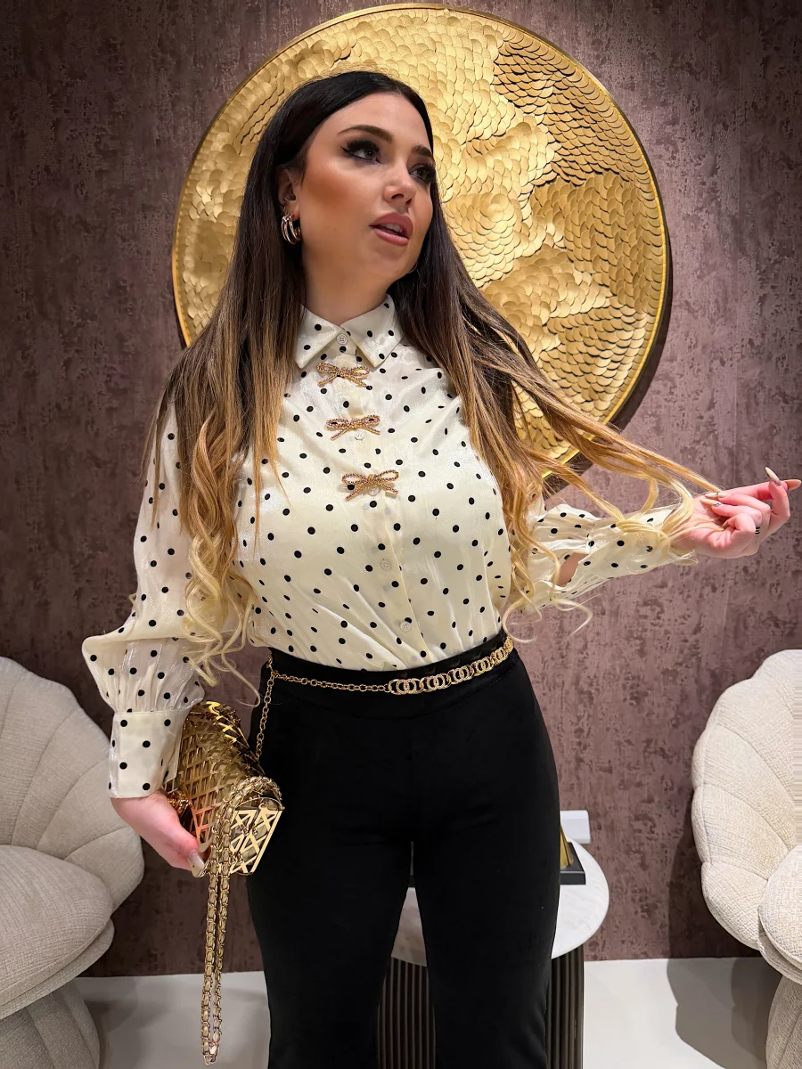 Camicia da donna dal design raffinato e femminile, realizzata in tessuto leggero con stampa a pois.