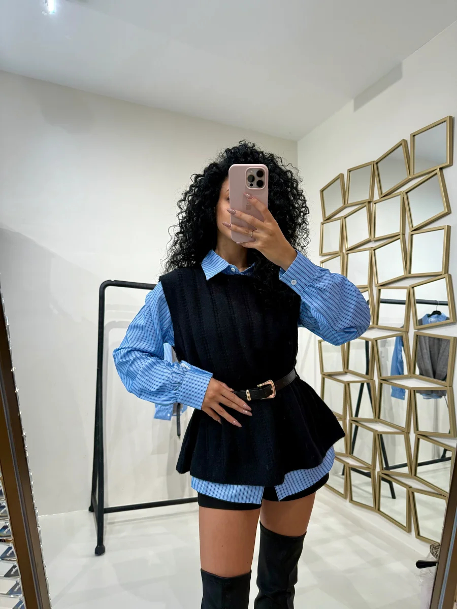 Camicia a righe con gilet maglia sovrapposto
