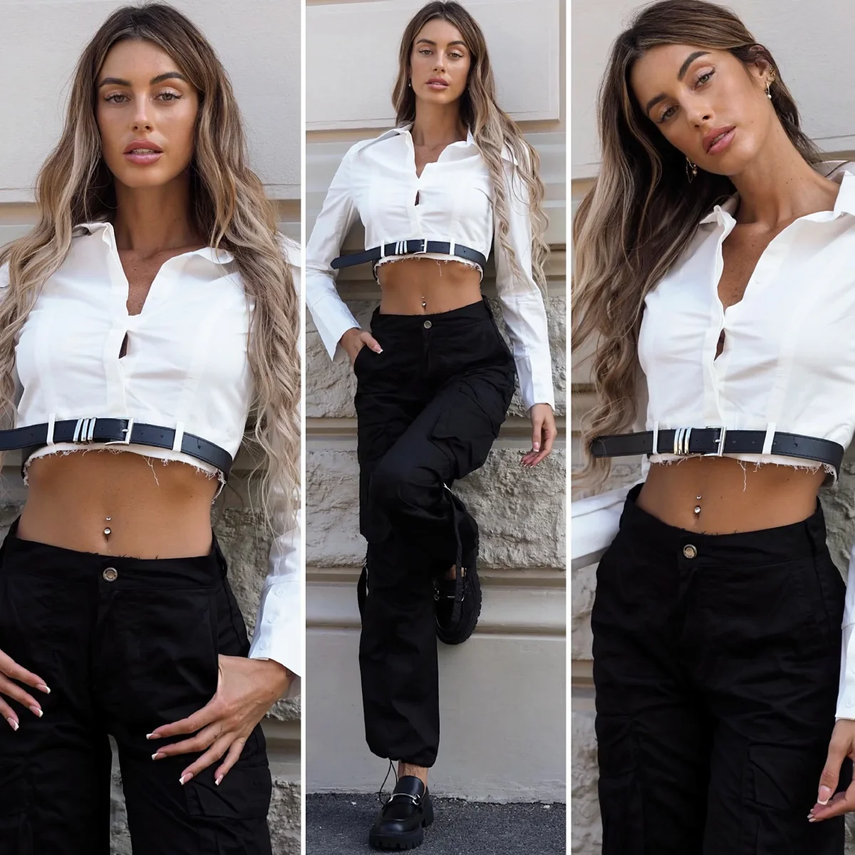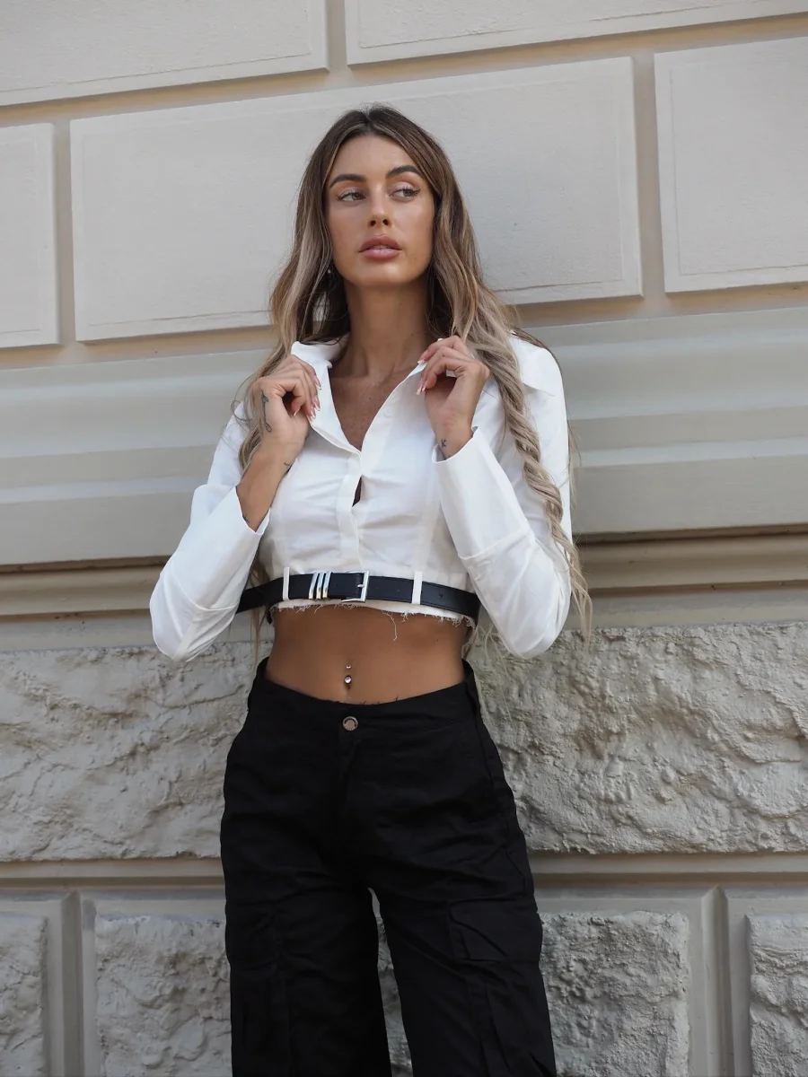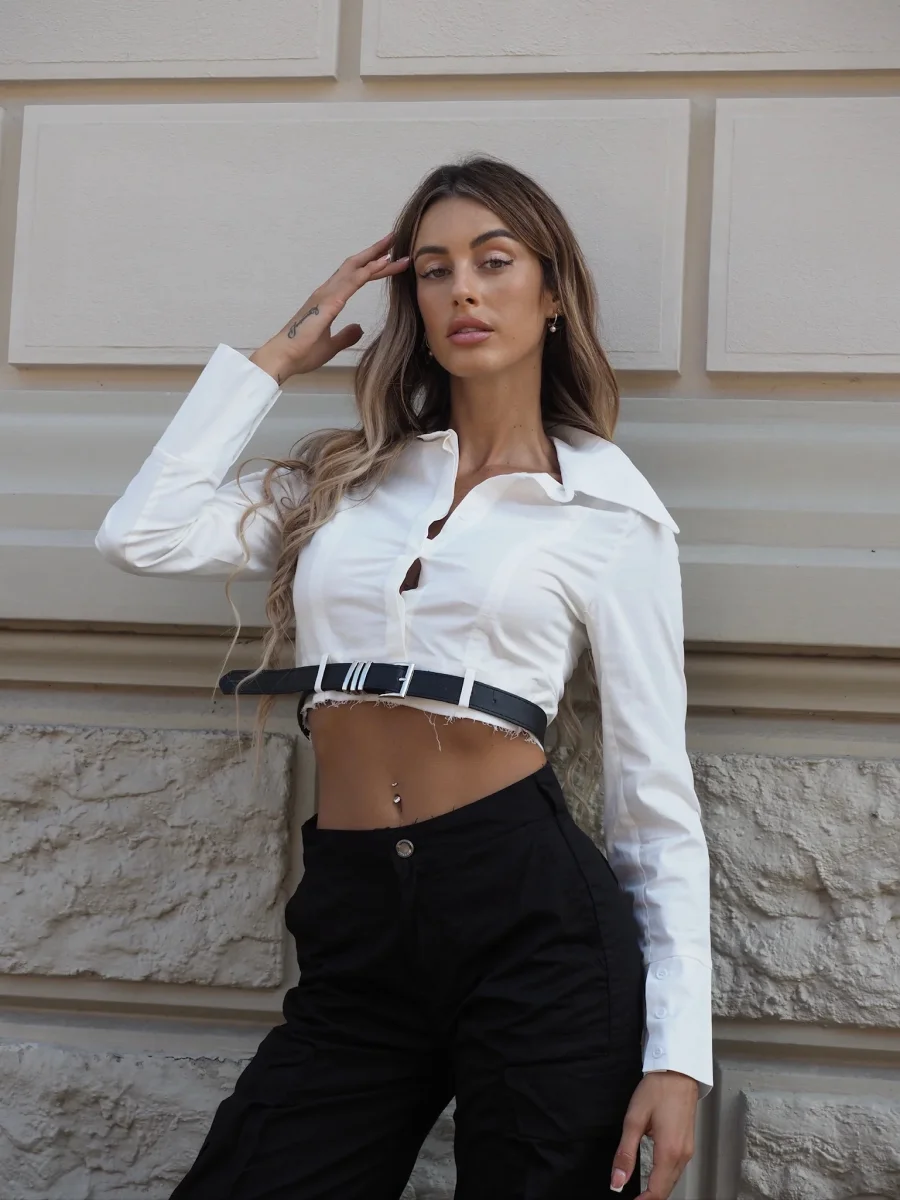 Camicia in cotone con dettaglio fibbia nel sotto ( può anche essere usata come cintura). In foto taglia S