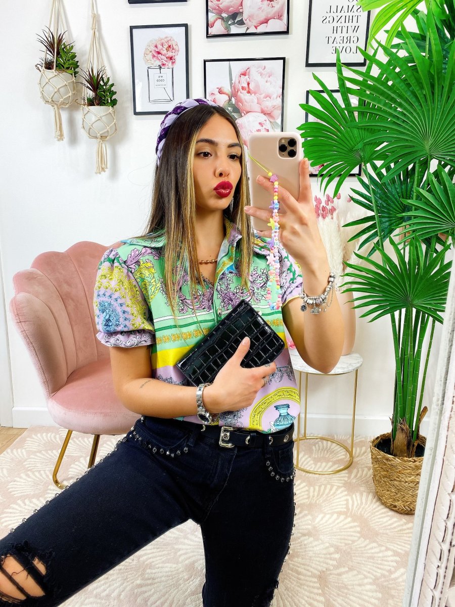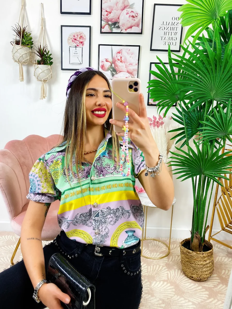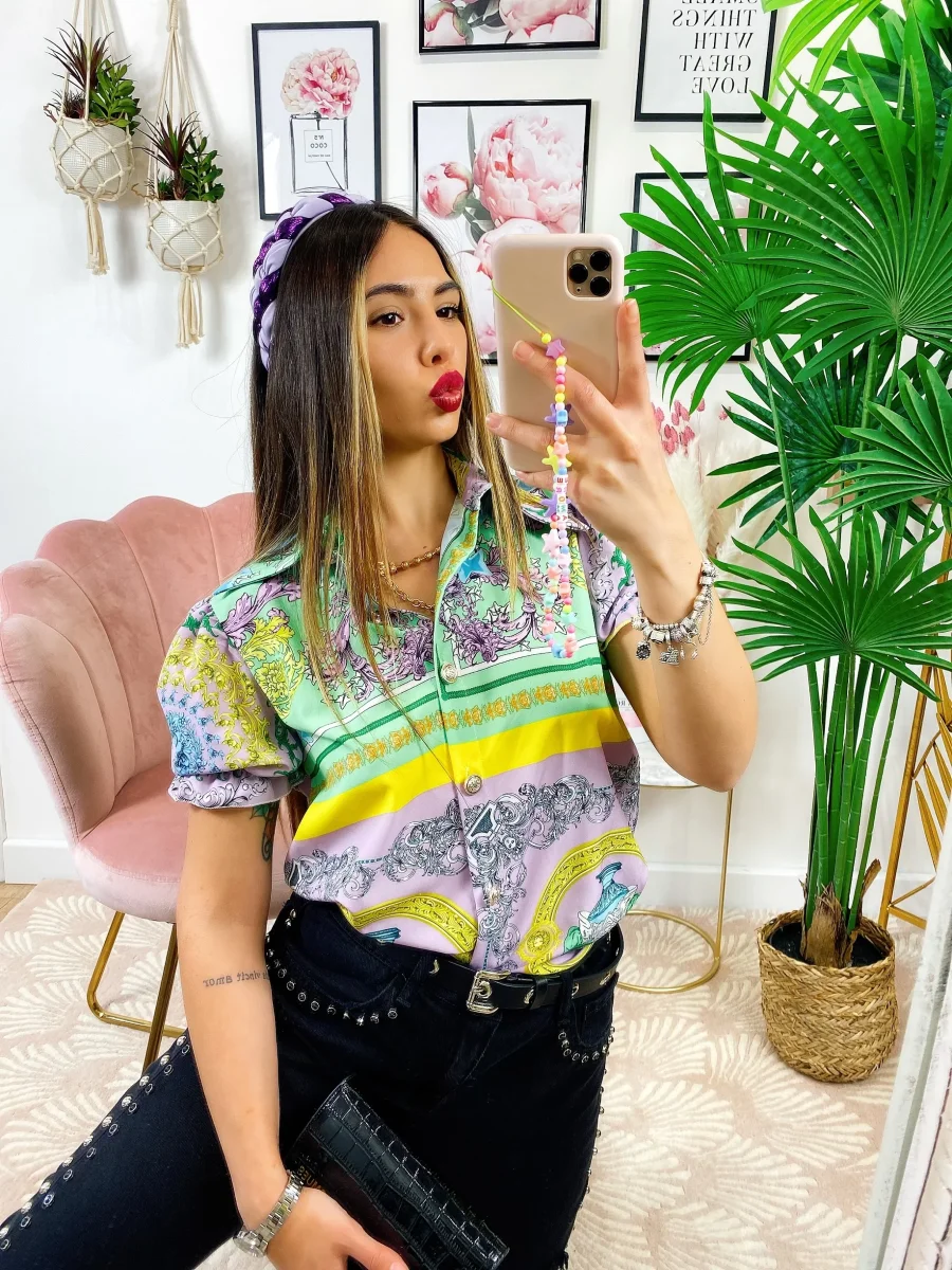Recensisci per primo “Camicia etnica dettaglio verde manica corta”