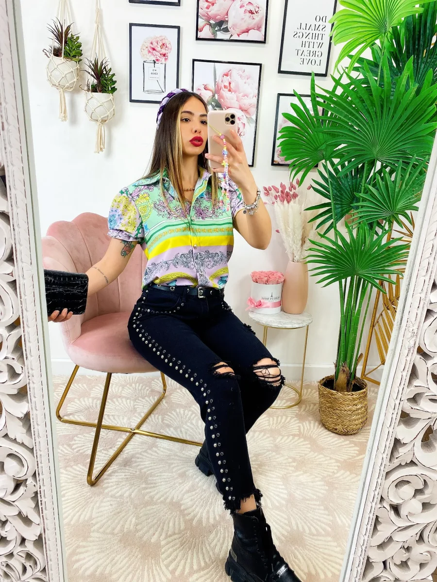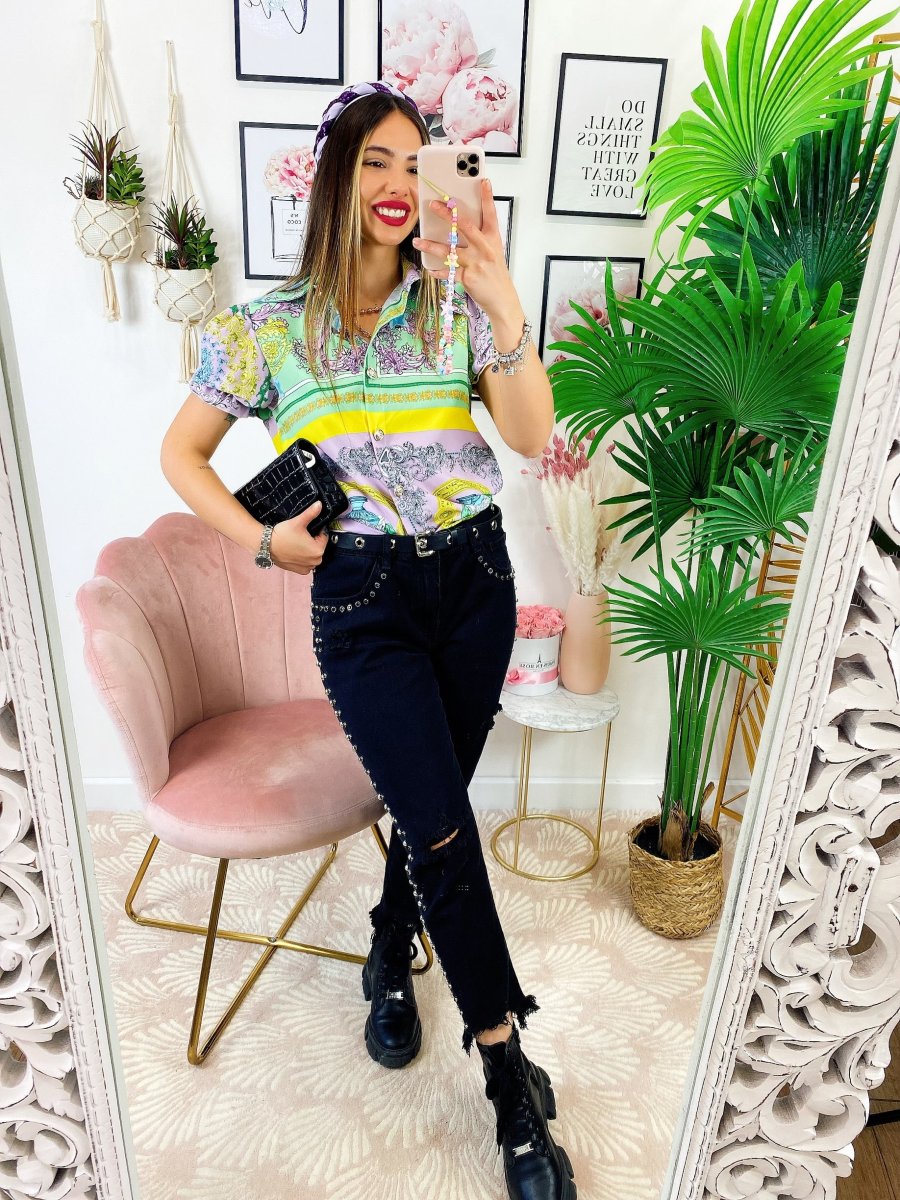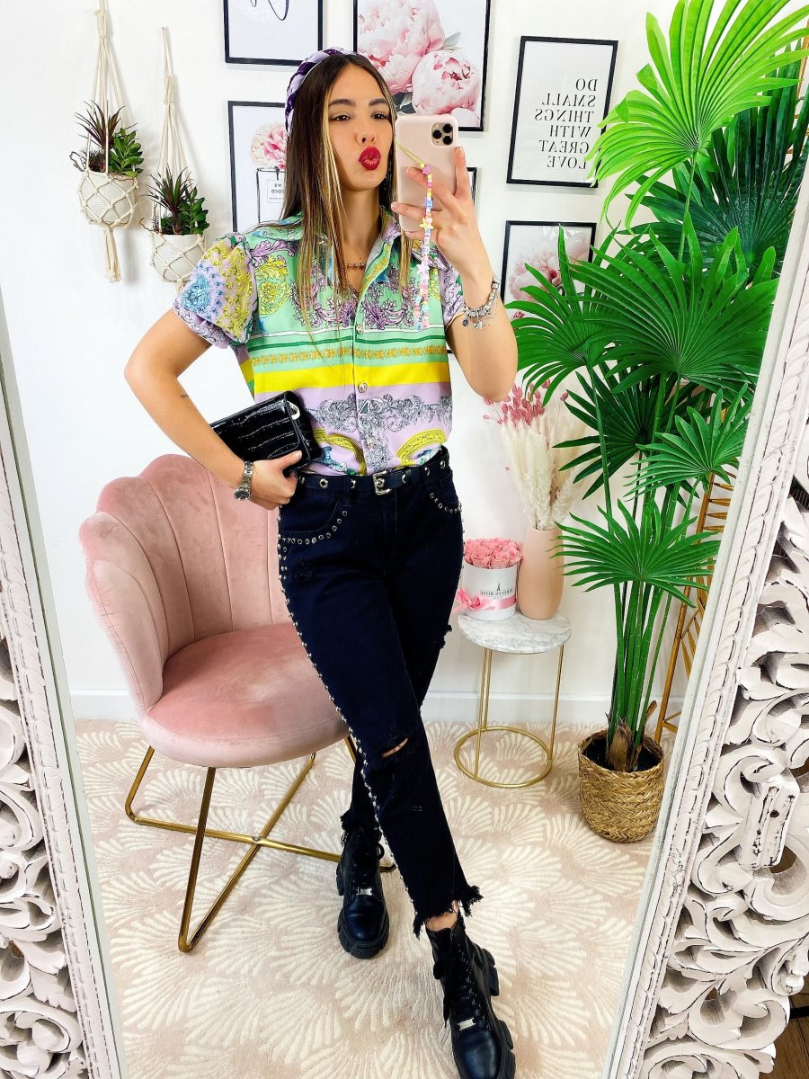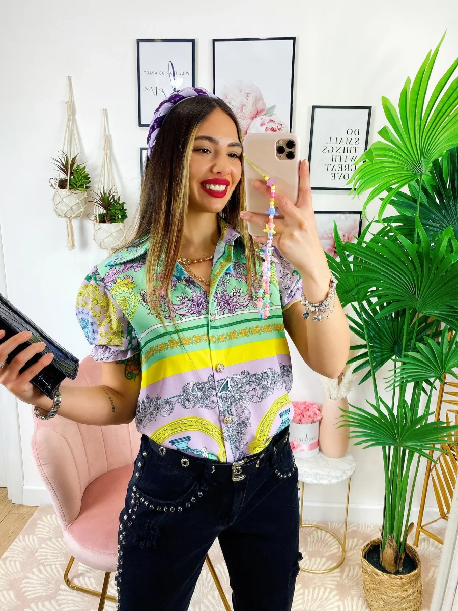 Recensisci per primo “Camicia etnica dettaglio verde manica corta”