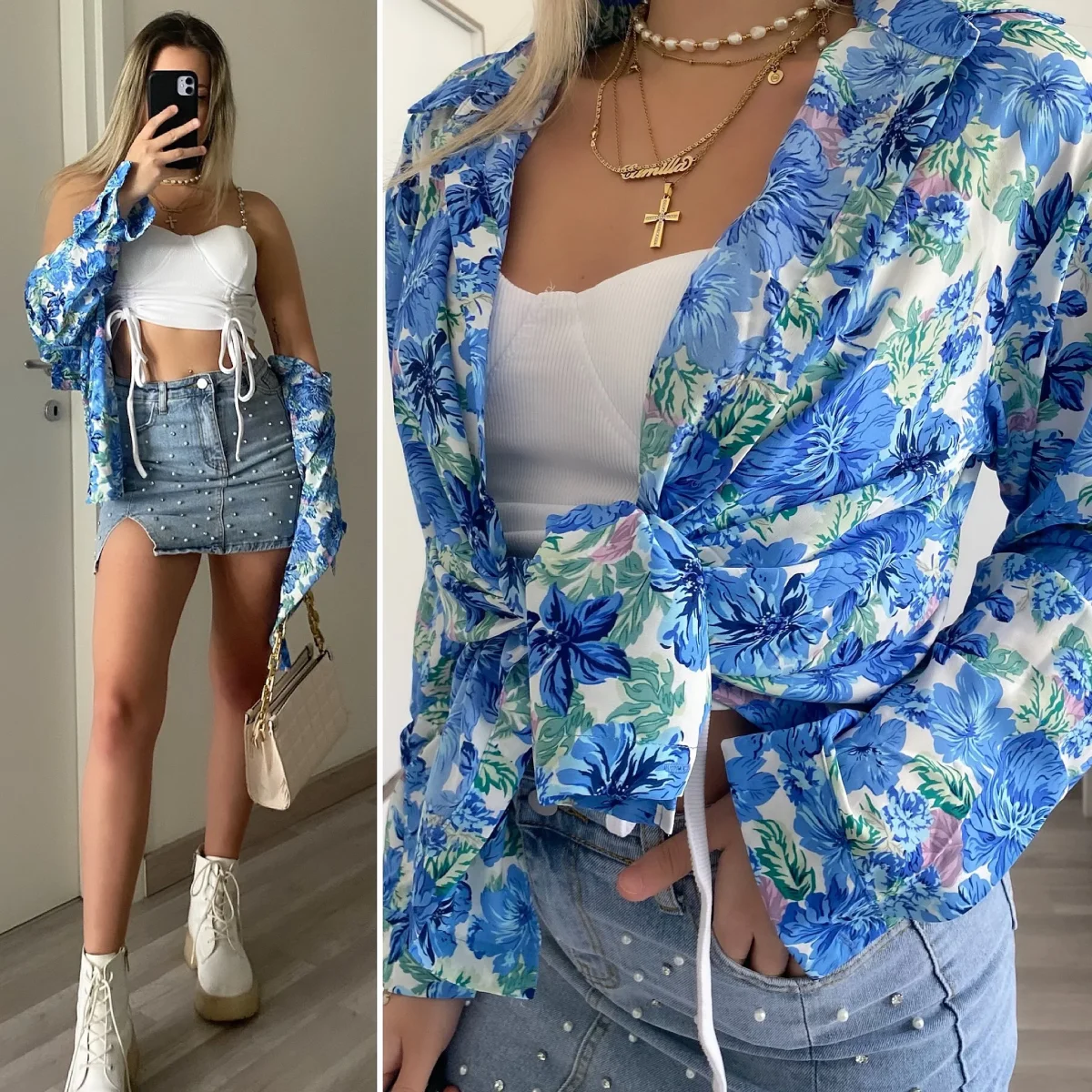 Camicia morbida in viscosa portabile normale lunga, con nodo davanti o dentro i pantaloni.