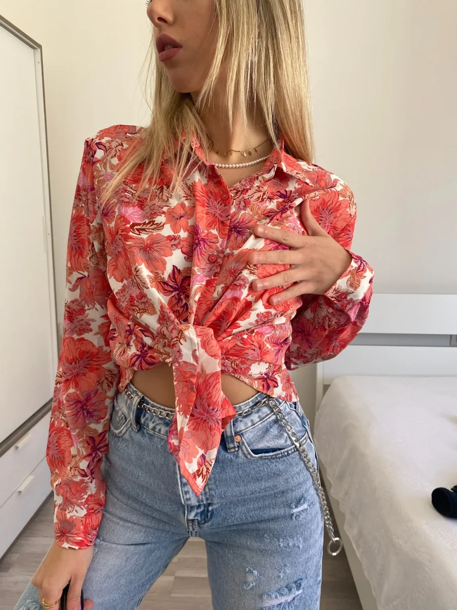 Camicia floreale corallo