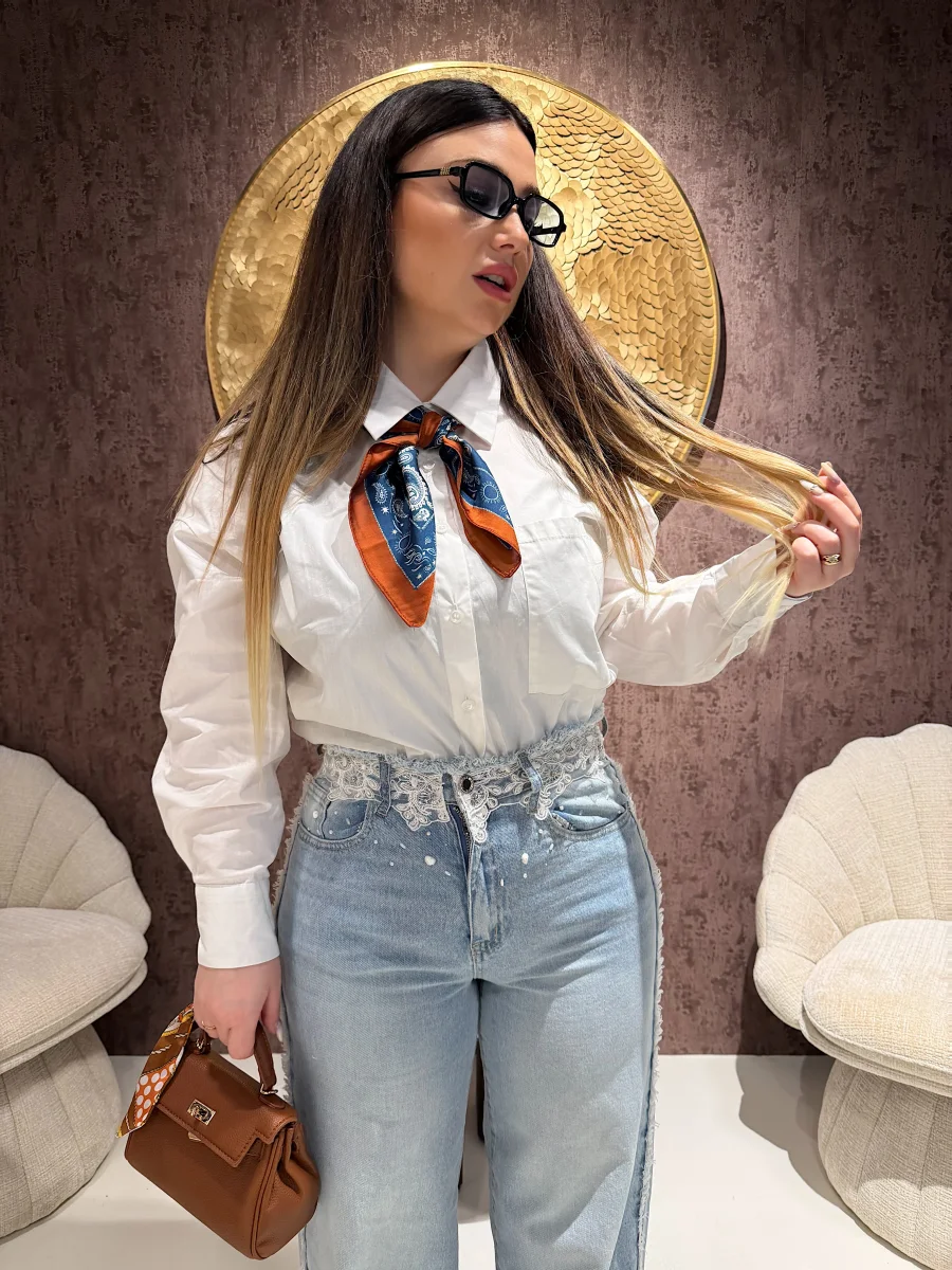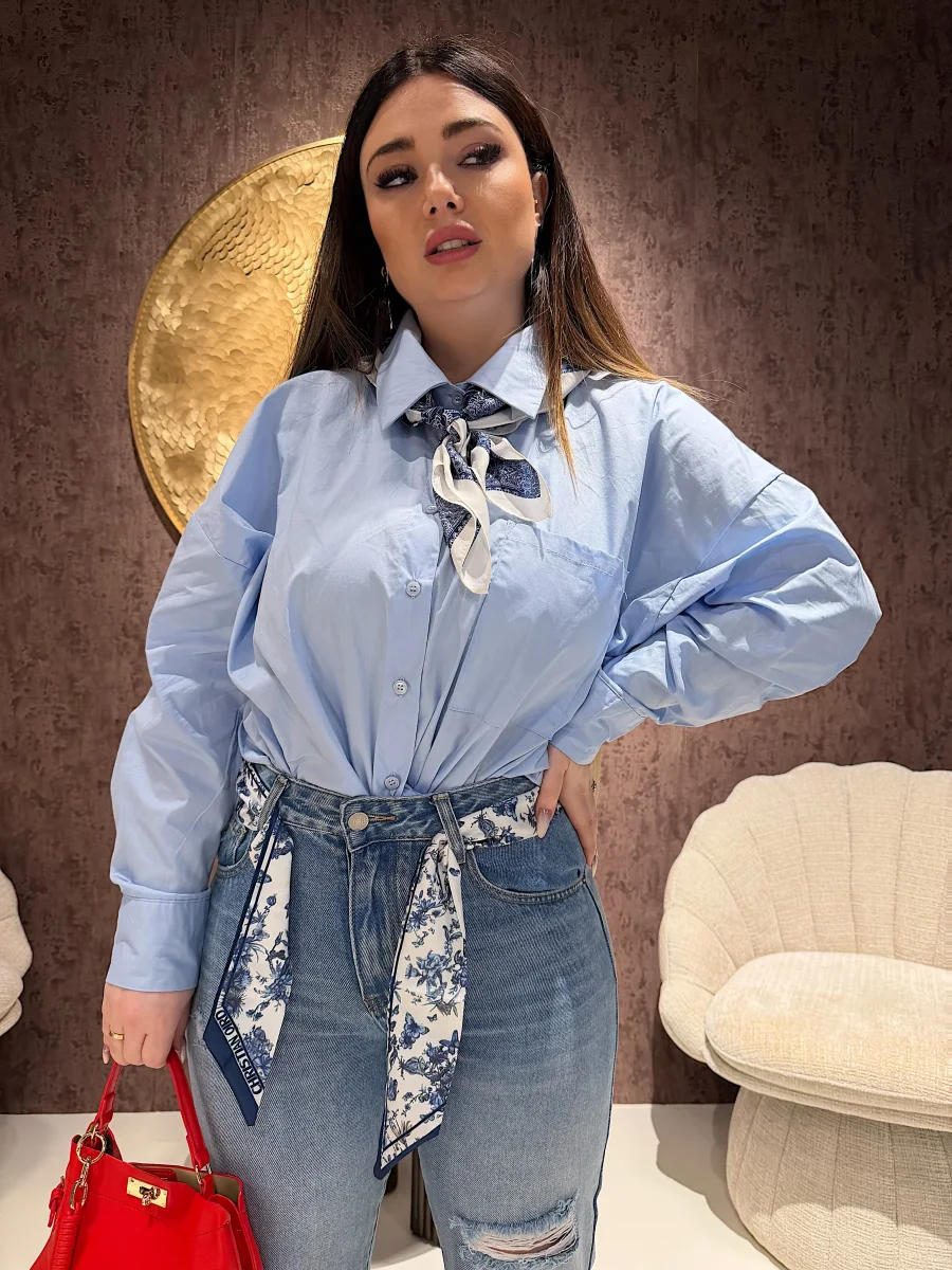 La camicia con foulard 100% cotone è il perfetto mix di eleganza e comodità. Realizzata interamente in cotone, offre un indossare leggero e traspirante, assicurando il massimo comfort in qualsiasi occasione. Il foulard aggiunge un tocco di raffinatezza, permettendo di giocare con diversi stili. Perfetta per chi ama un look impeccabile.