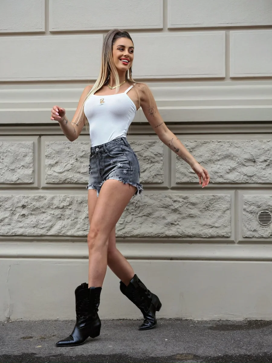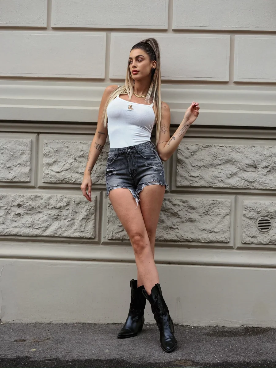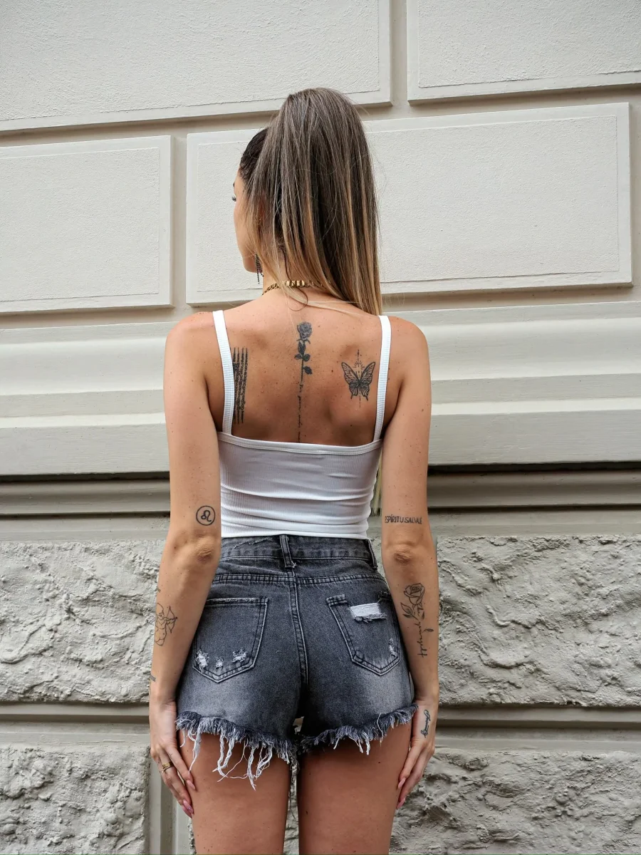 Canotta a costine bianca con dettaglio ricamato sul davanti