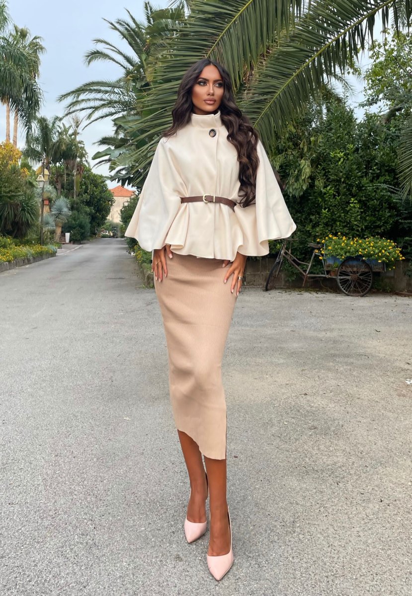 Cappa panna con cintura Camel