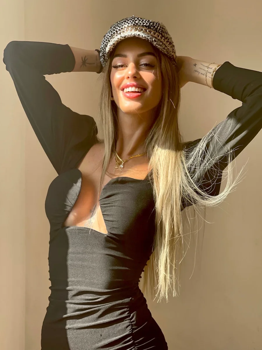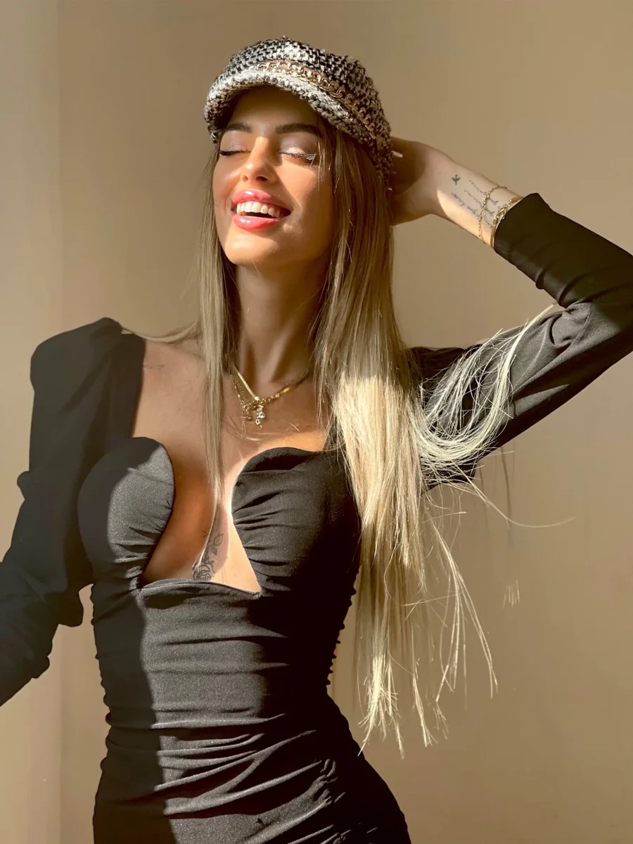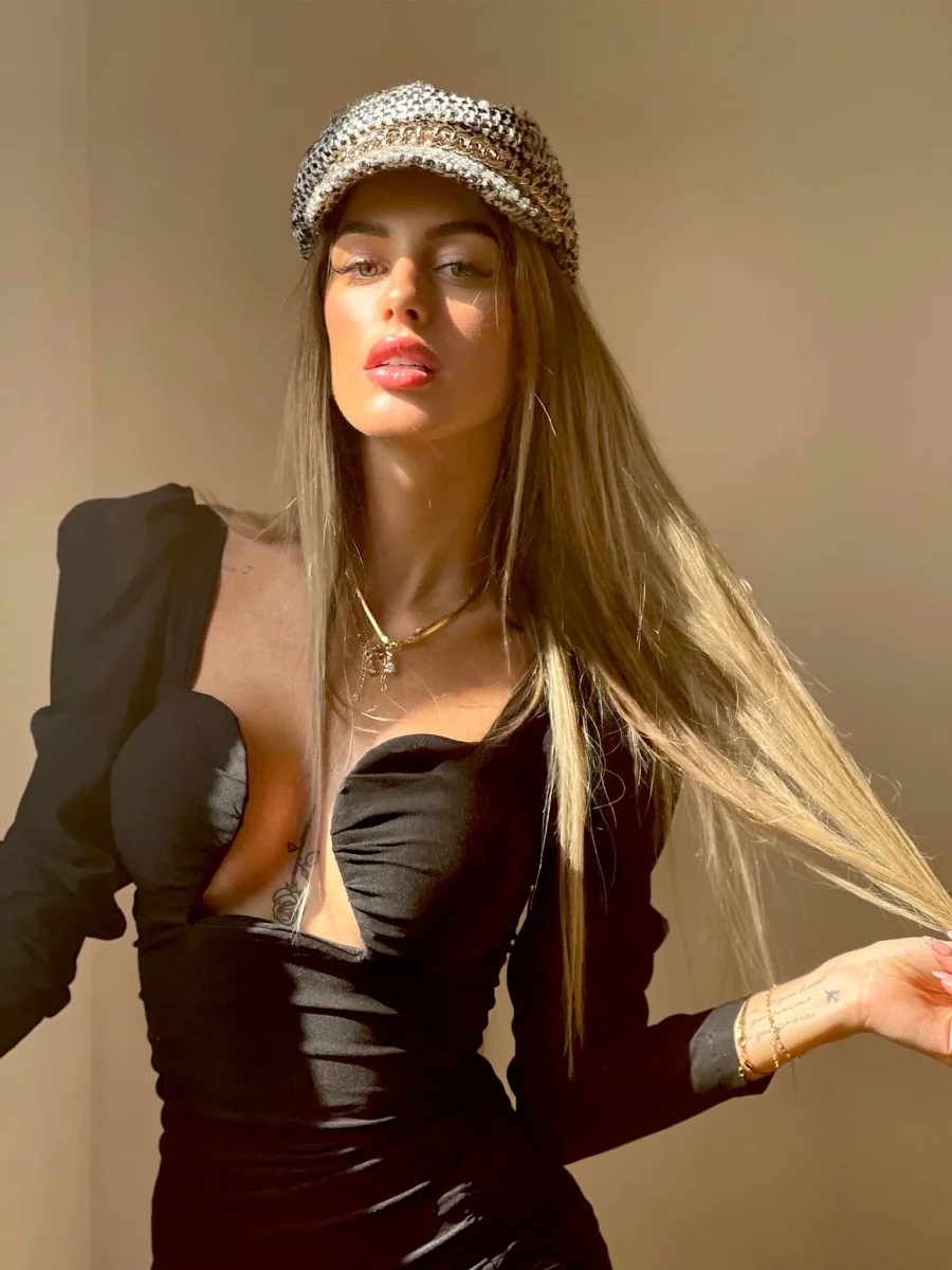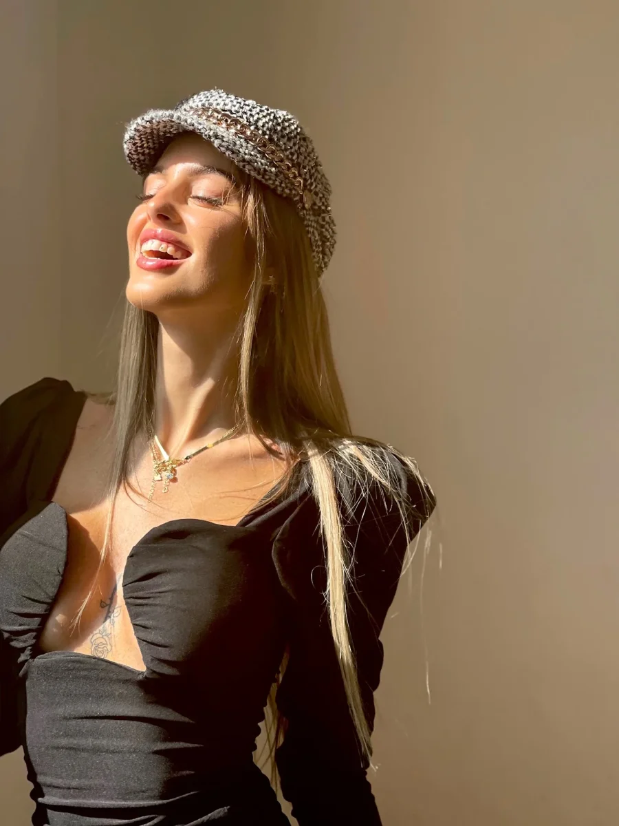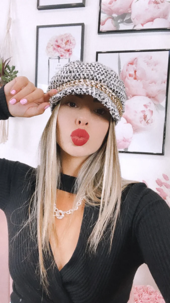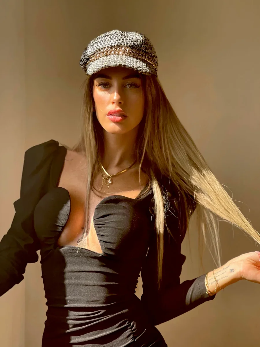 Cappello bianco e nero catena oro