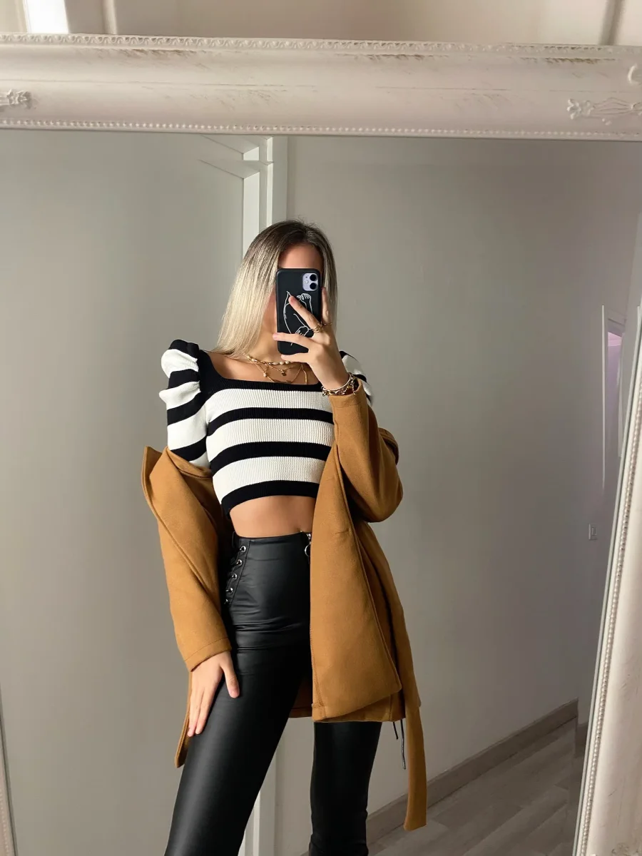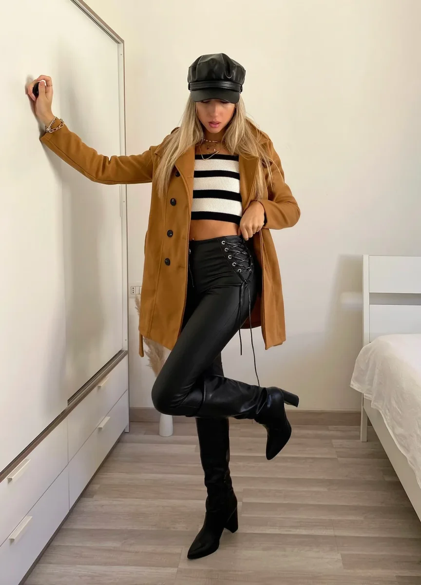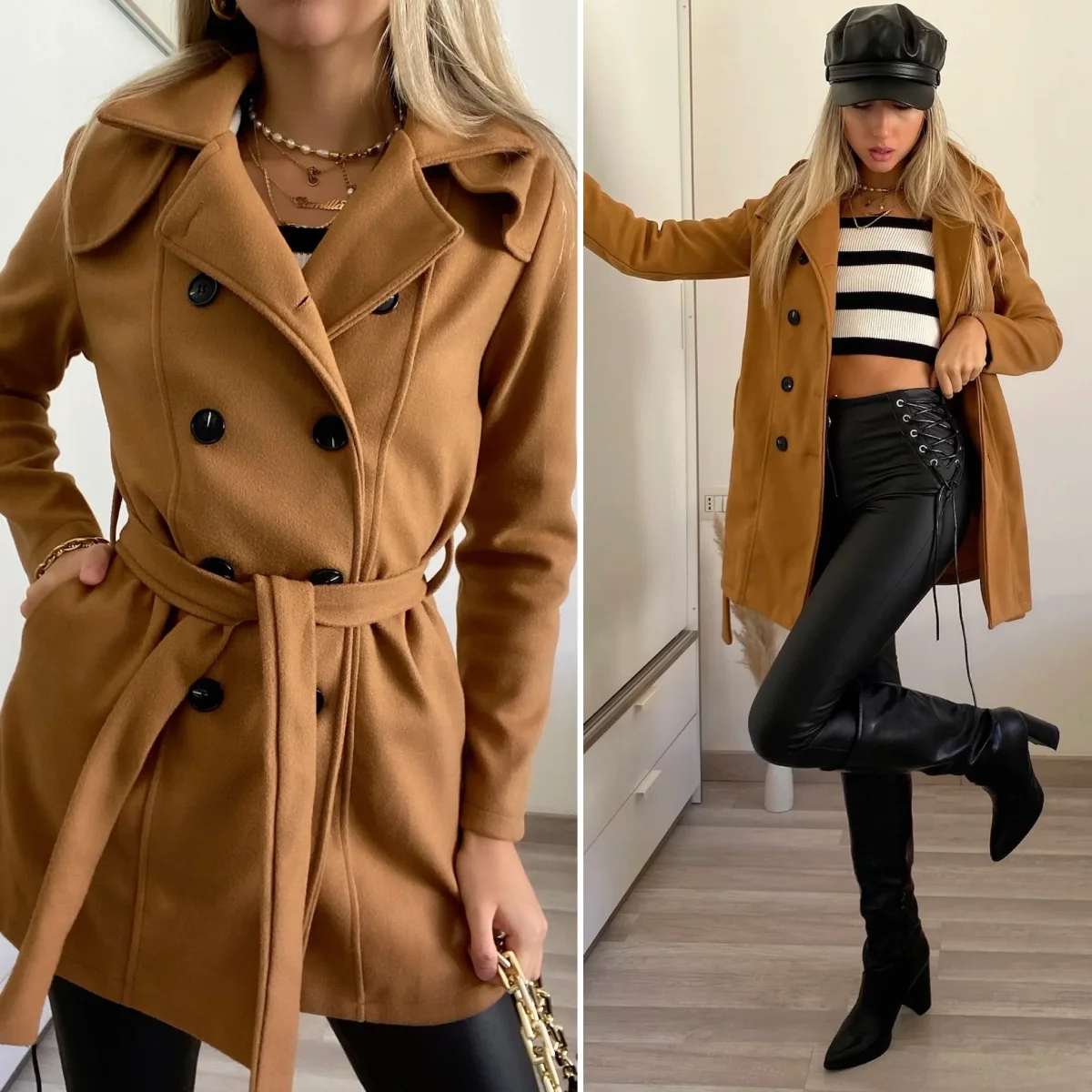Cappotto in panno con fodera interna con cintura e particolare doppio petto