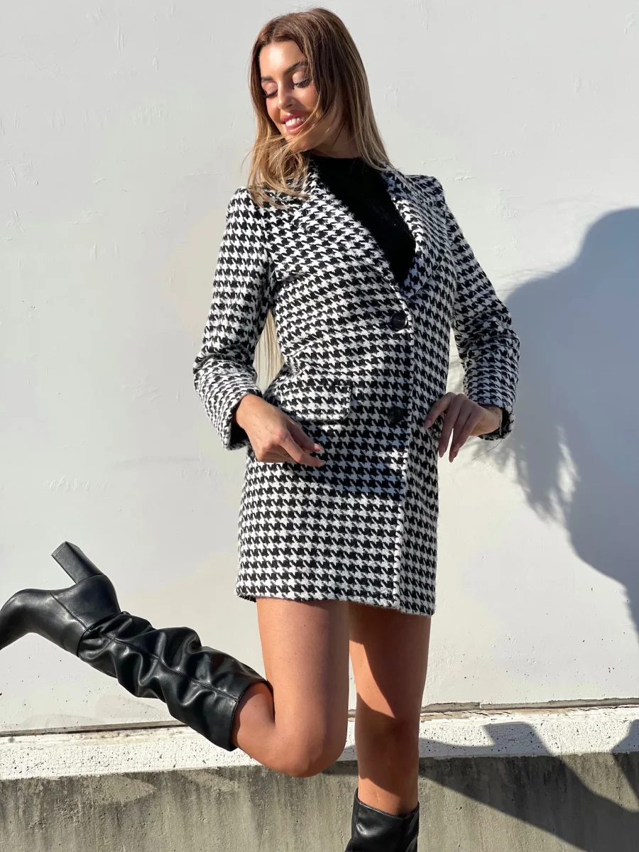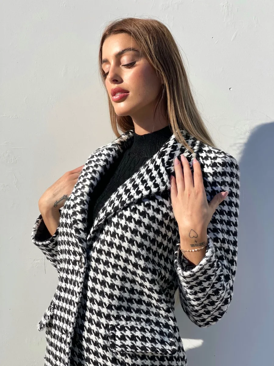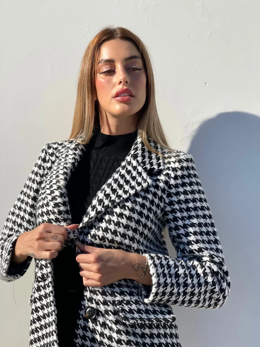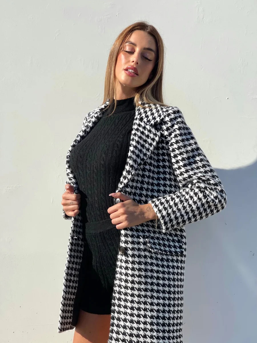 Cappotto pied de poule, foderato al Suo interno, tiene caldo.