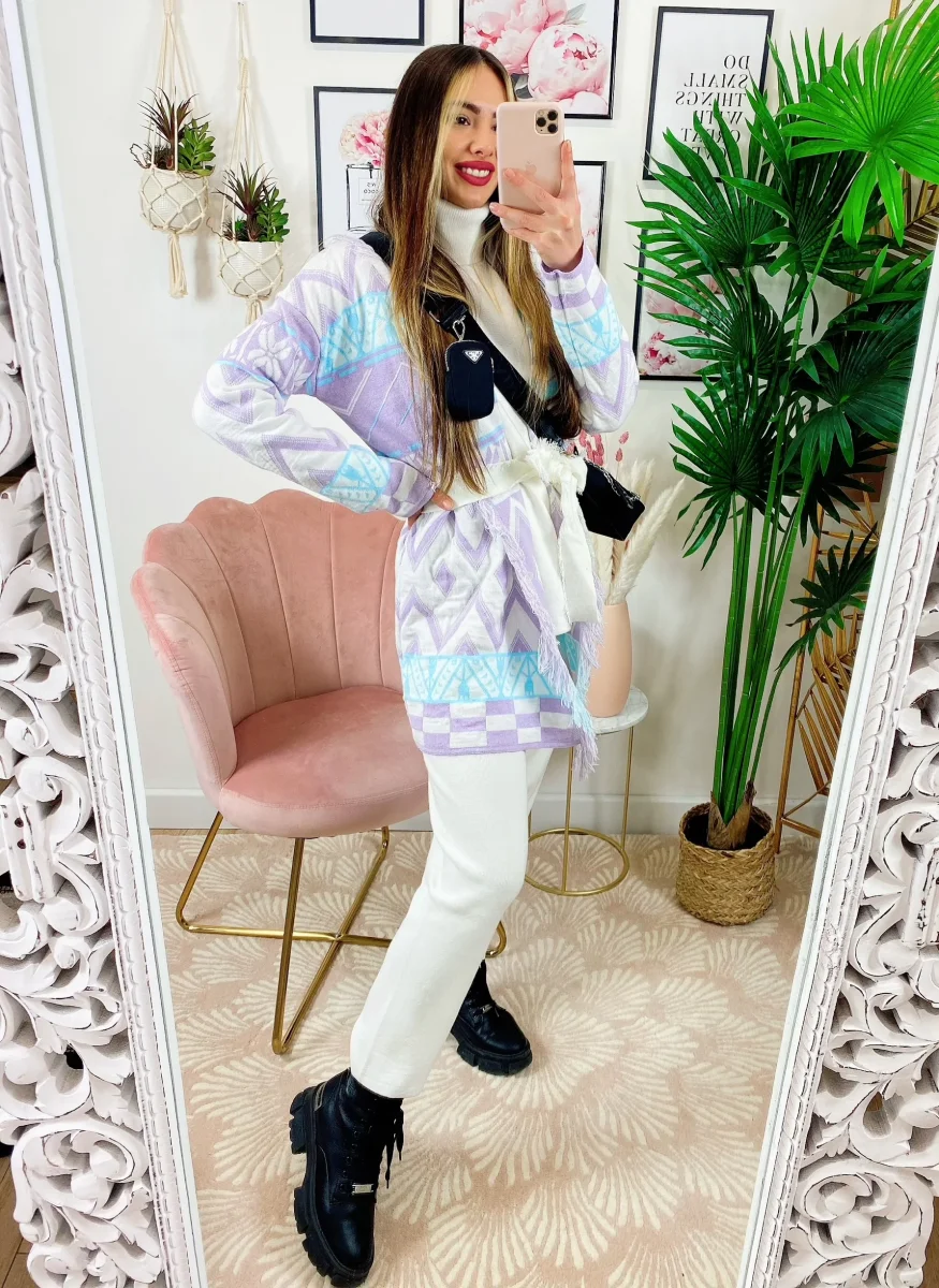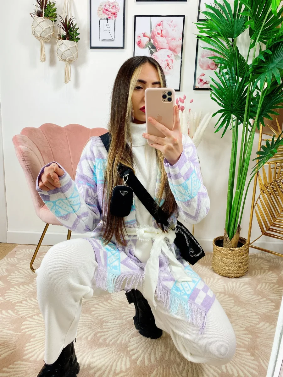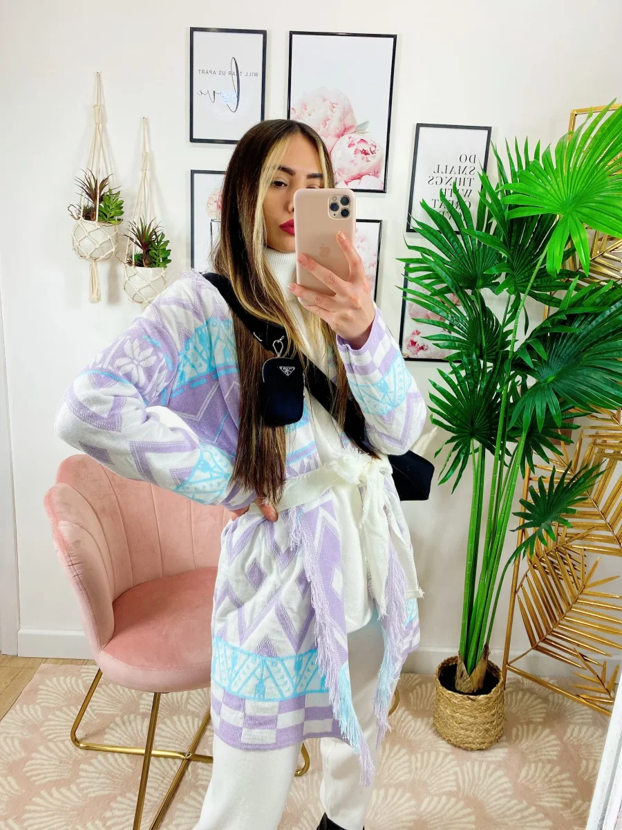 Cardigan con frange e cinta Lilla. Alta qualità