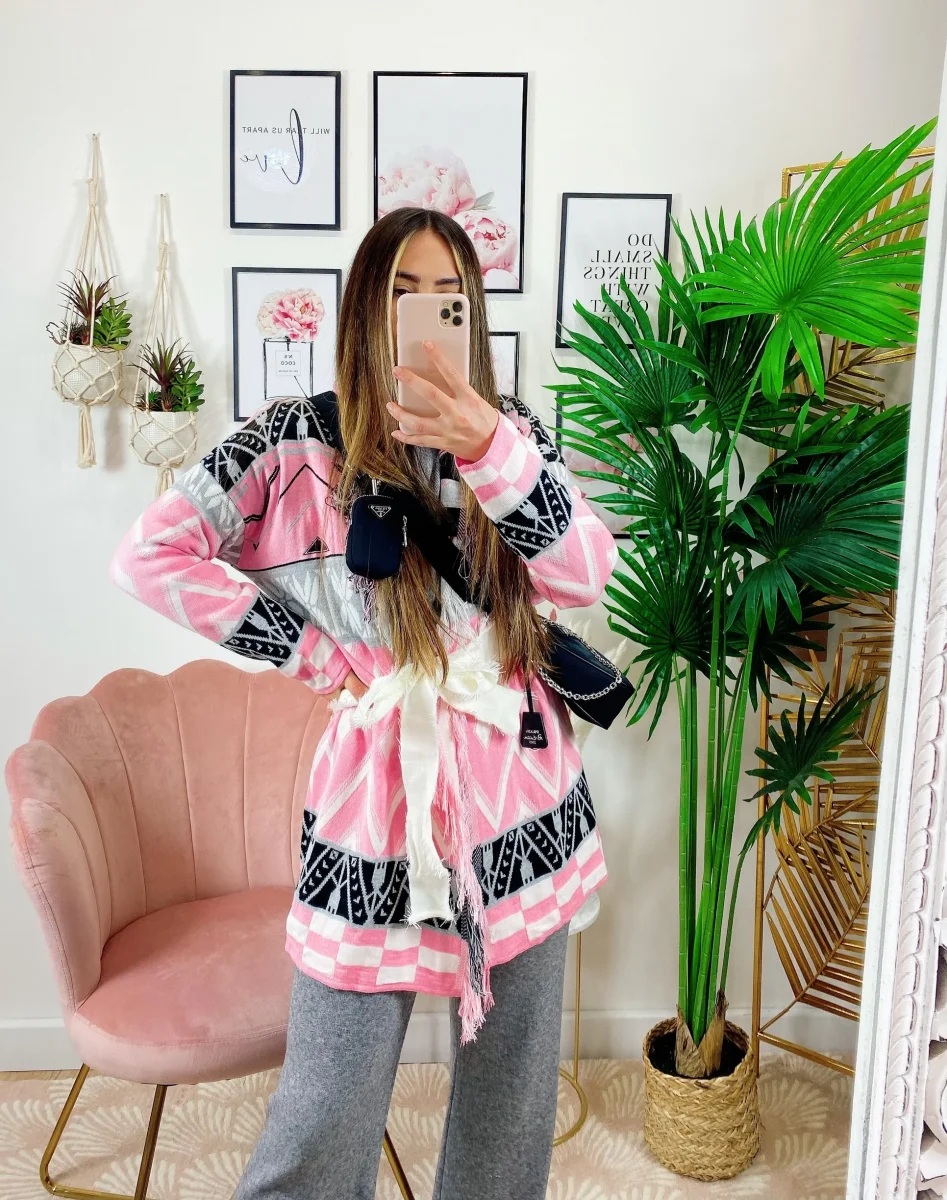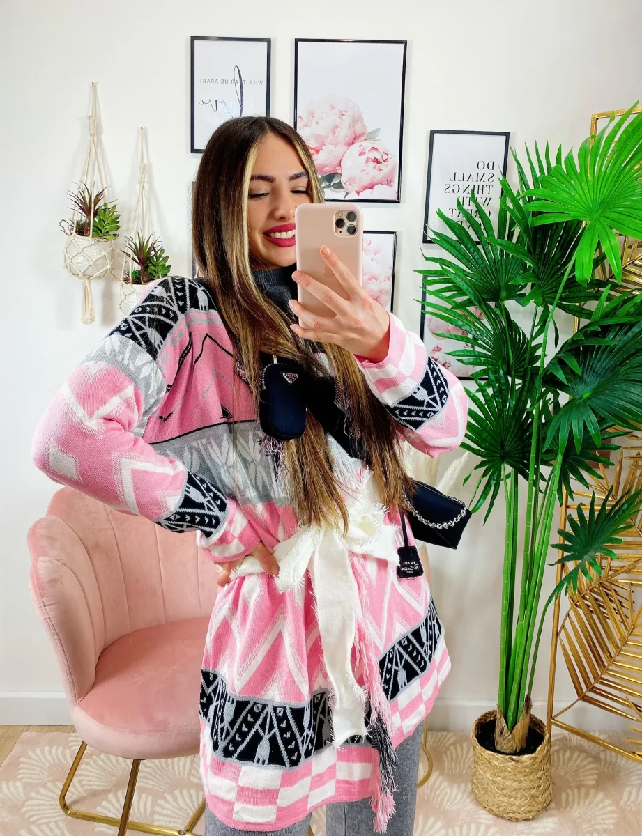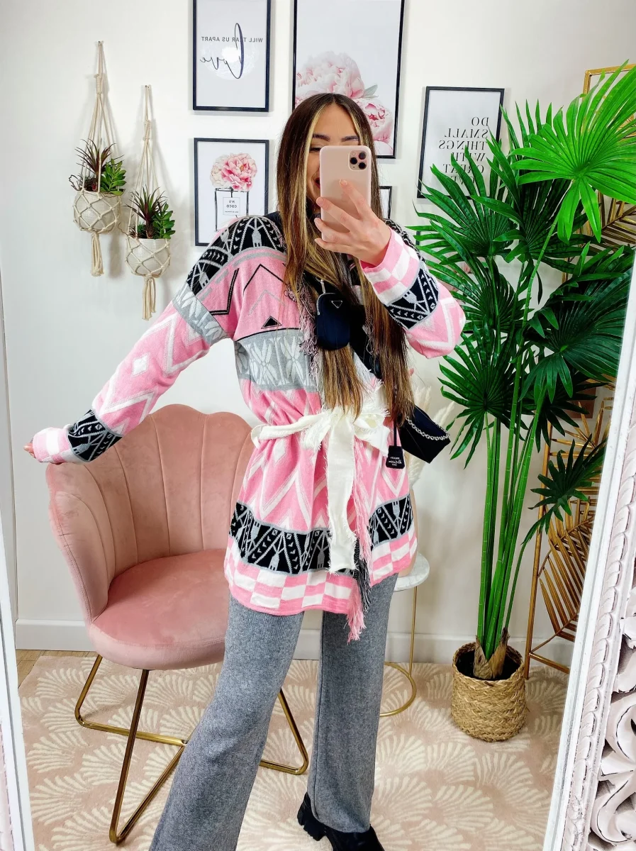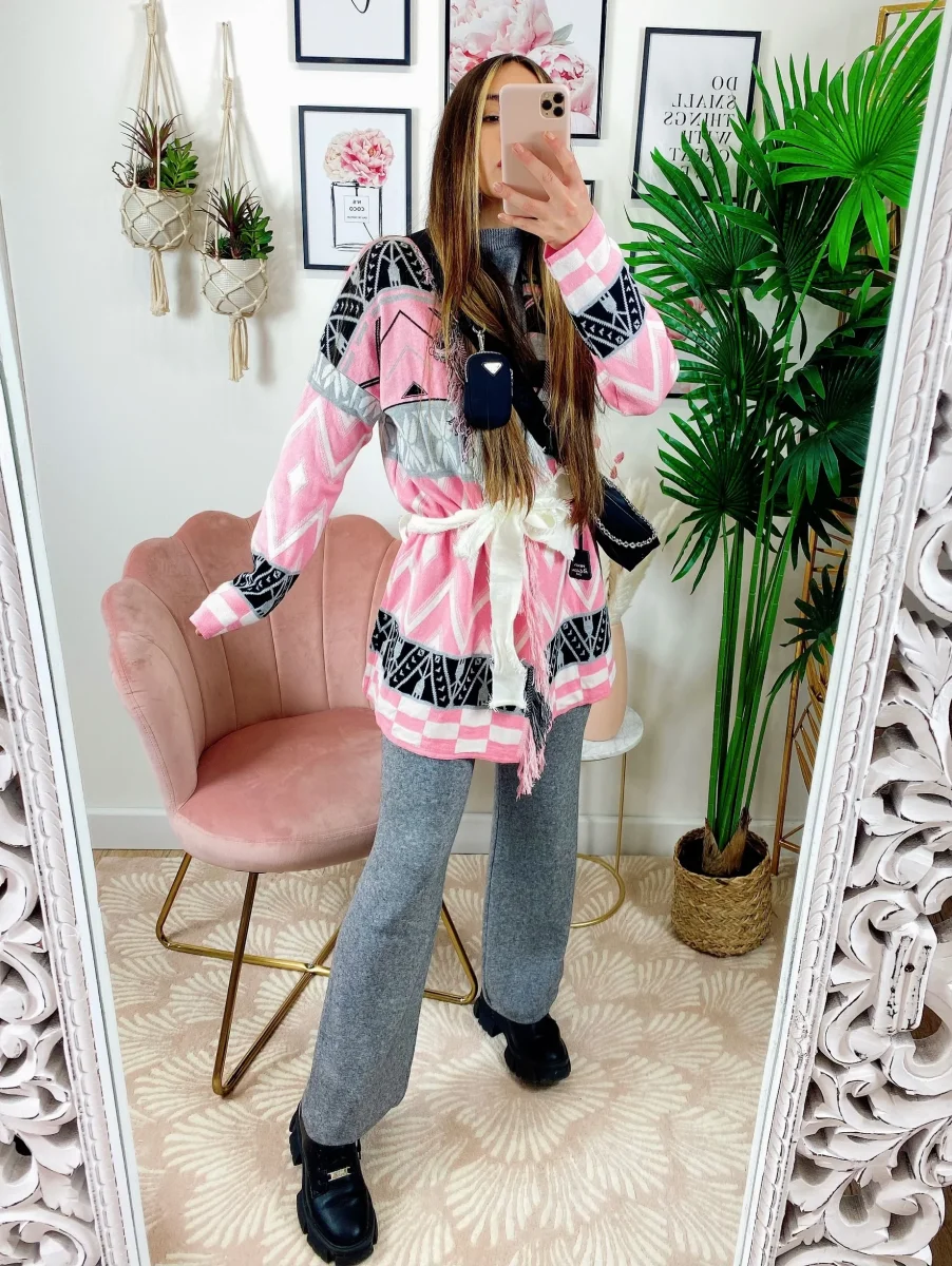 Cardigan con frange e cinta Rosa. Alta qualità