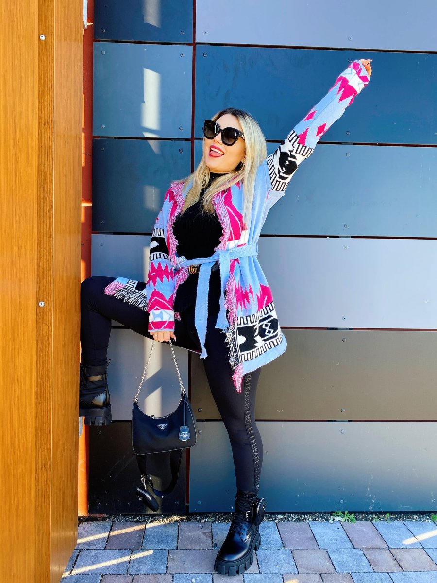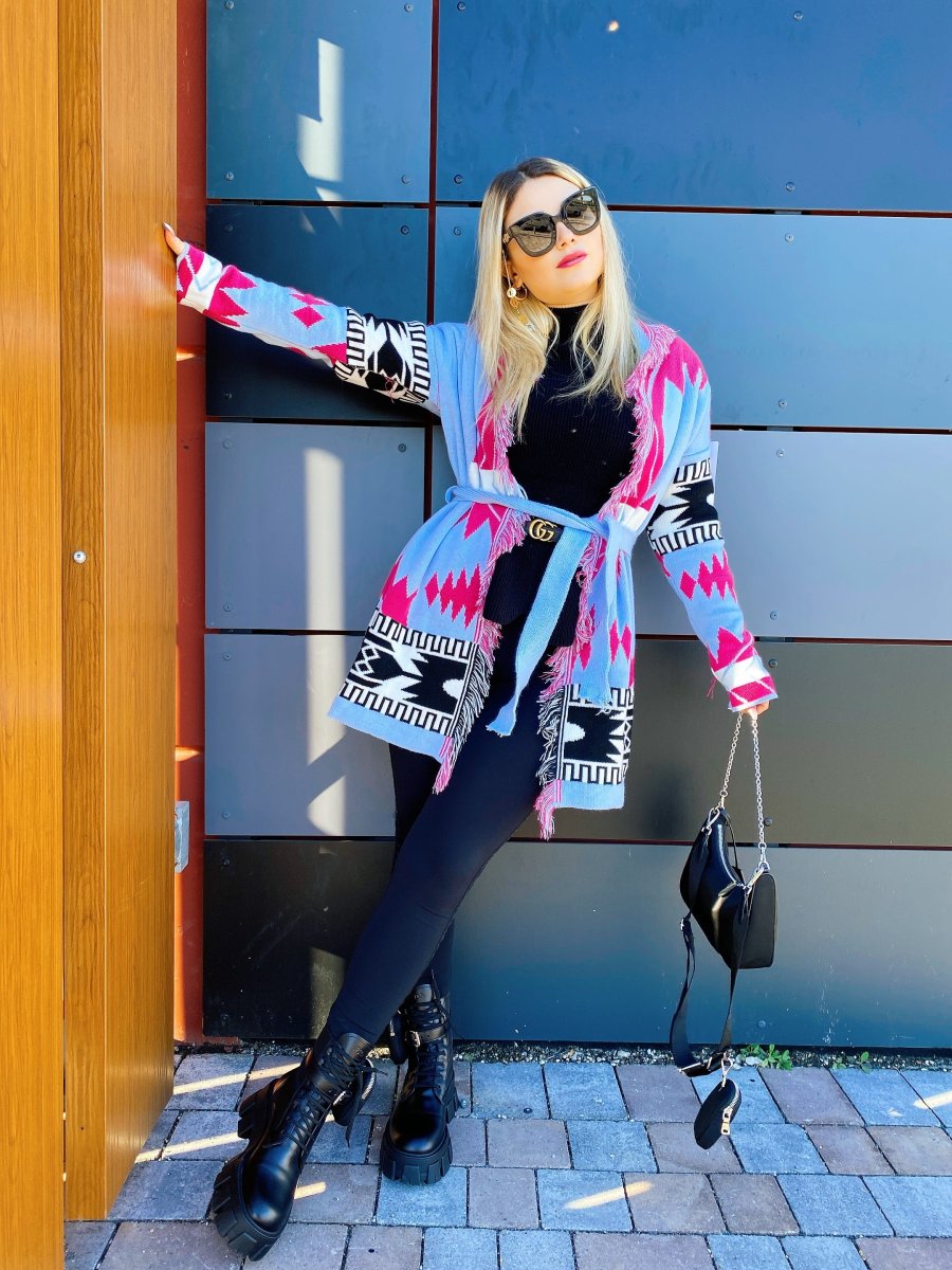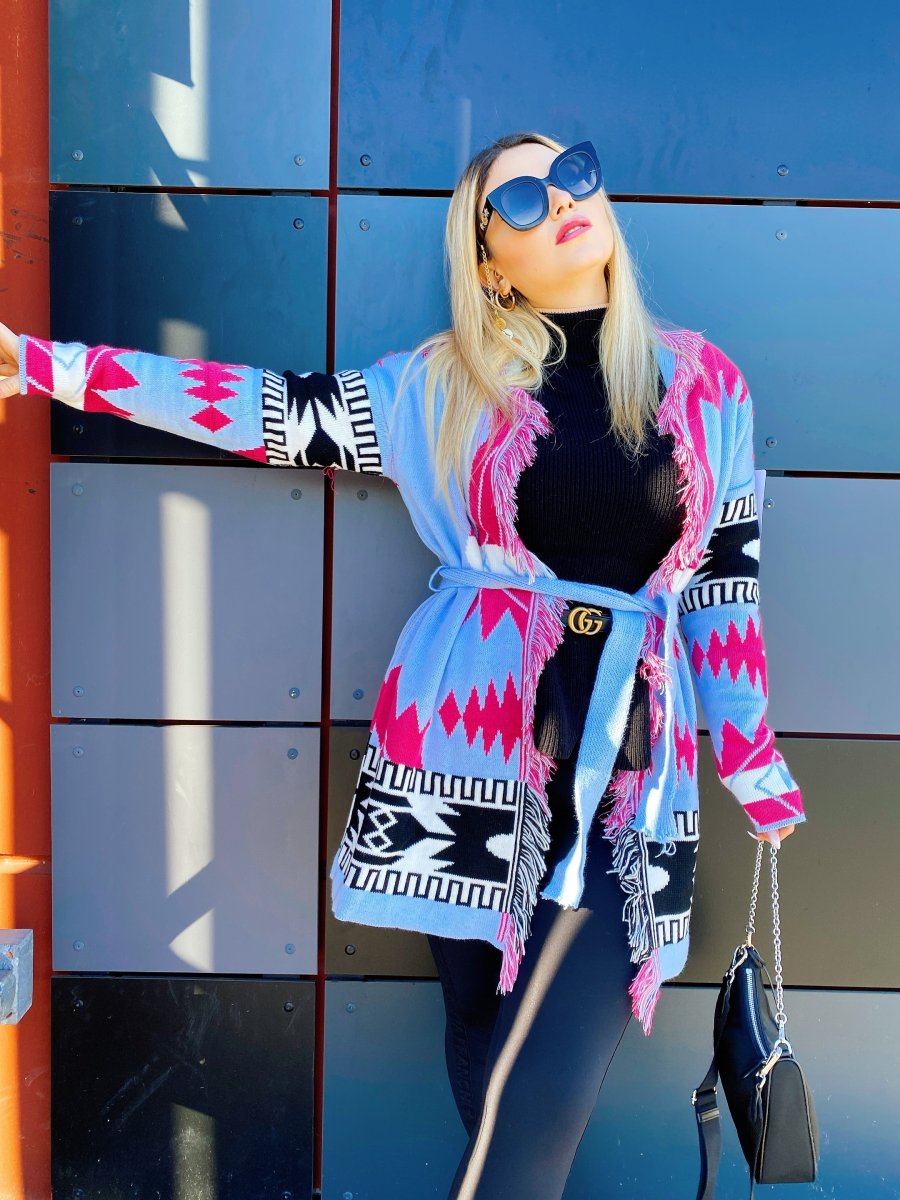 Cardigan in tessuto medio pesante con frange e cintura in vita.