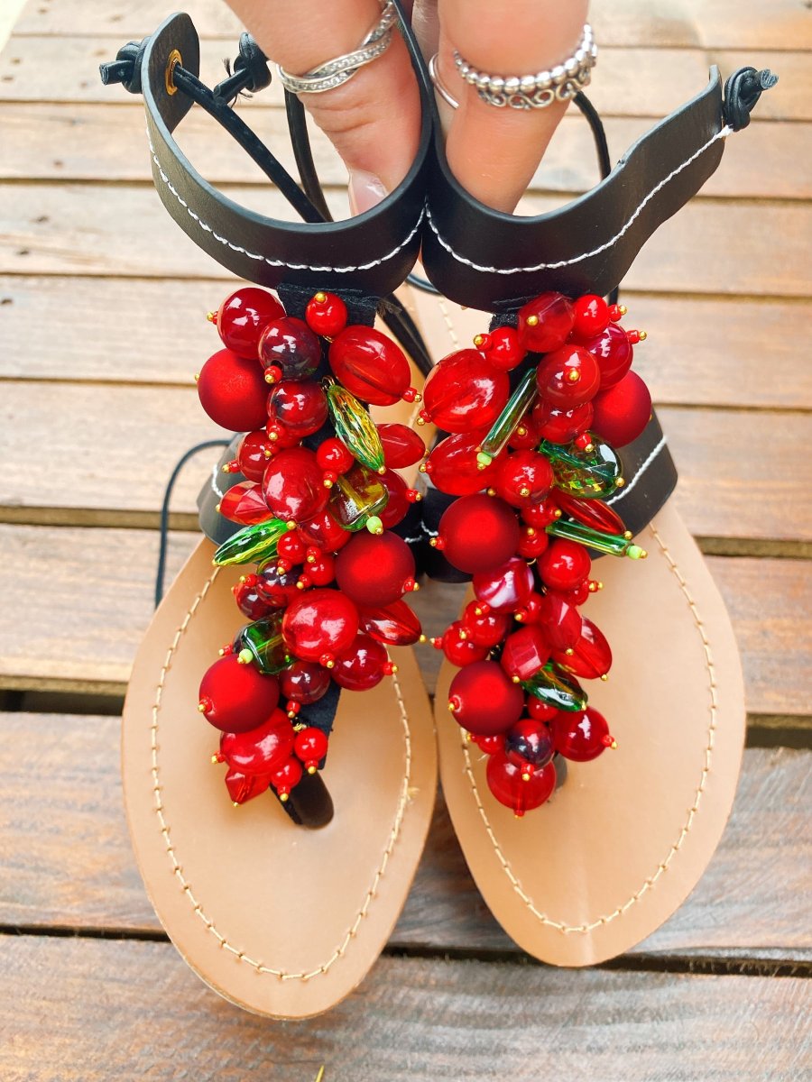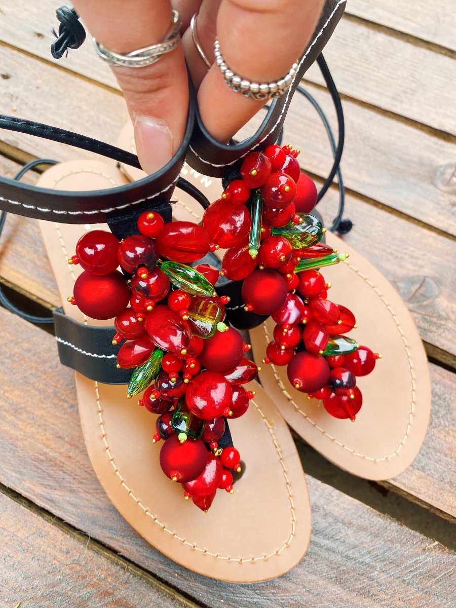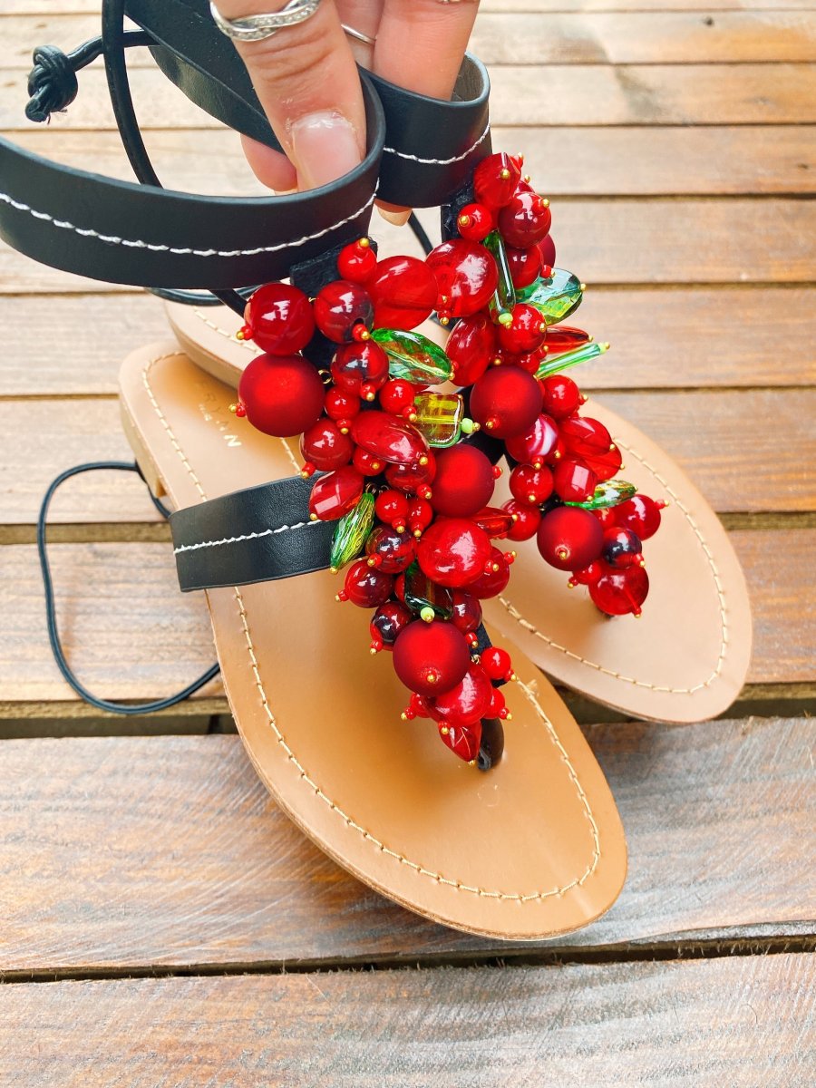 ciabatte passion fruit nere molto comode, basse estive con dettagli in perle a forma di frutta.