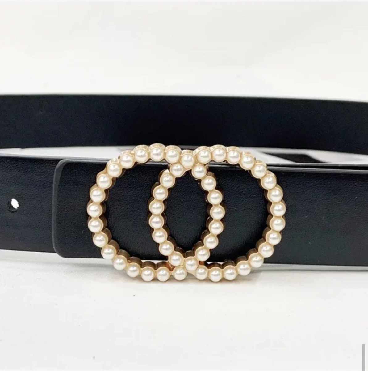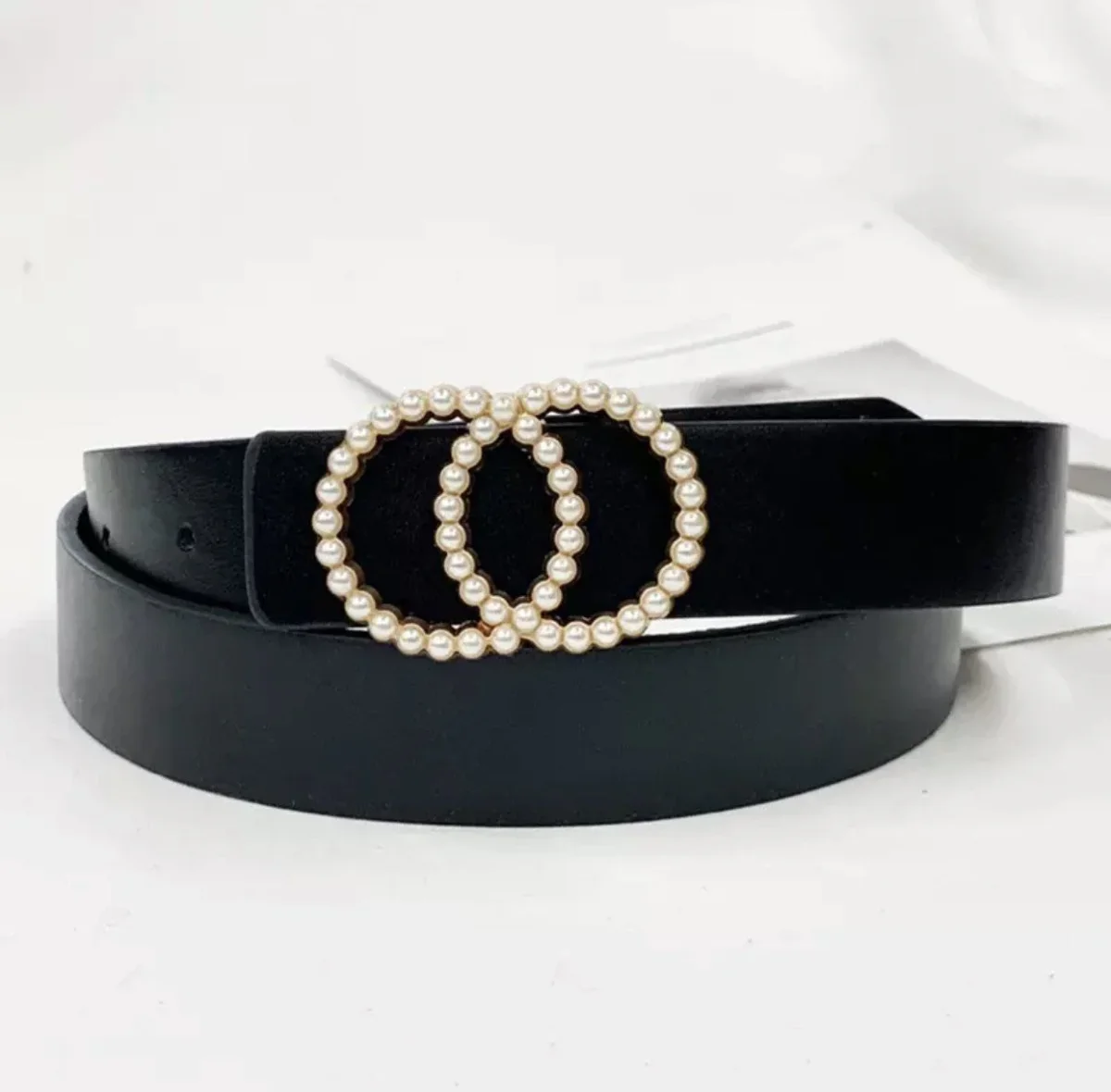 Cintura con cerchi e perle nera