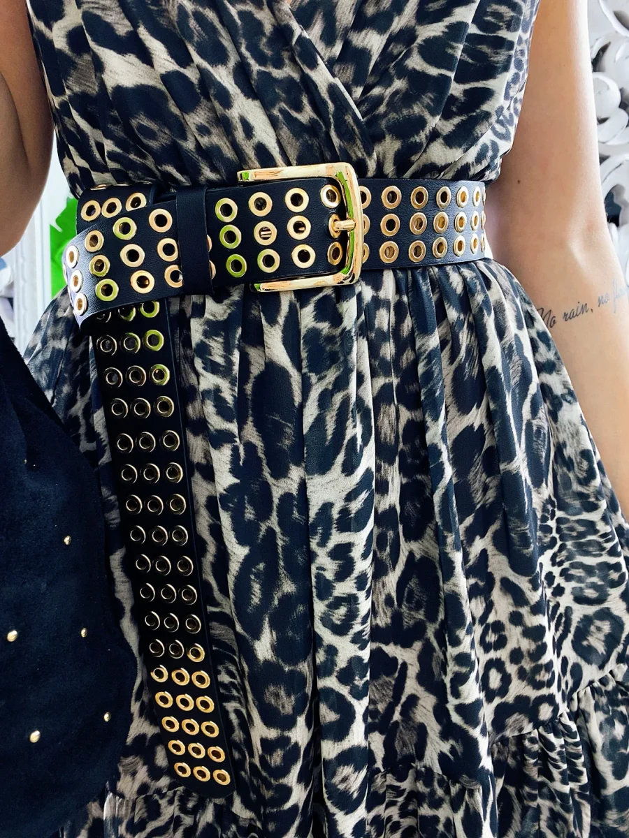 Cintura piena di occhielli regolabile su tutte le taglie.