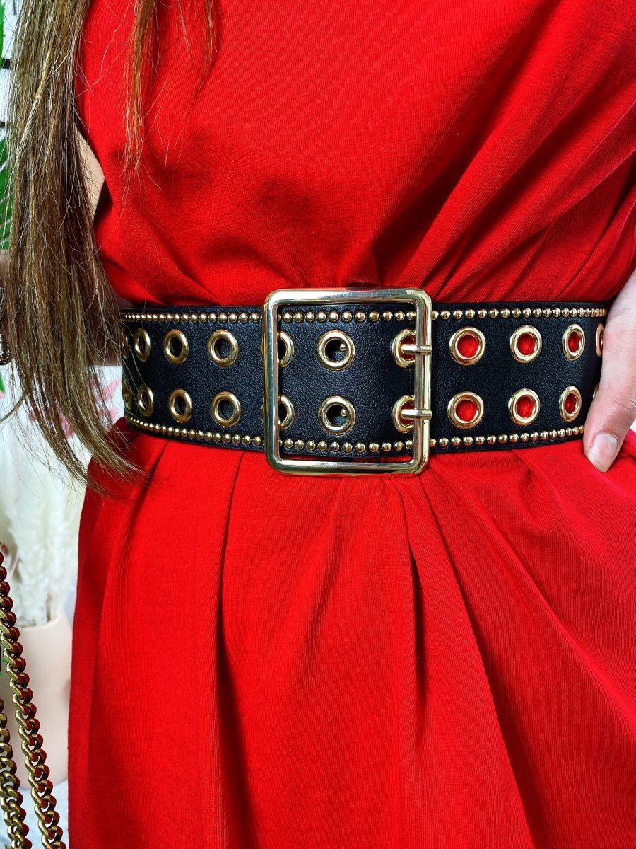Cinturone glam regolabile su tutti.