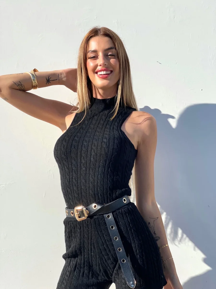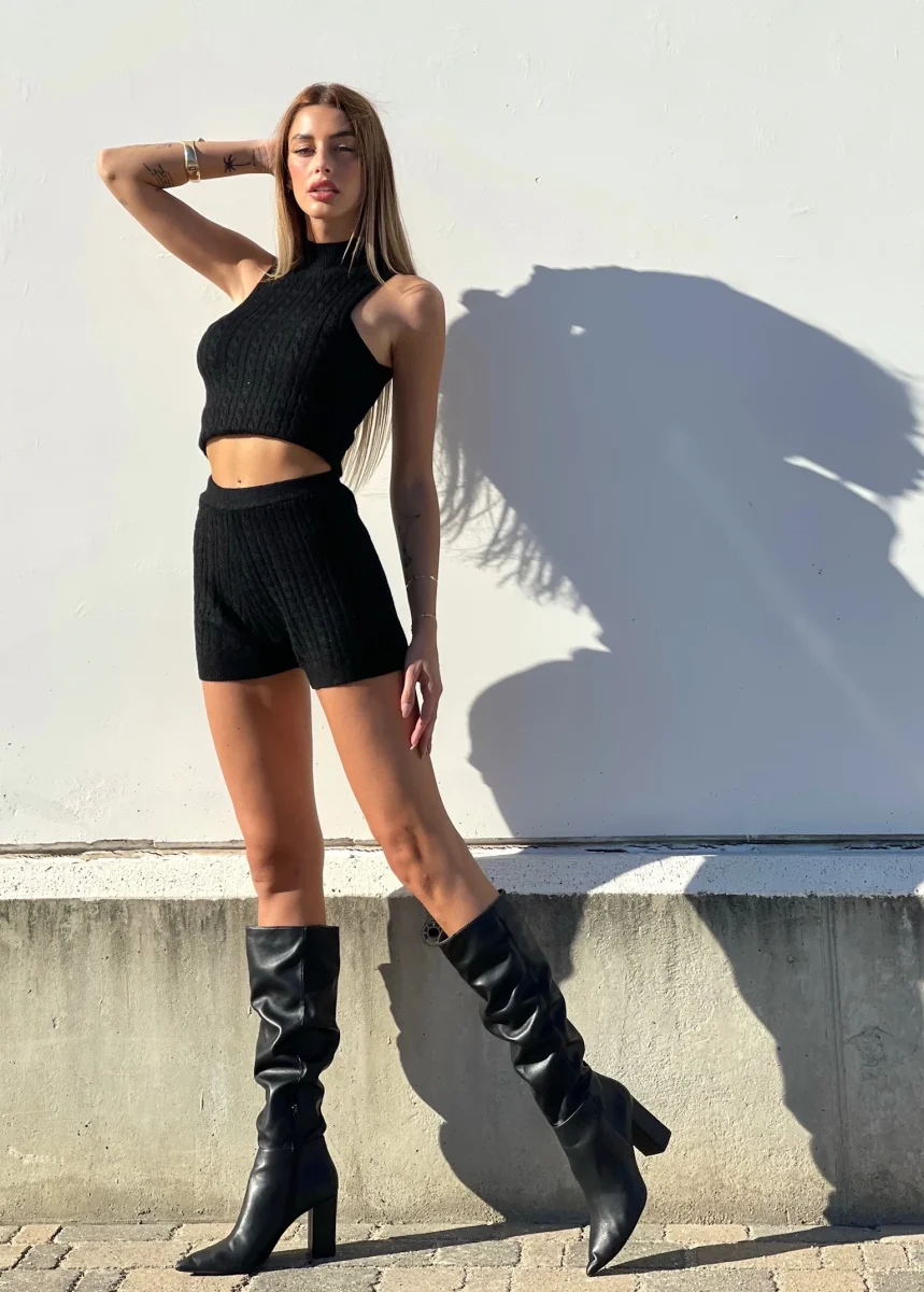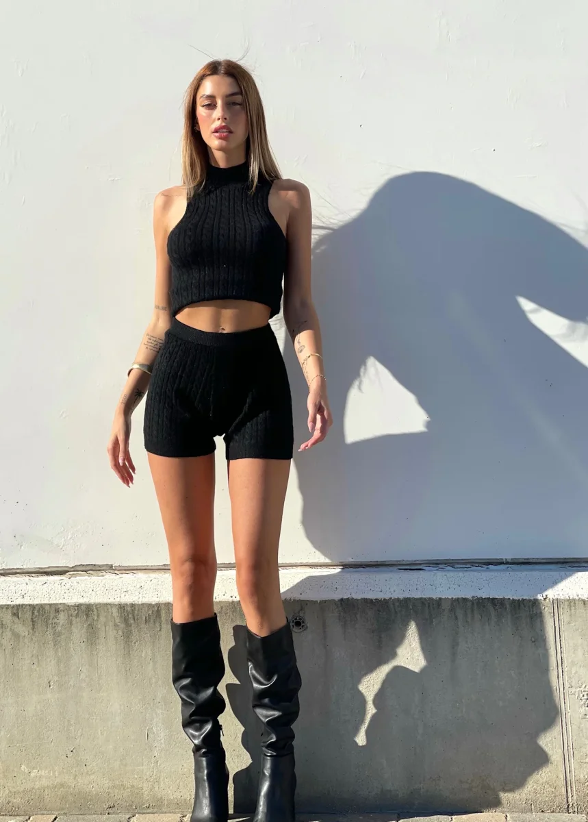 Completo a trecce nero, tessuto molto morbido.