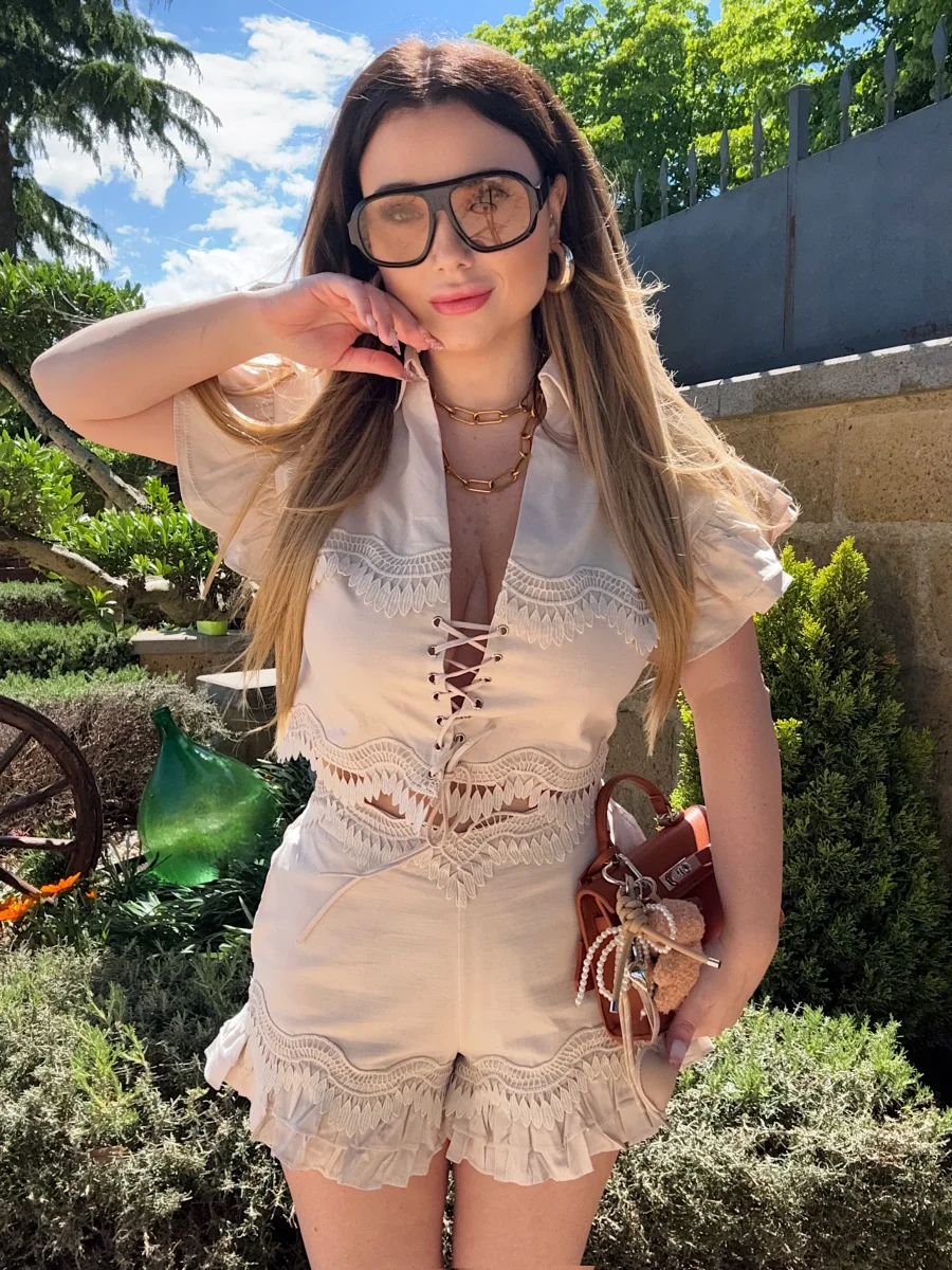 Completo altissima qualità pantaloncino elasticizzato con ricami. Veste anche taglie inferiori avendo l’elastico e i lacci sul davanti