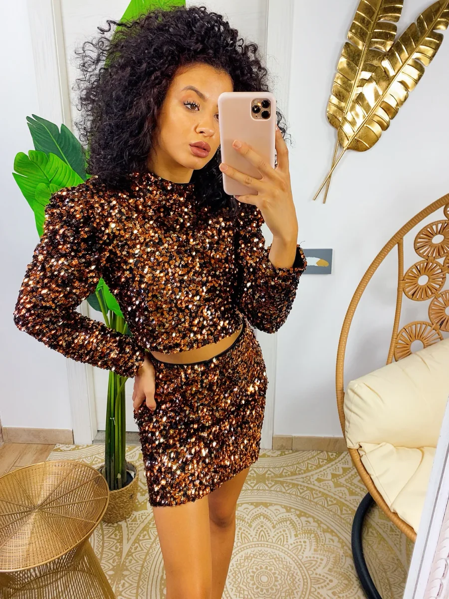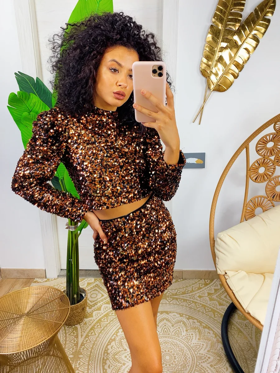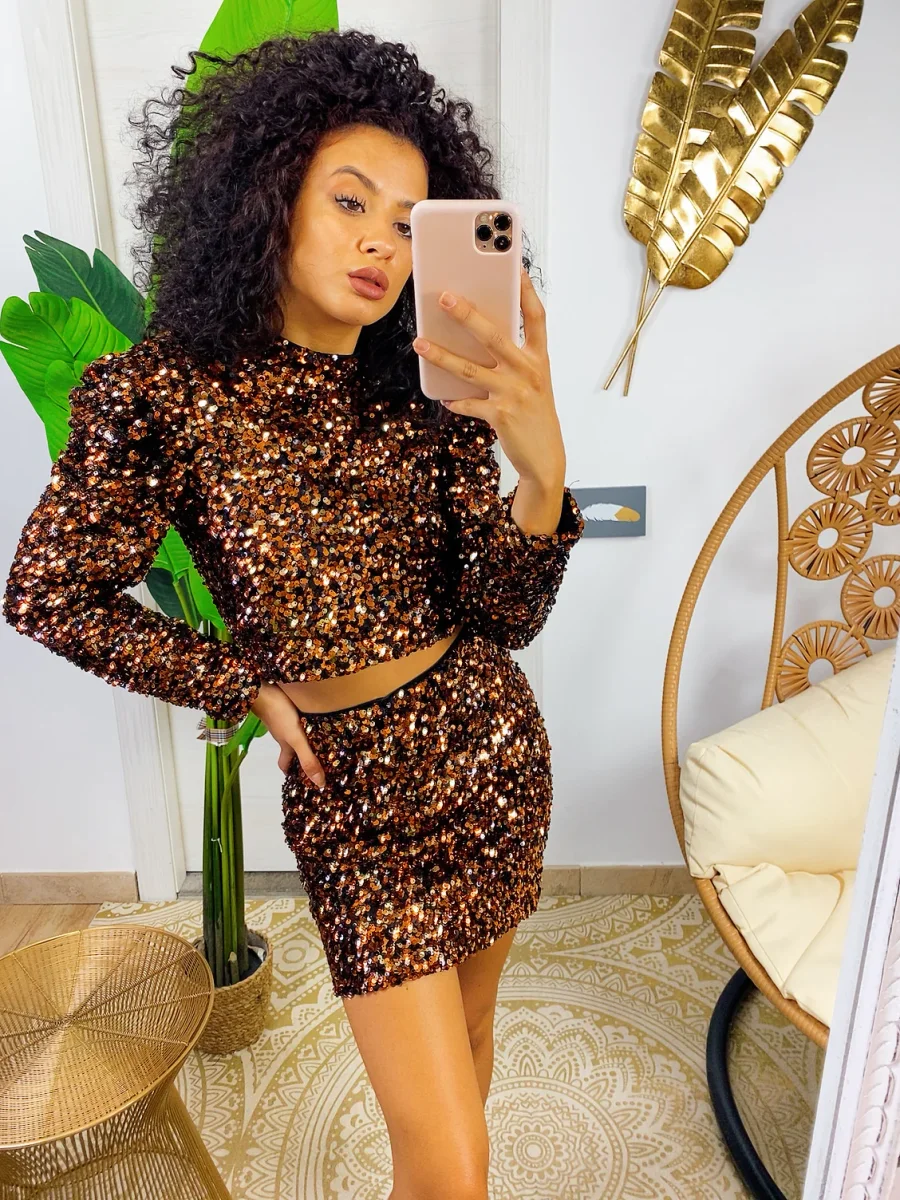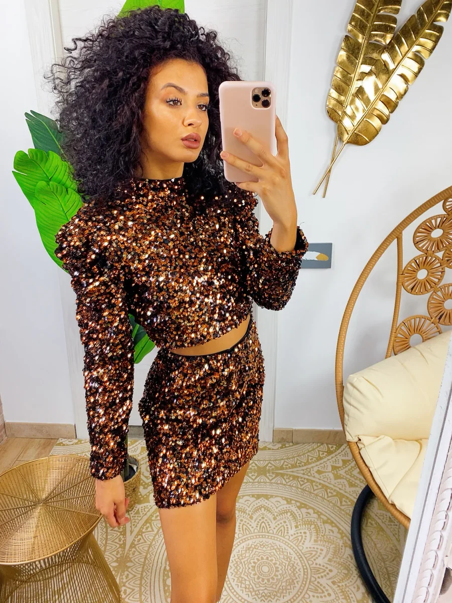Completo con paillettes bronzo