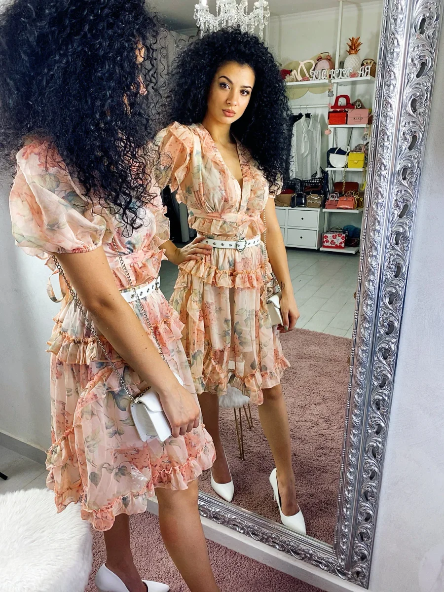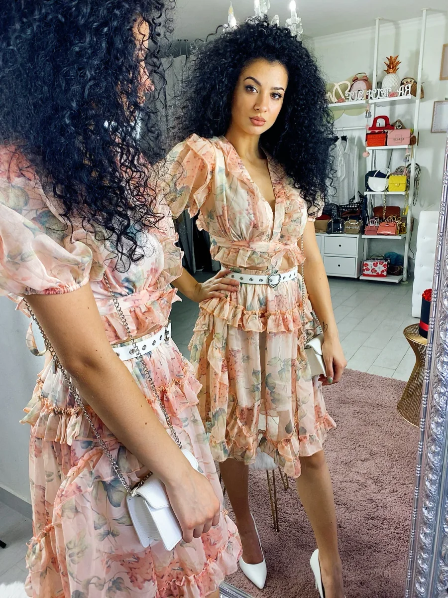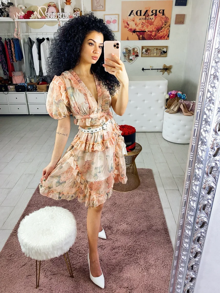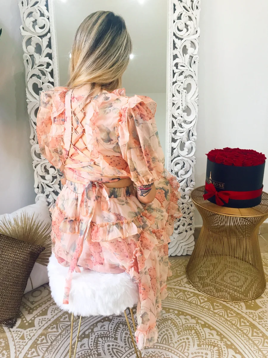 Bellissimo completo fiorato unito tra i due pezzi. Elegante e chic per qualsiasi evento.