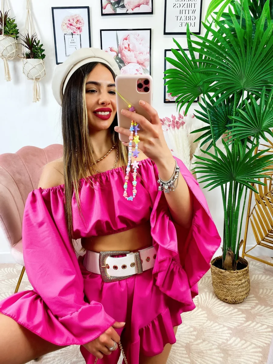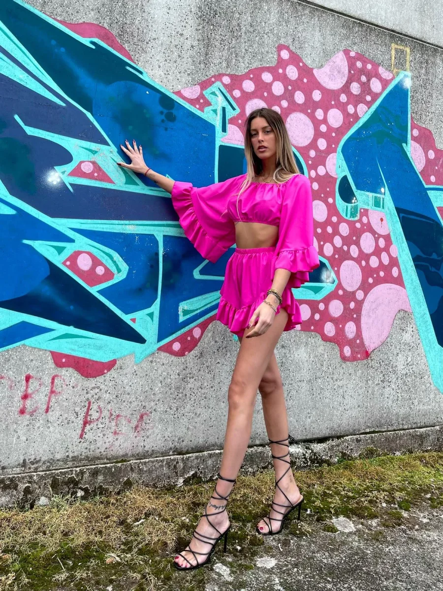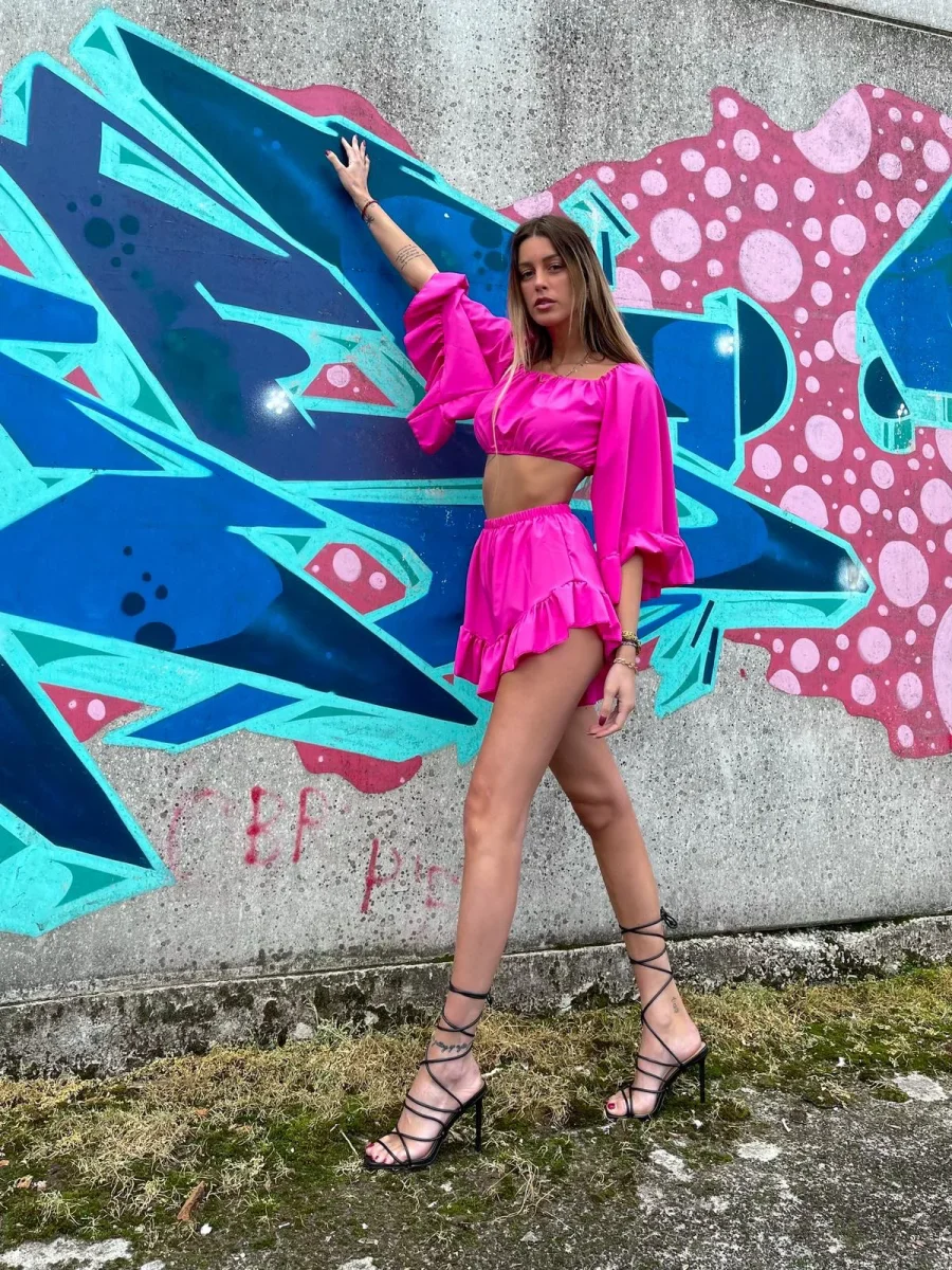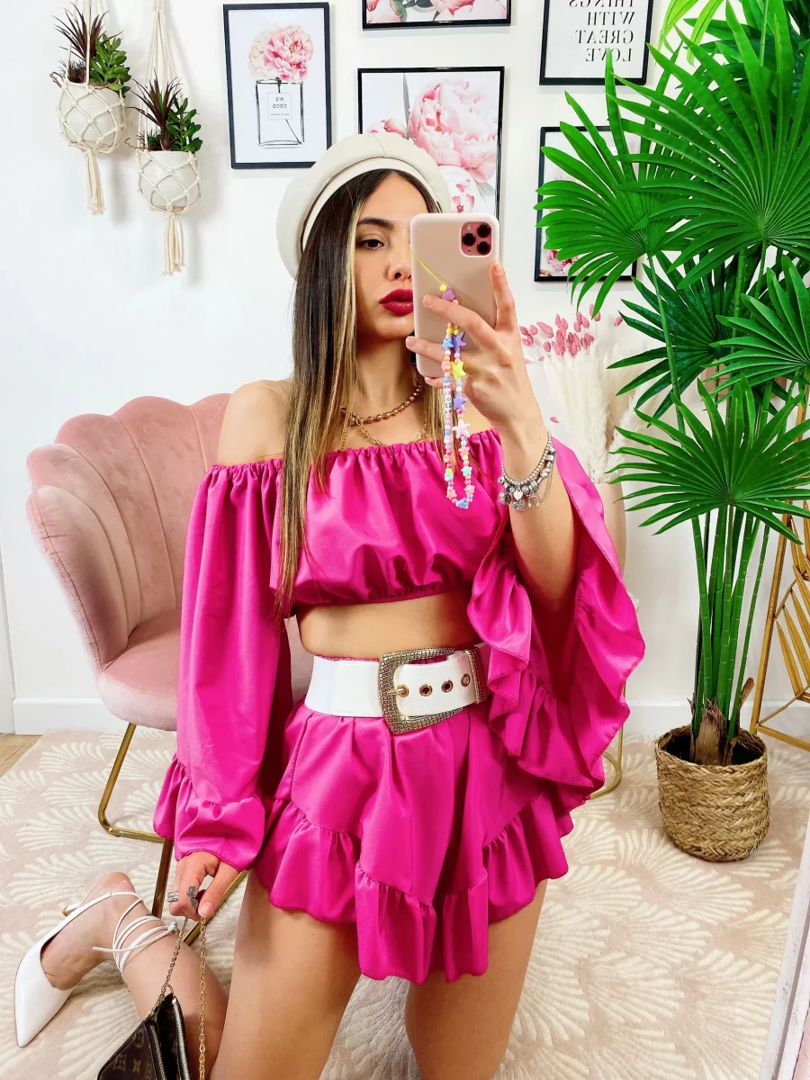 Completo composto da top e Short. Particolarissimi tagli per un look wow.