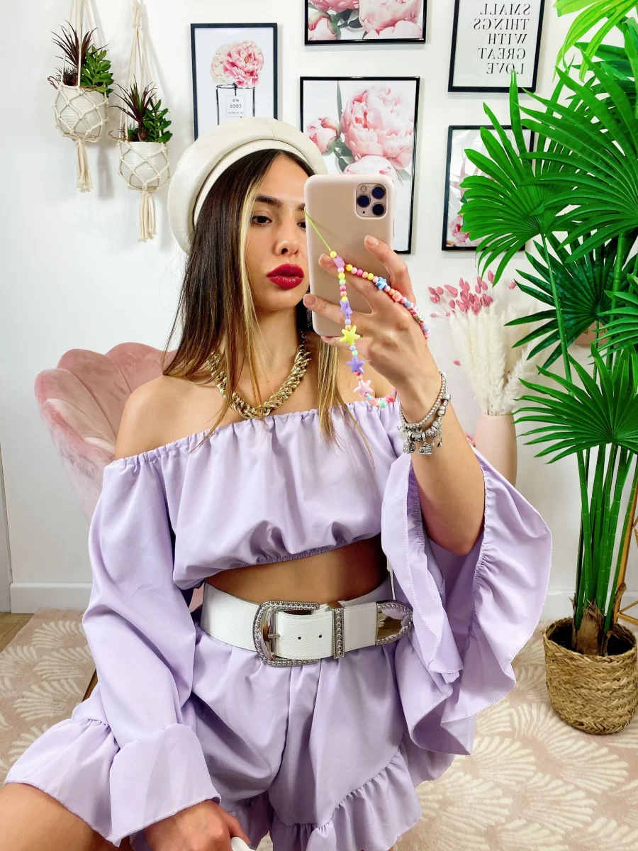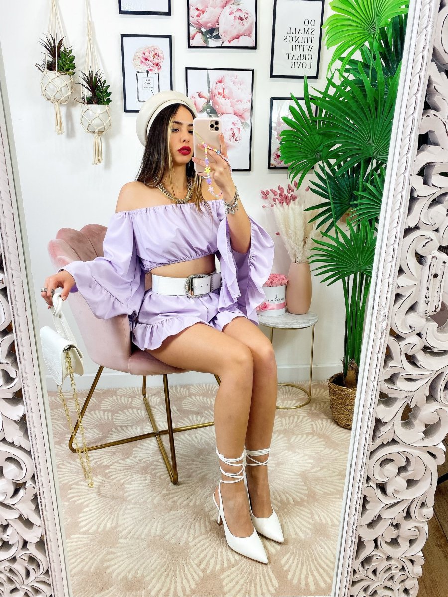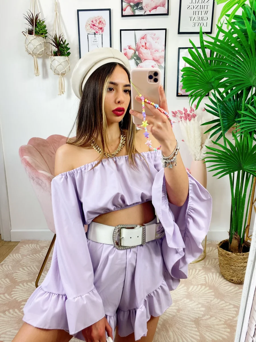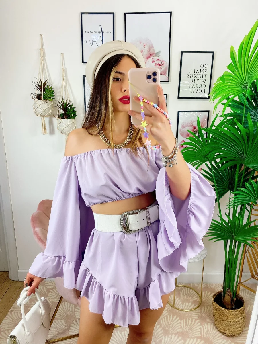 Completo composto da top e Short. Particolarissimi tagli per un look wow.