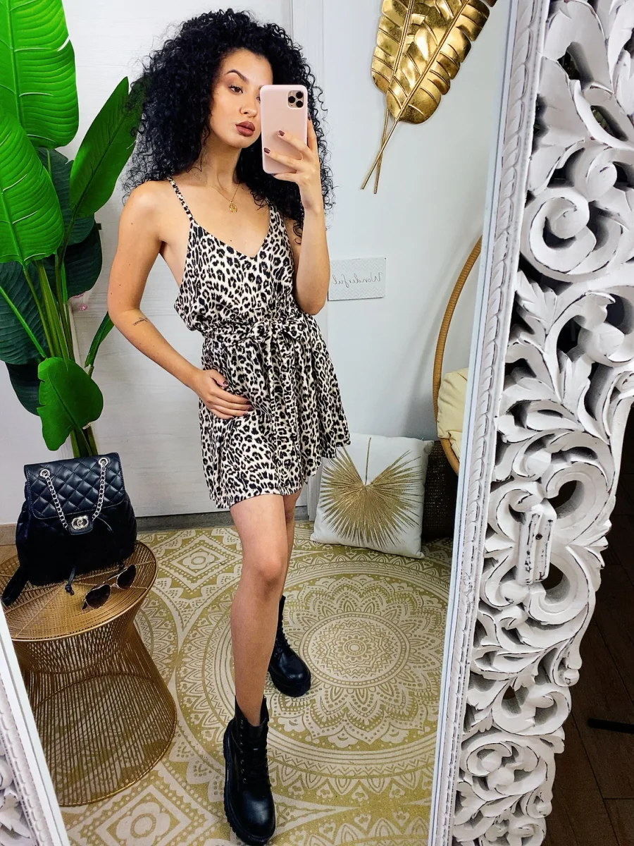 Completo due pezzi canotta e short con fiocco maculato. Usalo insieme o superato. 2 fantastici capi freschi e comodi