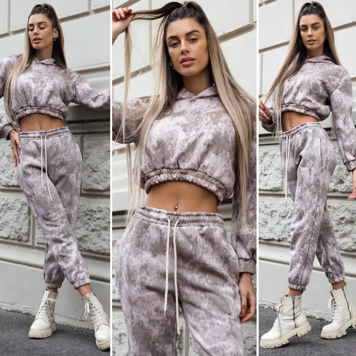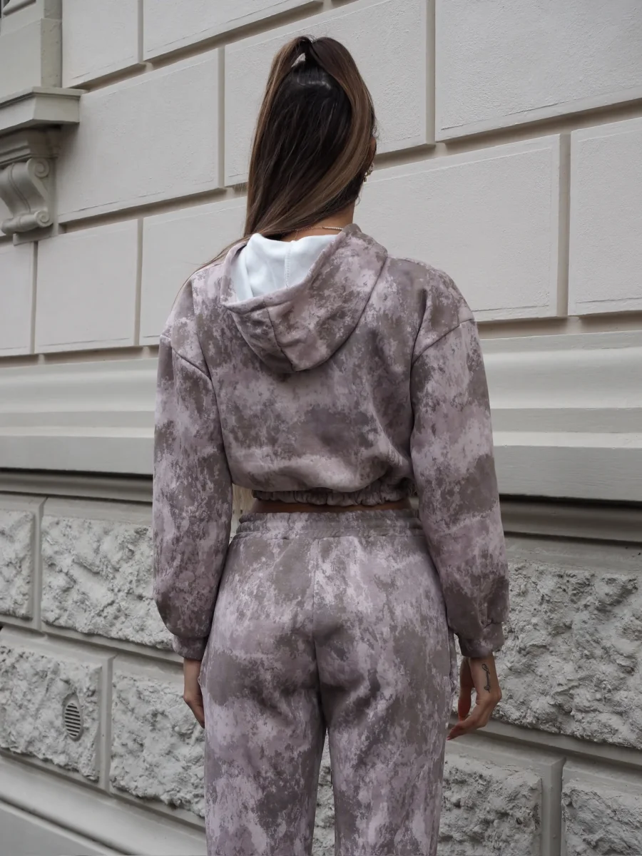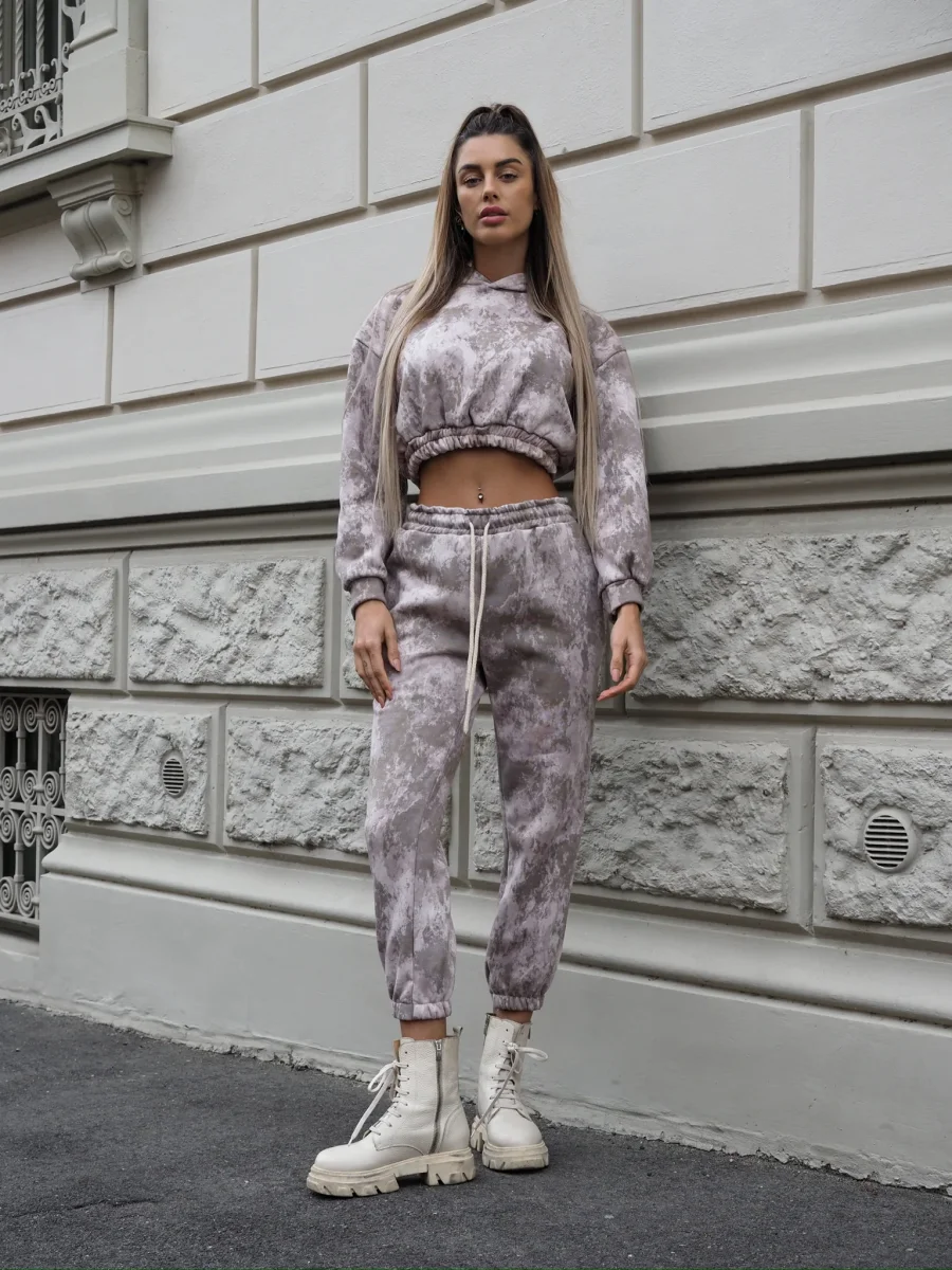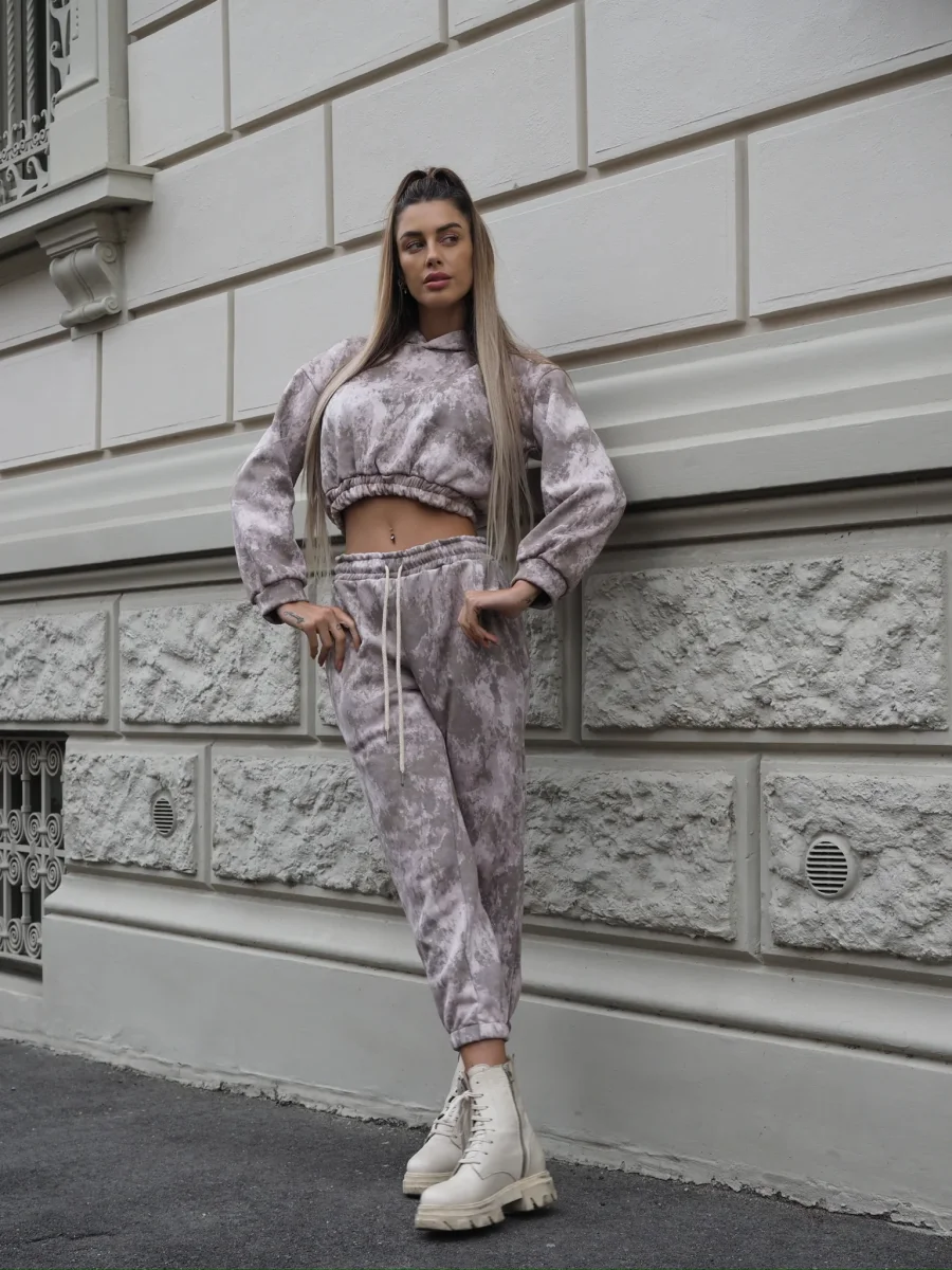 Completo composto da due pezzi venduti singolarmente in calda tuta elasticizzata in fantasia mimetica